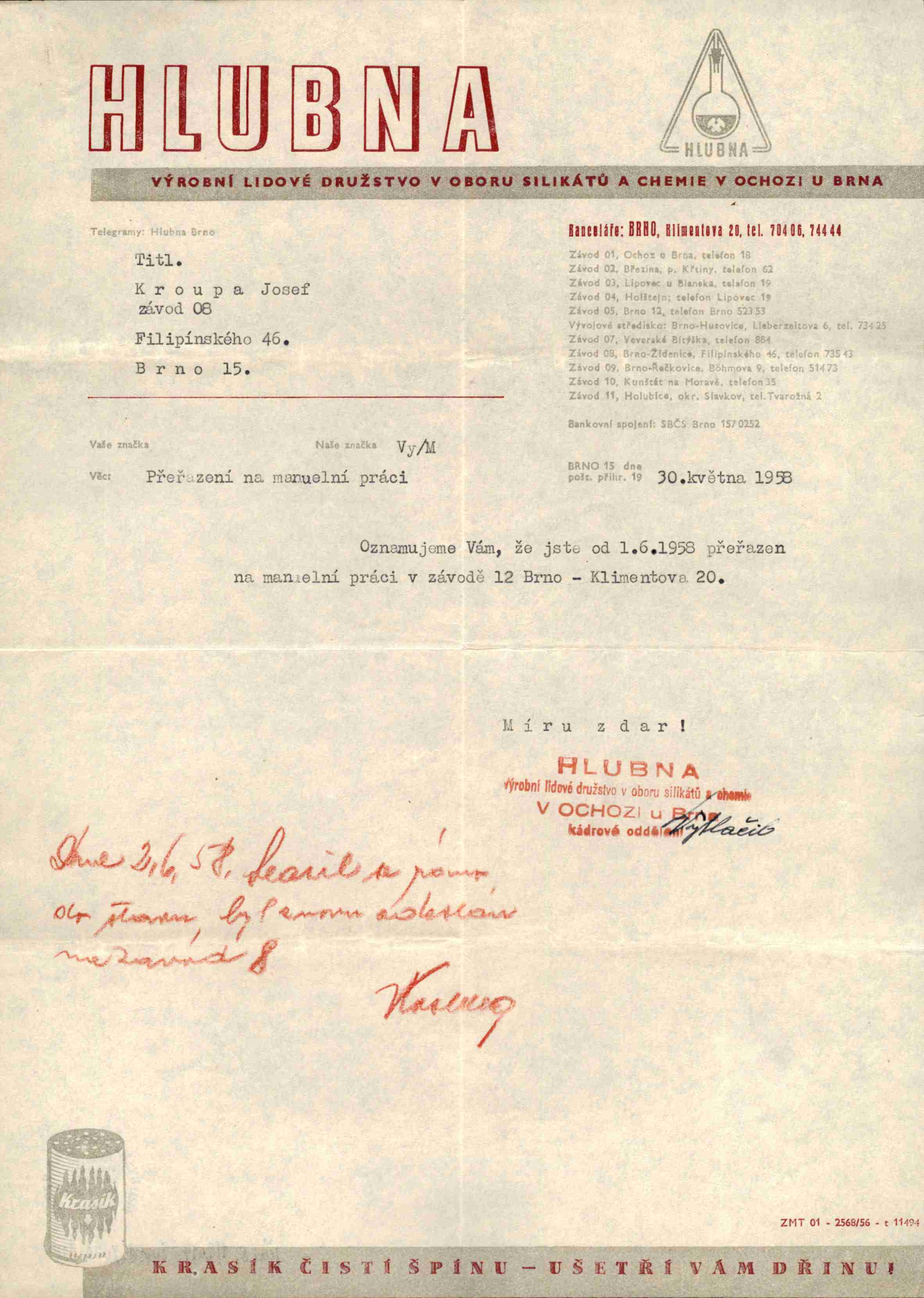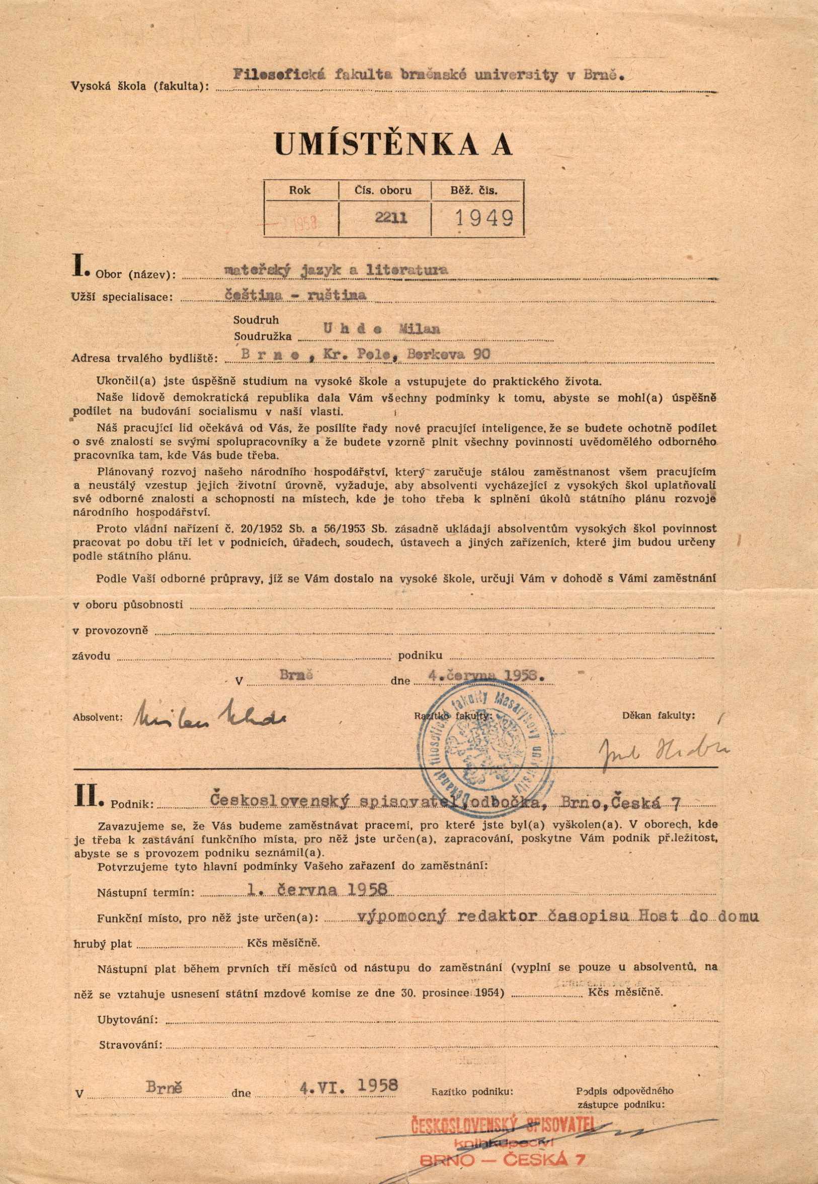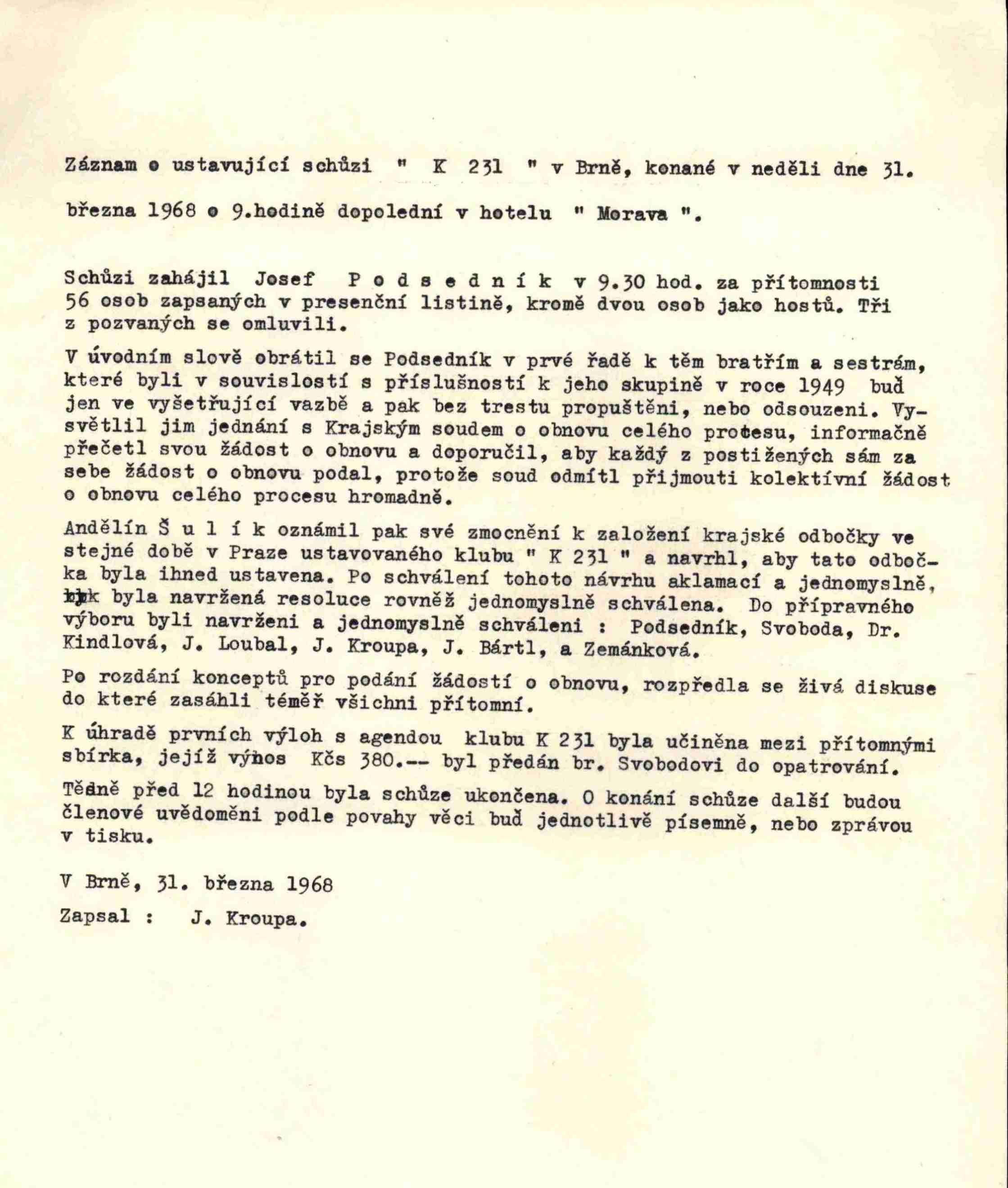Odkaz na www stránky http://www.mzm.cz/?id=1468 Území Sbírka obsahuje převážně předměty z bývalého Československa, Rakouska, Německa, Francie a Velké Británie. Období Sbírka dokumentuje období od 40. let 20. století do roku 2010, tedy od nacistické okupace, přes éru stalinismu, vstup vojsk do Československa, období normalizace (exil), listopad 89 a první dvě desetiletí po listopadu 89. Předměty 16 fondů byly v Oddělení dějin literatury MZM, k 1. 4. 2015 novou organizační strukturou bylo vyčleněno samostatné Centrum kulturně-politických dějin, přejmenované k 1. 7. 2018 na Oddělení dějin kultury antitotalitního zaměření (ODKAZ). Předměty Hlavními druhy předmětů ve sbírce jsou především písemnosti, tisky, fotografie, publikace a audiovizuální záznamy z fondů Pavla Kohouta, Jiřího Gruši, Milana Uhdeho, Jana Trefulky, Rogera Scrutona / Jan Hus Educational Foundation, Boženy Komárkové, Jaromíra Procházky, Milana Jelínka, Jana Tesaře, rodiny Šabatových. Obor 25 - Jiná Evidováno 23.01.2017 Datum zápisu do CES 26.01.2017 Počet předmětů 9200