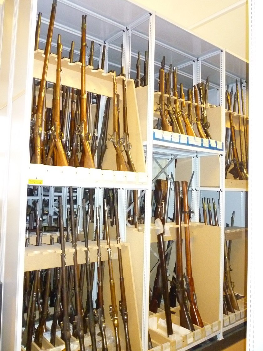 Puška hradební s kolečkovým zámkem, řeznického cechu, Olomouc, 2. polovina 17. století Puška hradební s kolečkovým zámkem, krejčovského cechu, Olomouc, konec 17. století Mušketa s kombinovaným kolečkovým a doutnákovým zámkem, rakouská, 2. polovina 17. století Puška pěchotní s křesadlovým zámkem, rakouská, vzor 1798/99 Partyzána důstojnická, rakouská, polovina 18. století Puška pro četnictvo, rakouská, systém Augustin, vzor 1850 Puška pro zvláštní sbory, rakouská, systém Lorenz, vzor 1862 Pohár střeleckého bratrstva, Filip Sattler – Wolfgang Rossmayer, Olomouc, 1736 Šavle pěchotní s pochvou, pro mužstvo, rakouská, vzor 1862 Kozlice hraničářská s křesadlovými zámky, rakouská, vzor 1768 Pistole jezdecká s perkusním zámkem, rakouská, systém Lorenz, vzor 1862 Šavle jezdecká s pochvou, uherská, 1. polovina 18. století  Sponton důstojnický, pruský, polovina 18. století Čapka úředníka politické a policejní služby v VII. hodnostní třídě, ČSR, 1919 Puška pro zvláštní sbory, rakouská, systém Werndl, vzor 1873/77 Puška pěchotní, rakouská, systém Mannlicher, vzor 1895, školní řez Puška lovecká s kolečkovým zámkem, sign. HANS WOLF AICHINGER IN BAMBERG, konec 17. století Pistole s křesadlovým zámkem, sign. GEORG KEISER IN WIEN, 1. polovina 18. století Pepřenka s perkusním zámkem, šestihlavňová, systém Mariette, polovina 19. století Revolver pro důstojníky pěchoty, rakouský, system Gasser/Kropatschek, vzor 1870 Palaš kyrysnický s pochvou, rakouský, počátek 18. století Revolver vojenský, rakouský, systém Rast & Gasser, vzor 1898 cover Kord pro důstojníky pěchoty s pochvou, rakouský, vzor 1798 Přilba jezdecká otevřená, “Pappenheimka”, počátek 18. století Blůza okresního četnického strážmistra, rakouská, počátek 20. století Helma četnická, pro mužstvo, rakouská, 1850 Blůza vrchního inspektora II. třídy komunální (obecní) stráže bezpečnosti, Olomouc, období let 1931-1938 Přilba příslušníka městské bezpečnostní stráže, Litovel, přelom 19. a 20. století Depozitář podsbírky Militaria VMO - uložení dlouhých palných zbraní Depozitář podsbírky Militaria VMO - uložení přileb a čepic Depozitář podsbírky Militaria VMO - uložení krátkých chladných zbraní