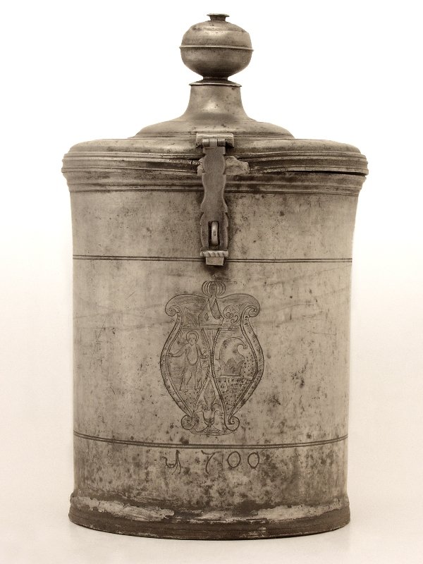 Uložení v depozitáři Uložení v depozitáři Kruhová mísa, 18. století, cín Talíř, kolem roku 1900, cín Podnos, kolem roku 1900, cín Konev s víkem, 2. polovina 15. století, cín, Olomouc Josef Neidhart, miska, 19. století, cín Talíř s reliéfem dívčí hlavy, kolem roku 1900, cín Mísa, kolem roku 1900, cín Talíř, 2. pol. 17. století, cín, Brno Talíř, kolem roku 1900, cín Cechovní nádoba, 1700, cín, Olomouc Josef Neidhart, koflík, 19. století, cín Podnos, kolem roku 1900, cín Svícen, 1. pol. 19. století, cín, Olomouc Talíř, 1726, cín, střední Evropa Konvice s víkem, 1734, cín, Olomouc Cechovní konvice, 1725, cín, Olomouc Uvítací pohár, 18. století, cín, Olomouc Láhev se šroubovací zátkou, 1729, cín, Olomouc Konev s víkem, cín, 16. století, Olomouc Konvice s víkem, 1716, cín, Olomouc Uvítací pohár, 1700, cín, mosaz, Olomouc Lavabo, 1859, cín, Olomouc Talíř, cín, 2. pol. 17. století, Brno Michael Freytag, kruhová mísa typ kardinálský klobouk, přelom 17. a 18. století, cín Mísa, kolem roku 1900, cín Uvítací cechovní pohár, konec 17. století, cín, Olomouc Plastika ženy s nádobou a dvěma putti, kolem roku 1900, cín Talíř s reliéfem dívčí hlavy z profilu, kolem roku 1900, cín A. Köhler, rámeček, kolem roku 1900, cín Uložení v depozitáři