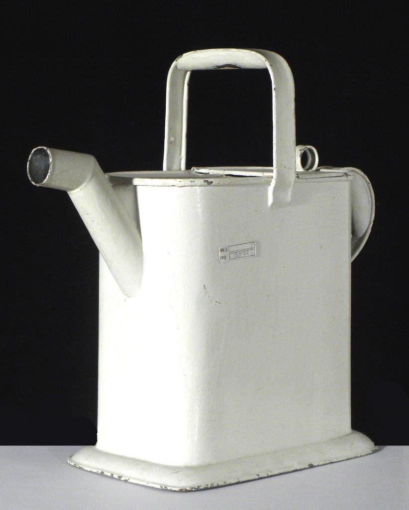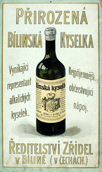 Regály v depozitáři sbírky Lázeňství Váha sedací z lázní v Bílině, kolem roku 1880 (Lá 323) Krabička na pastilky z lepenky s víčkem. Na víčku je nálepka s erbem Lobkoviců a nápisem Brunnendirektion Biliner Verdauungszeltchen Bilin in Böhmen. Konec 19. století (Lá 29) Bronzové kování s dochovaným nýtem patří k souboru předmětů, pravděpodobně z lékařského hrobu. Lokalita asi Noricum Panonie, starší doba římská, 1. - 2. století n.l. (Lá 26) Prospekt teplických lázní s barevnými reprodukcemi fotografií Kamenných a Císařských lázní od C. Pietznera. Obsahují popisy služeb a léčebných prostředků. Tiskl Weigend, Teplice po roce 1911 (Lá 64) Růže pokrytá argonitovým vřídlovcovým sintrem. Karlovy Vary kolem roku 1970 (Lá 172) Reklamní tabule na Bílinskou kyselku s textem Přírodní Bílinská kyselka zdravotní a stolní nápoj prvého řádu... a se znakem Lobkoviců. Kolem roku 1910 (Lá 331) Prospekt Nových Lázní v Teplicích z roku 1999. Obsahuje fotografie interiéru Nových lázní a fotografie dětí při rehabilitacích, koupelích a při jídle (Lá 427) Album 30 fotografií Bíliny od teplického fotografa C. Pietznera z doby kol. r. 1890, nalepených na kartonu. Album pochází z pozůstalosti ředitele lázní v Bílině pana Vorlíčka (Lá 5) Lahev na minerální vodu ze zeleného skla o objemu 0,7 litru s malou vinětou Vincentka slazená. Luhačovice, rok 1996 (Lá 116) Album 30 fotografií Bíliny od teplického fotografa C. Pietznera z doby kol. r. 1890, nalepených na kartonu. Album pochází z pozůstalosti ředitele lázní v Bílině pana Vorlíčka (Lá 5) Budík na odměření doby procedur. Materiál kov a bakelit. Ciferník obsahuje značení minut po deseti. Kolem roku 1940. Na ciferníku značeno písmeny C H ve hvězdě a ozubeném kole (Lá 123) Soška Aeskulapa. Postava muže se vztyčenou pravou rukou, v levé drží hůl obtočenou hadem. Na soklu je nápis AESKULAP. Kovový odlitek z 19. stol. podle originálů, údajně nalezených v Pompejích (Lá 28) Propagační leták na minerální vodu Deit bez cukru, výrobek Kyselky Praga, a.s. Břvany. 1995 (Lá 82) Plakát s reklamou na minerální vody s názvy minerálních vod a vyobrazeními lahví se značkami minerálek. Vydáno Ministerstvem zdravotnictví kolem roku 1980 (Lá 327) Etiketa na Zaječickou hořkou vodu s chemickým rozborem. Vyobrazen Lobkovický erb a zajíc. Zaječice u Bečova, po roce 1964 (Lá 351) Prospekt lázní Dubí ve formě skládačky z počátku 40. let 20. století. Na titulní straně celkový pohled na Dubí. Obsahuje informace o ubytování a stravování a rady pro pacienty (Lá 192) Reklamní tabule na Bílinskou kyselku s vyobrazením lahve s etiketou Bílinské kyselky a slovenským textem Rýdze prírodná alkalická Bílinská kyselka. Kolem roku 1930 (Lá 330) Inhalační přístroj v krabičce z doby kolem roku 1920. Obsahuje lahvičku se zbytkem kapaliny, uzavřenou zátkou s nálepkou lékárny v Telči (Lá 71) Jehelníček ve tvaru kočičí hlavy z vínového flauše. Je jedním z výrobků dětí z dětské léčebny Nové lázně v Teplicích z roku 1988 (Lá 38) Plakát s několika pohledy na Teplice a okolí. Krátký text o Teplicích z topografického hlediska. Německý text. Tiskla firma Brüder Willner Teplice. Kolem roku 1920 (Lá 528) Lahev na minerální vodu ze zeleného skla o objemu 0,7 litru s vinětou Bílinská kyselka a znakem Lobkoviců. Bílina, Bílinská kyselka Lobkowiczova s. r.o., rok 1996 (Lá 120/2) Lahev na minerální vodu ze zeleného skla s vinětou Franzesbader Natalia – Quellen. Františkovy Lázně, pramen Natálie, kolem roku 1910 (Lá 109) Plechová smaltovaná konev s víkem, používaná v lázních při koupeli ve 30. letech 20. století. Převedena ze zámku Frýdlant v Čechách (Lá 73) Lékovka na nosní kapky, opatřená etiketou s názvem Endrine Mild, popisem indikací a návodem k použití v německém jazyce. Výrobce: C. F. Asche & CO. Hamburg - Altona. Kolem roku 1930 (Lá 525) Depozitář sbírky Lázeňství (2014) Úložné boxy v depozitáři sbírky Lázeňství Reklamní tabule na Bílinskou kyselku s vyobrazením lahve s etiketou Bílinské kyselky a slovenským textem Rýdze prírodná alkalická Bílinská kyselka. Kolem roku 1930 (Lá 330) Reklamní tabule na Bílinskou kyselku. Vydalo Ředitelství zřídel v Bílině, kolem roku 1920 (Lá 329)