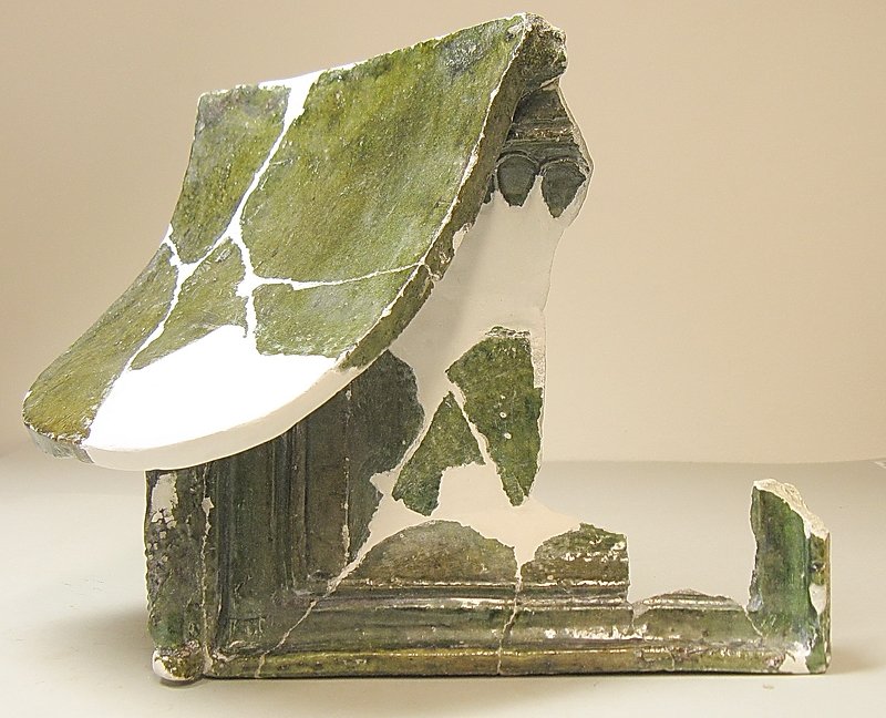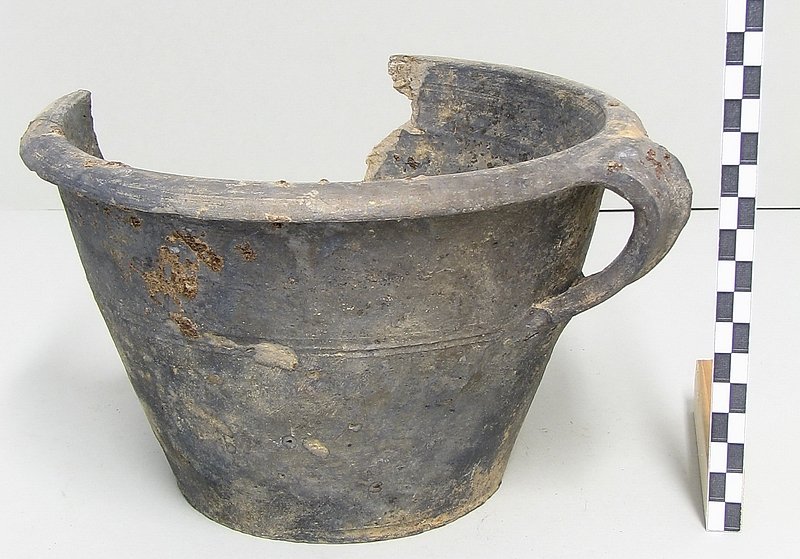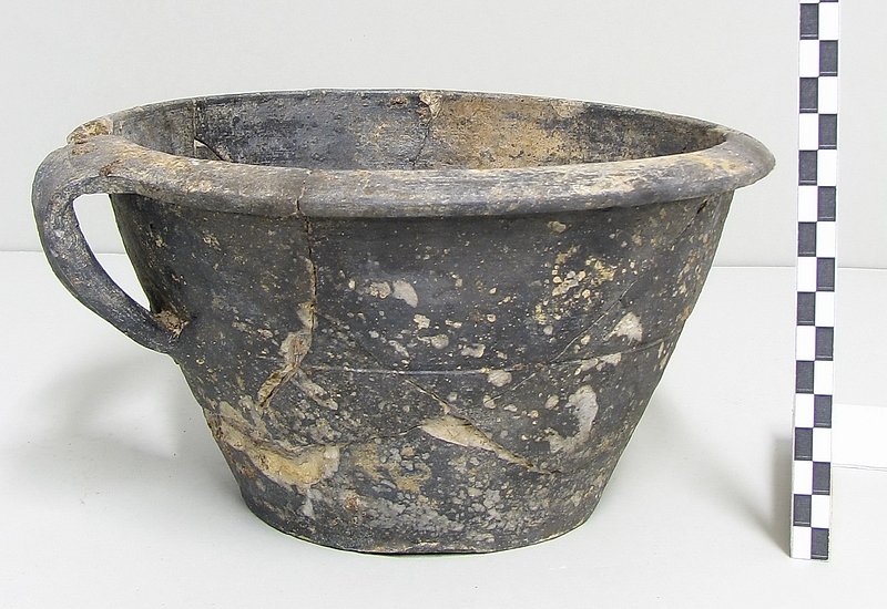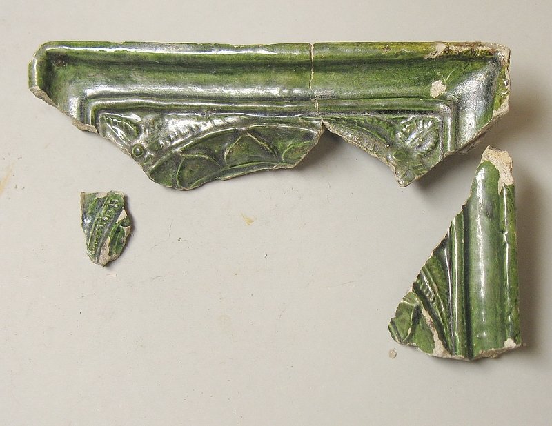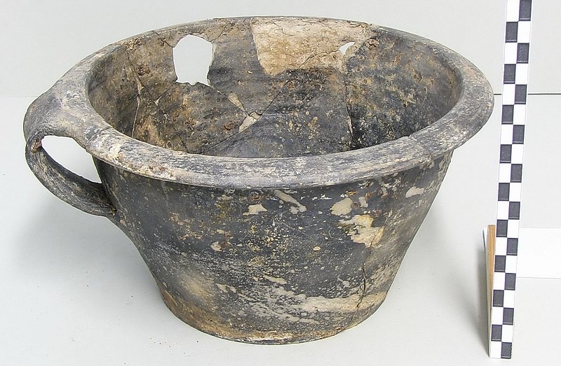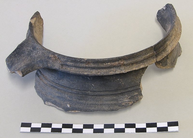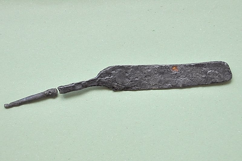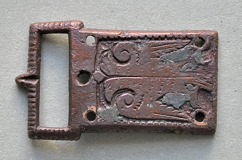 A1719 - Bronzová přezka s rytou výzdobou po celém obvodu šrafy, na štítku dvojhlavý orel - zdobení niellem. A6559 - V celku dochovaná silná stříbrná záušnice. A6569 - Závorová nezdobená kruhová přezka s dochovaným trnem. A6581 - V celku dochovaný tordovaný prsten neuzavřený. A6639 - Mosazná přezka závorová s příčně oválným rámečkem, pevně spojeným s příchytnou destičkou, rámeček na vnější straně opatřen třemi oválnými výčnělky, zdobenými rýhami. A6645 - Dřevěná destička obdélníkového tvaru, na jednom konci zúžená. A6647 - Dřevěná destička ve tvaru jehlanu s čtvercovou základnou o straně 30 mm s plochou špičkou, rub i povrch hladký, narušen pouze přirozenou strukturou dřeva. A6666 - Část obloukové ostruhy s ploténkami; dlouhý bodec dochovaný jen zčásti, jedna ploténka odlomena, jedno rameno ohnuté dovnitř.                                                                   A6668 - Část rámu závorové přezky ve tvaru podkovy, oblouk zdobený sedmi žlábky; původně postříbřená.                                                                                                   A6682 - Ozdoba kruhového tvaru z pozlaceného měděného plíšku, plastický ornament ve tvaru čtyřlístku s výčnělky.                                                                                        A7019 - Keramický nočník, po lepení dochovaný z části, okraj je vodorovně vytažený obloukovitý.                                                                                                         A7037 - Keramický nočník, po lepení téměř dochovaný, okraj je vodorovně vytažený obloukovitý.                                                                                                           A7051 - Zlomek z těla silnostěnné nádoby, patrně zásobnice.                                                                                                                                             A7072 - Zlomek okraje kónické mísy s v malé míře dochovanými stěnami, okraj je vodorovně vyložený, mírně obloukovitě klenutý.                                                                           A7092 - Téměř zcela dochovaný keramický nočník, okraj je vodorovně vytažený plochý.                                                                                                                     A7096 - Spodní část většího silnostěnného hrncovitého cedníku.                                                                                                                                          A7119 - Zlomek horní okrajové části jednouchého hrnce, okraj je okruží s vnitřním prožlabením.                                                                                                          A7242 - Torzo rohového komorového renesančního kachle.                                                                                                                                                  A7246 - Zlomky z přední vyhřívací stěny komorového renesančního kachle.                                                                                                                                 A7273 - Železný středověký klíč, očko kosočtverečného tvaru se stranami dovnitř obloukovitě prolamovanými.                                                                                              Depozitář Archeologie - uložení předmětů v regálech a papírových bednách.                                                                                                                            A6556 - Stříbrná záušnice s esovitým zakončením z roztepaného drátu. A6563 - Bronzová sekerka s tulejkou a očkem. Pod okrajem tulejky plastická lišta, od ní vedou dolů plastická žebra. A6564 - Železný klíč se třemi zuby na čelní straně. Kroužek z roztepaného plechu, dutý dřík svinutý z plechu. A6571 - Část spony pravděpodobně z knižní vazby, zdobený výčnělek. A6640 - 2 ks měděných destičkovitých kování knihy, obdélníkový tvar, po obvodu zdobené dvojitou rýhou, jedna z nich je na vrchní straně opatřena kulovitým výčnělkem, v rozích otvory pro nýty. A6641 - Podlouhlé úzké kostěné obložení, lehce prohnuté, na jednom konci zúžené, na lícní straně středový žlábek, na rubu mnoho příčných rýh. A6646 - Kostěná destička ve tvaru jehlanu se čtvercovou základnou a plochým vrškem, základna destičky je vysoká 2 mm a lemovaná úzkým žlábkem, spodní strana a povrch destičky jsou hladké. A6665 - Čepel železného nože s řapem, zkorodovaná.                                                                                                                                                      A6667 - Železná čepel s řapem, břitva, řap přelomen.                                                                                                                                                    A6674 - Malý kamenný přeslen, vrtaný. Tvar komolého kužele, po obvodu zdobený třemi rýhami.                                                                                                             A6675 - Část kostěného obložení podlouhlého tvaru, mírně zahnuté, 12 malých vrtaných otvorů v podélné řadě s pravidelnými rozestupy cca. 2,5 cm na lícní straně množství úhlopříčných rýh.          A6677 - Čepel železné břitvy s řapem, zachovalá, lehce zkorodovaná.                                                                                                                                     A6692 - Hnojné vidle - kovová část, sestávající ze 3 hrotů, i násada ve velmi zachovalém stavu, násada a tulej kovové části v horní části lehce poškozeny.                                              A6733 - Úštěpový hrot