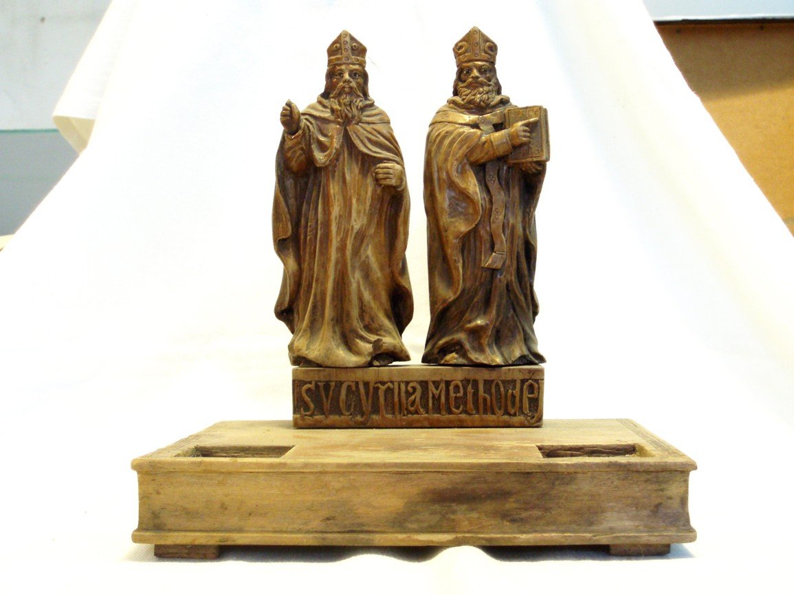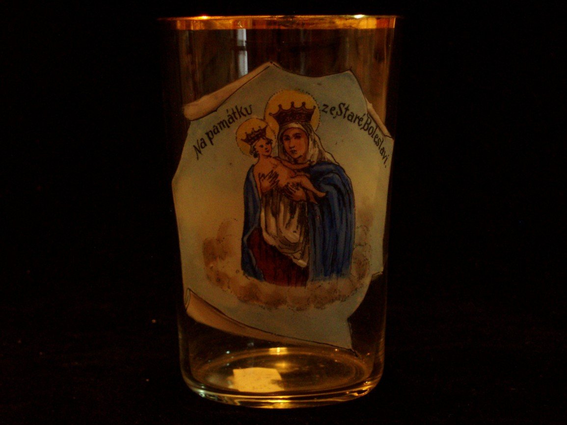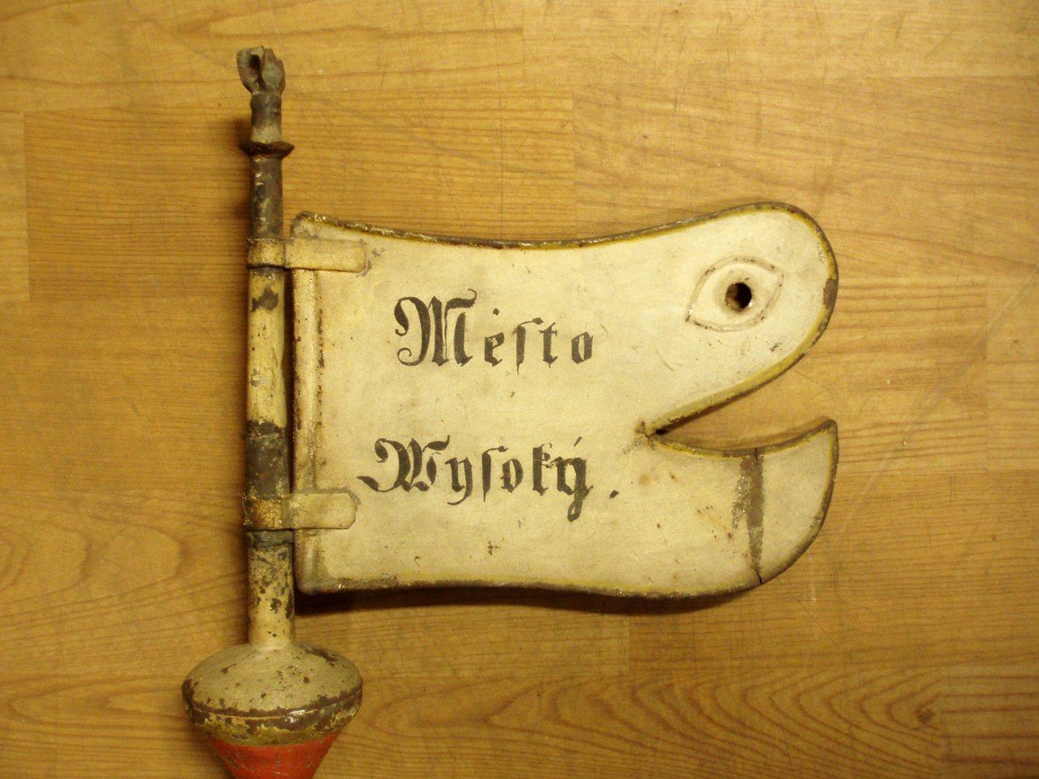 Část větrné korouhvičky (inv. č. 573) vyřezané z plechu do tvaru hlavních figur vysockého městského znaku, tedy muže bodajícího medvěda, zde z rubu s upevněním určeným na vodorovnou tyčku se šipkou. Dřevěný stojánek ve tvaru knihy s výřezy asi na dva kalamáře s inkoustem (inv. č. 574) doprovází řezbou zobrazení svatí Ukázka uložení Zobrazení svatého Josefa s Ježíškem, který jej korunuje vínkem vítězné mravní čistoty zdůrazněné lilií v Josefově pravici (inv. č. 83) barvotiskového vzhledu, jako ukázka pozdní výzdoby místností. Zobrazení Panny Marie Pomocné s Ježíškem (inv. č. 102) na plátně pod sklem v hlubokém dřevěném rámu odkazuje na úctu k tomuto mariánskému typu doloženou i z jiných vysockých pramenů. Výšivka doplňující zobrazením těl vystřižená plochá zobrazení hlav a rukou svaté Anny a její dcery Panny Marie byla údajně vyšita Annou Kousalovou z Roprachtic 26. května 1864. Dřevěná tabatěrka, či krabička na cigarety, (inv. č. 235) ozdobená monogramem J. S. a letopočty z první světové války na víčku zdobí vespod vyřezaná hlava koně. Porcelánová kropenka (inv. č. 391) s andělem stojícím před křížem, která nebyla určena k obvyklému zavěšení na stěnu, ale k postavení na podložku. Pohárek z první světové války (inv. č. 460) s daty 1914 a 1915, nápisy a zobrazeními dvou císařů, darovala slečna Marie Schrötrová, vězeňkyně nacistů za druhé světové války. Talíř (inv. č. 468) zdobený na dně zobrazením pražského vlakového nádraží s nápisem Líc kovové korouhve (inv. č. 520), kterou se zahajoval a ukončoval trh ve Vysokém, zdobí nápis Tento jakýsi oltářík (inv. č. 933) přináší nejen zobrazení určitého námětu, ale ve slovech Uložení praporů, včetně rozměrných cechovních korouhví zvaných Obraz (inv. č. 4382) zachycující asi s Ježíškem svatého Antonína byl inventárním zápisem určen jako Malovaný kříž (inv. č. 4386) s Ukřižovaným asi na krejčovský cechovní příkrov na rakev maloval dle tradice Karel Rón, či Rohn, zvaný Karlíček Tabatěrka (inv. č. 4515) snad z roku 1850 má víko zdobené malbou Večeře Páně a odkazuje nejen na někdejší vysocký velkosklad tabáku, ale též snad na malování krabiček v Rychnově u Jablonce nad Nisou. Podmalba na skle (inv. č. 4632) zobrazuje Umučení Páně mezi Pannou Marií a svatým apoštolem Janem před Jerusalemem před temným pozadím. Porcelánový krucifix (inv. či. 792)  přes malé rozměry nezachycuje jen Ukřižovaného, ale též golgotskou legendární lebku Adama a zlatě naznačené umístění nápisu kráceného jindy alespoň na INRI.     Porcelánová vázička (inv. č. 856) ozdobená asi orlicí na modrém pozadí byla do sbírky již přijata s poškozeným levým křídlem, ale i tak ji doplnila o odlišný námět od ostatního porcelánu ve sbírce. Vysocké pečetidlo (inv. č. 860)  asi z 16. věku snímek zachycuje ze spodní strany určené k vytvoření menší pečeti pro Tato figurka Panny Marie Immaculaty (inv. č. 1388) zastupuje rozmanité duté sklo vhodné na vyzdobení domácího skleníku, či oltáříku a podobně. Vysocká ateliérová fotografie (inv. č. 2508) krojů na 6 jmény známých mladicích dokládá snad národopisné nadšení druhé čtvrtiny 90. let 19. věku, z nějž vzešlo i vysocké městské museum. Tuto ozdobu (inv. č. 4349) na vitrínu vysockého okresu pro Národopisnou výstavu českoslovanskou v Praze zhotovila řezbářská dílna bratří Bušků na Sychrově před 8. květnem 1895. Oválný oboustranný obraz (inv. č. 4383) se zbytkem tkaniny asi kostelní korouhve zachycuje z jedné strany anděla strážce před hadem a na této straně zdobení mariánského oltáře. Pohřební štít s tepaným svatováclavským reliéfem (inv. č. 4395) náležel na rakev cechu sedmera (někdy i vícera) spojených řemesel, zvaného sedmerácký. Příkrov na rakev (inv. č. 4402) zdobený na vrchu křížem má zespodu přišito značení z Národopisné výstavy českoslovanské v Praze z roku 1895, jehož obdobu nese i několik dalších předmětů ve sbírce. Na model (inv. č. 4405)  Sklenici (inv. č. 4720) s vyobrazením Panny Marie Staroboleslavské darovala slečna Marie Schrötrová  a slouží jako připomínka poutního místa ležícího s Vysokým v jednom starém mladoboleslavském kraji. Skleněný pohár (inv. č. 4721) s žertovným vyobrazením figury ze znaku bavorského Mnichova darovala slečna Marie Schrötrová a patří mezi řadu památek vysockého musea z různých částí Evropy. Kovový kříž (inv. č. 4837) cechu pekařsko-mlynářsko-pernikářského k připevnění skrz pohřební příkrov na rakev zesnulého člena cechu. Pohřební štít (inv. č. 4826) pekařsko-mlynářsko-pernikářského cechu s tepaným reliéfem zobrazujícím svatého apoštola Pavla, ač mu chybí na jiném exempláři dochovaný meč jako hlavní atribut. Kříž k ševcovskému  Ze dřeva vyřezaná figura Panny Marie Svatohorské (inv. č. 5163) z blíže neurčené polní kaple údajně z roku 1740, což se asi vztahuje na kapli. Růženec (inv. č. 5243) se španělskojazyčnými nápisy byl darován z rodiny Šaldovy, jejíž člen pobyl za prací ve Spojených státech amerických, takže snad ve sbírce zastupuje předměty mimoevropské. Takto bylo dlouho na světle uloženo, nyní před ním skryté, foto (inv. č. 4594) Magdy Nečáskové, rozené Angrové, roku 1914 zesnulé choti zemského školního inspektora Karla Nečáska. Podmalba na skle (inv. č. 4625) zobrazuje svatého Martina dělícího se o svůj vojenský plášť se žebrákem a v něm s Kristem na světlém pozadí. Podmalba na skle (inv. č. 4633) zobrazuje svatou Annu učící Pannu Marii na bílém pozadí zdobeném květy a přes velké poškození nese v nápise