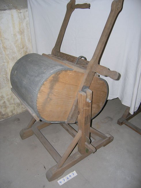 | Předměty | Podsbírka E (vybavení domácnosti, aktivity volného času)Podsbírka E obsahuje více jak jedenáct set sbírkových předmětů. Tvoří ji několik podskupin předmětů, pro něž je společné jejich užívání v domácnostech venkovských vrstev či souvislost s trávením volného času. Tato podsbírka se nejvíce přibližuje sbírkovému fondu etnografických muzeí. Současně se však od nich v mnoha směrech liší. Nejvýznamnější co do počtu je skupina nádob, nádobí a dalšího vybavení kuchyně (celkem čítá přes dvě stovky předmětů), a co do skladby obsahuje nejrůznější nádoby používané jak k uchovávání potravin v domácnosti, tak i k přípravě pokrmů - tj. různé hrnce, díže, ošatky, slaměné nádoby, vědra, mísy, pekáče, formy na bábovky, talíře apod. ale i příbory a náčiní používané při vaření jako nože, vidlice, struhadla, cedníky aj. a konečně různé kuchyňské strojky pražičkami kávy a mlýnky na strouhanku či koření počínaje a kuchyňským robotem konče. Doplňkový materiál této skupiny obsahuje i podsbírka Z skupina mlékařství, kde jsou uloženy nádoby na mléko, případně podsbírka P, kde se nacházejí v řeznictví formy na paštiky, hrnce na sádlo, naběračky, vidlice apod. Další významnou skupinu čítající zhruba čtyřicet kusů tvoří nábytek a bytové doplňky. Vedle skříní, truhel, stolů, postelí či židlí, zde lze najít i různé poličky,kazety a schránky. Tuto část podsbírky E doplňuje soubor cca desítky kusů lidového nábytku dlouhodobě zapůjčené Městským muzeem Chrást u Chrudimi. Další část podsbírky tvoří oděvy, jejich součásti a oděvní doplňky v úhrnném počtu více jak sto kusů. Ostatní části podsbírky jsou co do rozsahu podstatně skromnější. Větší soubor tvoří pomůcky k praní a žehlení prádla. Další představují kolekce hygienického zařízení jako lavory, vany, nočníky, hřebeny, kartáče apod., dále soubor svítidel, otopných zařízení a pomůcek k nim. Menší podskupinu tvoří předměty spojené s trávením volného času. Zde je možno nalézt hudební nástroje či hračky. Do podsbírky E byla volně začleněna i kolekce sádrových bust a dalších sochařských děl v počtu do dvou desítek kusů převážně se vztahující k významným zemědělským osobnostem. Mezi nimi lze nalézt i busty státníků. Nejstarší část této podsbírky pochází ze sběrů Národopisného muzea, které zemědělské muzeum ve dvacátých letech odkoupilo od Národopisné společnosti. Jednalo se především o vybavení domácností jako různé slaměné nádoby, džbánky apod. Pravděpodobně řada z nich pocházela již z Národopisné výstavy. Část předmětů získalo NZM i z muzejním sběrem Kazimourových Muzejních odborů agrárního dorostu. Jelikož těsně po druhé světové válce byly inventární knihy zjednodušeny a přepsány, přičemž ne vždy byl poznamenán původ předmětů u mnoha předmětů již nejsme dnes schopni jejich původ určit. Předměty podsbírky E byly průběžně sbírány vedle zemědělské výrobě sloužících předmětů po celé meziválečné období. Sbírkové oddělení Život zemědělce, jak se tehdy podsbírka E nazývala se dlouhodobě ocitlo na pokraji zájmu pracovníků NZM. Poslední větší přírůstky do této podsbírky byly spojeny se Slovanskou zemědělskou výstavou v Praze roku 1948 a poté po dlouhá desetiletí přibývaly jen ojedinělé přírůstky. Větší přírůstky v této podsbírce jsou spojeny až s posledními deseti lety, kdy se sbírka zejména zásluhou změny koncepčního přístupu rozrostla o řadu předmětů z vybavení domácnosti včetně nábytku z období od počátku 20. století, tedy období, které je na pokraji zájmu etnografů. V meziválečném období nebyla tato skupina sbírek samostatně vyčleněna a spravovali jí tehdejší kustodi ing. A. Macha a ing. F. Šach. V 50. letech se stal kurátorem sbírky dr. Vratislav Šmelhaus, který ji spravoval až do své smrti počátkem 80. let. Tehdy ho nahradil dr. J. Rychlík, jehož počátkem 90. let vystřídal dr. A. Kubačák. Od druhé poloviny 90. let spravuje tuto podsbírku její současný kurátor dr. Pavel Novák. Prioritou podsbírky E do budoucna je dokumentace základních trendů životního stylu venkovských vrstev tak, aby vynikla jeho modifikace vlivem změn přírodního, hospodářského, sociálního i kulturního prostředí. Znamená to se zaměřit zejména na mladší období, kdy docházelo pod vlivem urbanizace a vedle toho i kolektivizace k zásadním změnám v životě venkova a dále se soustředit na dokumentaci aktivit volného času, jež jsou dlouhodobě podceňovány.