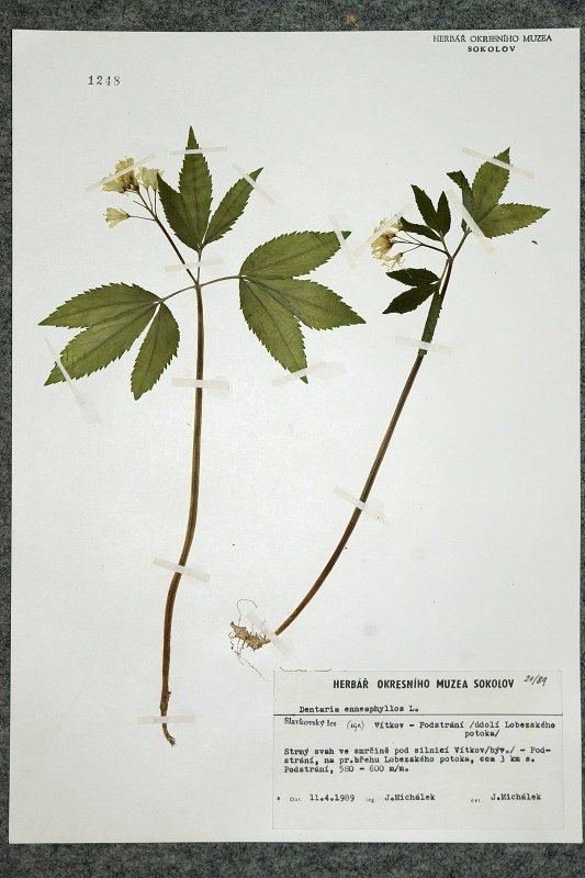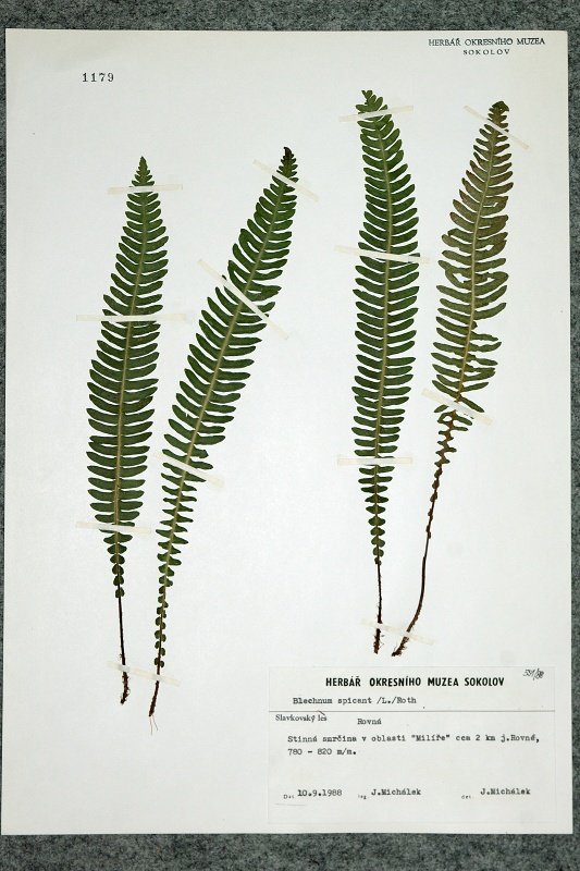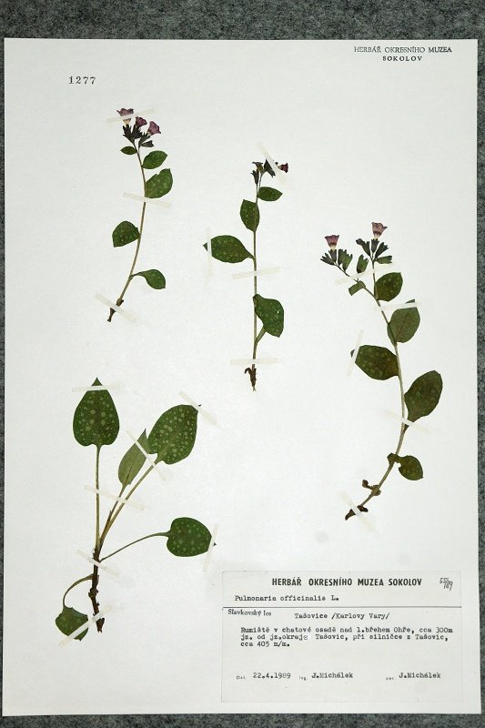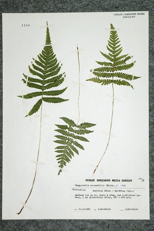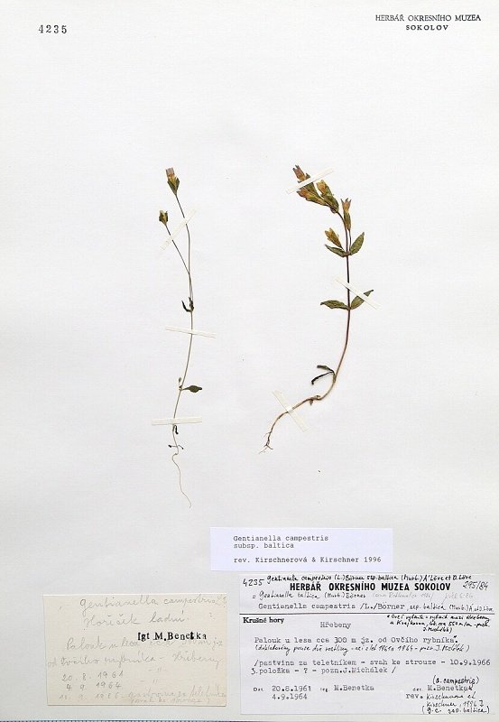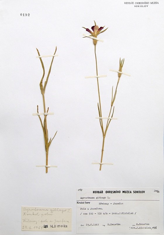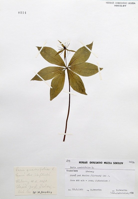 Agrostemma githago - Benetkova sbírka - lok. Hřebeny - Josefov (Krušné hory) - 1961 Paris quadrifolia - Benetkova sbírka - lok. Hřebeny (Krušné hory) - 1961 Blechnum spicant - lok. Rovná (Slavkovský les) - 1981 Phegopteris connectilis - lok. Kostelní Bříza (Slavkovský les) - 1988 Petasites albus - lok. Luh nad Svatavou (Krušné hory) - 1989 Salix fragilis - lok. Velichov, Ohře (Doupovské hory) - 1989 Viola x scabra - lok. Velichov (Doupovské hory) - 1989 Hepatica nobilis - lok. Velichov (Doupovské hory) - 1989 Dentaria enneaphyllos - lok. Vítkov - Podstrání (Slavkovský les) - 1989 Glechoma hederacea - lok. Tašovice (Slavkovský les) - 1989 Lamium maculatum - lok. Tašovice (Slavkovský les) - 1989 Pulmonaria officinalis - lok. Tašovice - rumiště - zplanělá rostlina (Slavkovský les) - 1989 Chrysosplenium alternifolium - lok. Osvinov (Doupovské hory) - 1989 Chaerophyllum hirsutum - lok. Stráž nad Ohří - Peklo (Doupovské hory) - 1989 Equisetum arvense - lok. Stráž nad Ohří - Peklo (Doupovské hory) - 1989 Chrysosplenium oppositifolium - lok. Vítkov - Podstrání (Slavkovský les) - 1989 Malva moschata - lok. Ležnička (Slavkovský les) - 1991 Myosotis stricta - lok. Citice - Hlavno (Sokolovská pánev) - 1989 Fragaria viridis - lok. Hlavno (Sokolovská pánev) - 1989 Lathyrus linifolius - lok. Hlavno (Sokolovská pánev) - 1989 Festuca pallens - lok. Boč - Stráž nad Ohří (Doupovské hory) - 1989 Potentilla anserina - lok. Stráž nad Ohří (Doupovské hory) - 1989 Geum rivale - lok. Stráž nad Ohří (Doupovské hory) - 1989 Solidago virgaurea - lok. Loket - Svatošské skály (Slavkovský les) - 1991 Juncus bufonius - lok. Staré Sedlo (Sokolovská pánev) - 1991 Gentianella campestris ssp. baltica - Benetkova sbírka - lok. Hřebeny (Krušné hory) - 1961 a 1964 Carduus crispus - lok. Jakubov: Mlýn na Ohři (Doupovské hory) - 1991 Botanický depozitář Muzea Sokolov - uložení sbírkových krabic v regálech Botanický depozitář Muzea Sokolov - čelní pohled na sbírkové krabice Otevřená sbírková krabice s ochranou před škůdci (uzavřený plastový obal, uvnitř insekticid Invet) Obálky s exsikáty ve sbírkové krabici