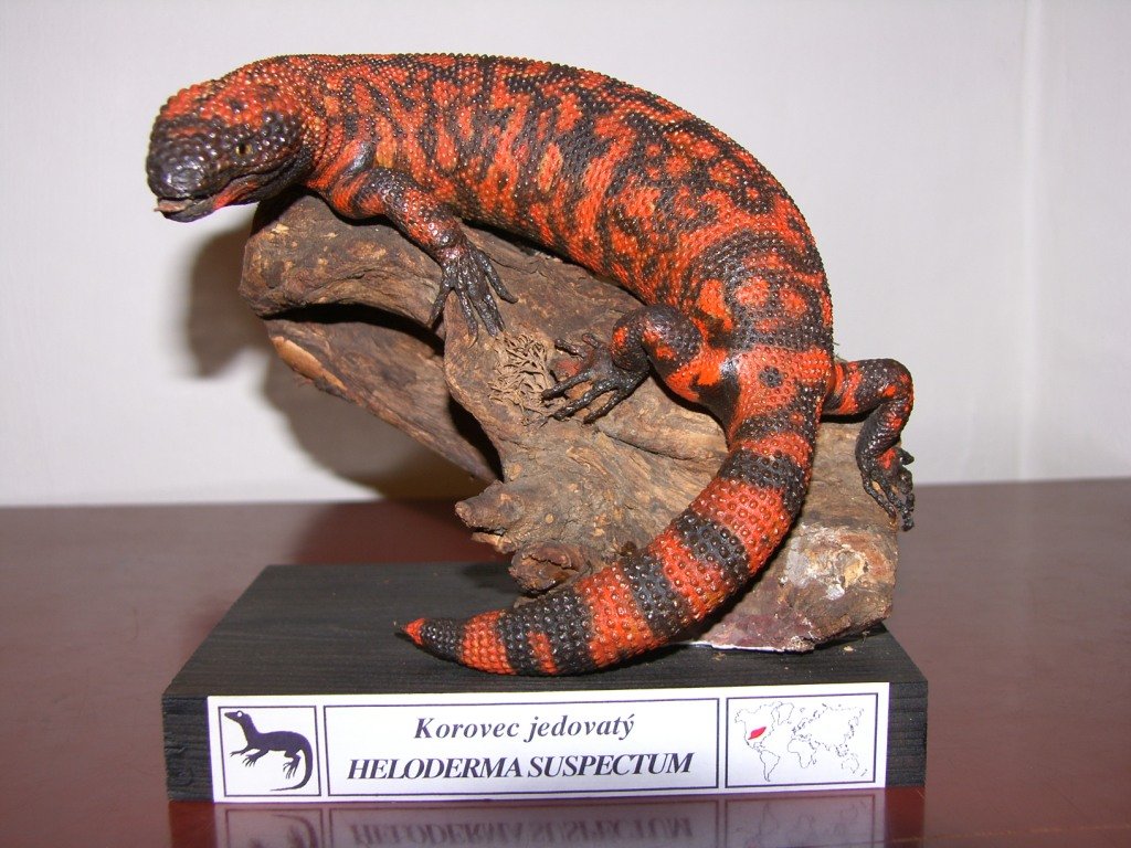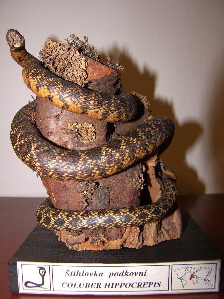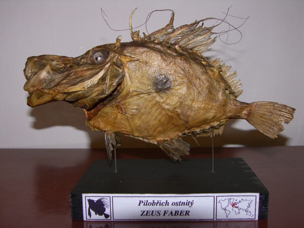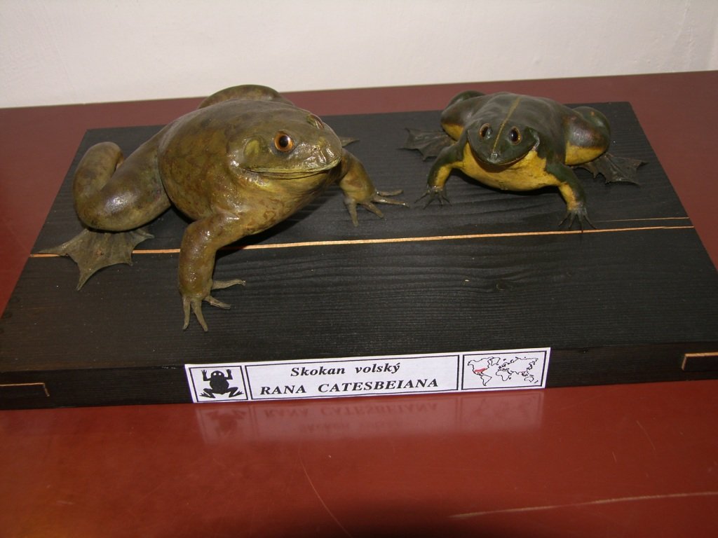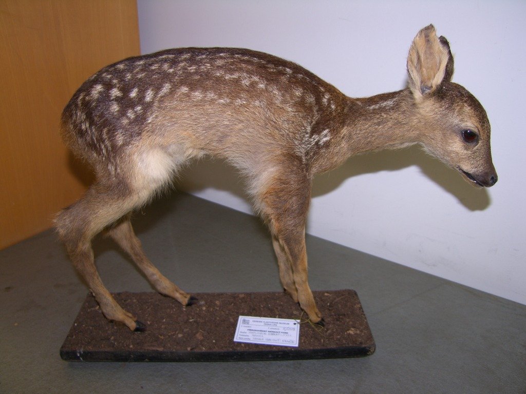 Sova pálená (Tyto alba) Tetřívek obecný, samec (Lyrurus tetrix) Mořský koník (Hippocampus hippocampus) Ostrobok  (Selene vomer) Pilobřich ostnitý (Zeus faber) Žralok kladivoun, mladý jedinec (Sphyrna zygaena) Rejnok ostnatý (Raja clavata) Chřestýš brazilský (Crotalus durissus) Rohatka ozdobná (Ceratophrys ornata) Žábronoš skvrnitý (Necturus maculosus) Hrabatka kropenatá, samice (Pyxicephalus adspersus) Skokan volský (Rana catesbeiana) Heterodon americký (Heterodon nasicus) Mlok černý (Salamandra atra) Korovec jedovatý (Heloderma suspectum) Ropušník trnohlavý (Phrynosoma cornutum) Scink uťatý (Tiliqua rugosa) Tereka africká (Pelomedusa subrufa) Klapavka americká (Kinosternos subrubrum) Štíhlovka podkovní (Coluber hippocrepis) Drozd kvíčala (Turdus pilaris) Havran polní (Corvus frugilegus ) Holub doupňák (Columba oenas) Husa běločelá (Anser albifrons) Chřástal polní, nedospělý samec (Crex crex) Mandelík hajní (Coracias garrulus) Orebice horská, samice (Alectoris graeca) Orel skalní (Aquila chrysaetos) Papoušek vlnkovaný andulka, samice (Melopsittacus undulatus) Polák velký, dospělý samec (Aythya ferina) Potápka rudokrká, samec (Podiceps griseigena) Potáplice severní, samec (Gavia arctica) Rybák obecný (Sterna hirundo) Volavka popelavá, nedospělý samec (Ardea cinerea) Zvonohlík zahradní, samec (Serinus serinus) Žluna šedá, samec (Picus canus) Rejsec vodní (Neomys fodiens) Veverka obecná (Sciurus vulgaris) Ondatra pižmová (Ondatra zibethicus) Jelení trofej uložená v depozitáři Koza bezoárová, kůzle (Capra aegagrus) Srnec obecný, srnče (Capreolus capreolus) Jelení trofej uložená v depozitáři Uložení nevystavené části sbírky Uložení nevystavené části sbírky Uložení nevystavené části sbírky Pohled do expozice Pohled do expozice Pohled do expozice Psík mývalovitý (Nyctereutes procyonoides) Pohled do expozice Jelení trofej uložená v depozitáři