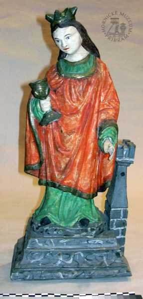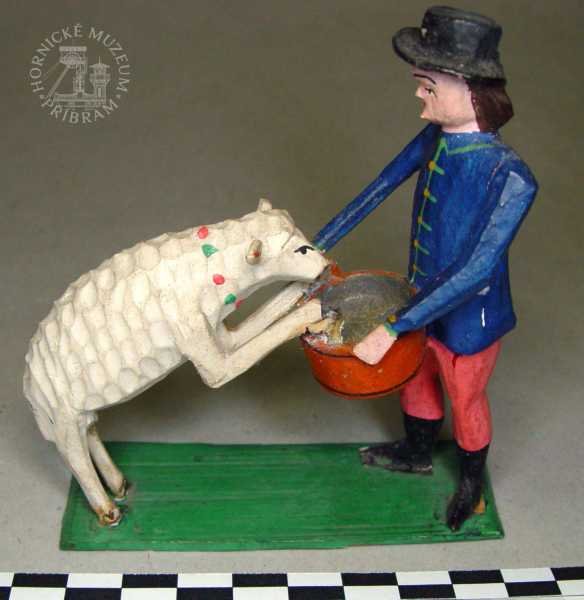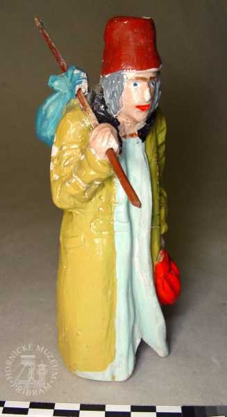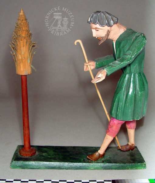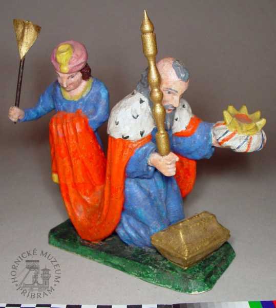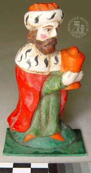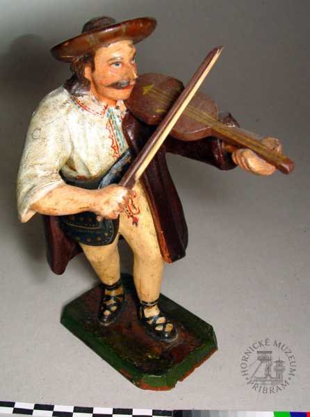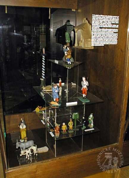 | Předměty | Etnografická sbírka Okresního muzea v Příbrami obsahuje typově bohatou škálu předmětů dokumentujících život měšťanských, zejména však lidových vrstev na Příbramsku (hornická rodina a vybavení její domácnosti).Největší pozornost je při tvoření sbírky v současné době věnována především příbramským betlémům. Tyto předměty, stejně tak jako lidové plastiky světců nebo horníků a štufenverky, jsou při nákupech či sběrech upřednostňovány.Etnografický fond je rozdělen do sedmi podskupin: betlémy, divadla, hračky, lidová výroba, strava, nábytek, umění a předměty vztahující se k zemědělství.Eb - betlémy: jde o práce lidových tvůrců - řezbářů, převážně příbramských horníků z období konce 19. století. Mezi nejvzácnější betlémy ve sbírce příbramského muzea lze řadit betlém zvaný -Vyskeř- (Eb 2094-2283), dílo několika příbramských lidových řezbářů. Součástí tohoto betlémového celku je velké, bizardní město, pro Příbram tolik typické, a figurky jednoho z nejlepších řezbářů - horníků, Antonína Máchy. Dalším vzácným betlémem ve sbírkách je tzv. Bartošův betlém (Eb 2583-2719), opět jde o práci několika autorů. Nejstarší figurky pocházejí z 2. poloviny 19. století.Ed - divadla: loutková divadla lidových tvůrců, pocházejí zejména z počátku 20. století. Sbírka obsahuje také tištěné divadelní hry z období 1. poloviny 20. století.Eh - hračky: lidové hračky historické, hračky tovární výroby, moderní dřevěné hračky inspirované lidovou historickou tradicí.Er - řemesla: lidová řemesla na Příbramsku, domácká výroba, např. cvočkařství, rukavičkářství; nářadí a nástroje používané v rámci těchto řemesel; řemeslné výrobky. Relativně hojně jsou zde zastoupeny předměty spojené s provozováním cukrářského řemesla v Příbrami..Es - strava: nádobí, kuchyňské náčiní, formy na pečení, cukrářské a perníkářské formy.Em - modely, odlitky, kopie předmětů.En - nábytek a vybavení domácnosti: nábytek, dekorační předměty používané k výzdobě domácnosti, užitkové předměty používané v domácnosti (vedení, údržba).Eu -lidové umění: plastiky, podmalby na skle.Lidové plastiky světců a světic, které pocházejí z 18., zejména však počátku 19. století, se řadí k nejstarším předmětům etnografické sbírky.Ev - zvykosloví: Velikonoce, Vánoce, tj. předměty vážící se k významným obdobím roku.Ez - zemědělství: nástroje a nářadí používané v zemědělství (drobné hospodářství, dům i zahrada).Co se materiálů týče, převažují předměty zhotovené ze dřeva. Částečně jsou zastoupeny předměty kovové, z umělých hmot, keramiky, pálené hlíny, břidlice, textilií, přírodních materiálů.