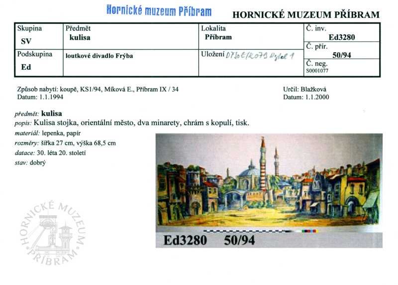 | Období | Sbírka dokumentuje zejména období 19. století až 40. let 20. století. Ojediněle jsou zastoupeny předměty starší, tj. ze 17. a 18. století, stejně tak jako mladší předměty ze 60. až 90. let 20. století.Etnografická sbírka Okresního muzea v Příbrami vznikala postupně od založení muzea, tj. od roku 1886. Jednalo se však spíše o živelné sběry a tvorbu sbírky bez konkrétního záměru. Od roku 1955 je možné sledovat počínající snahy o systematické budování jednotlivých sbírek, tedy i sbírky etnografické. Teprve rok 1965 znamenal počátek odborného vedení, budování a rozšiřování etnografické sbírky. Minimálně polovinu etnografického fondu tvoří dary, ostatní pak cílené koupě.