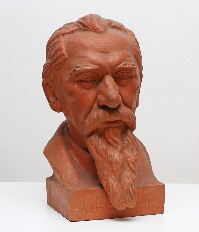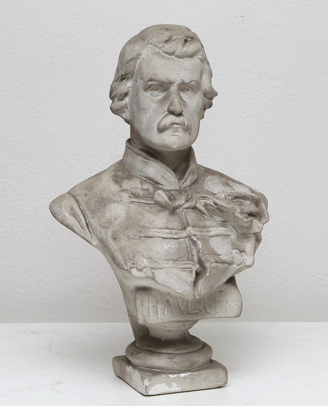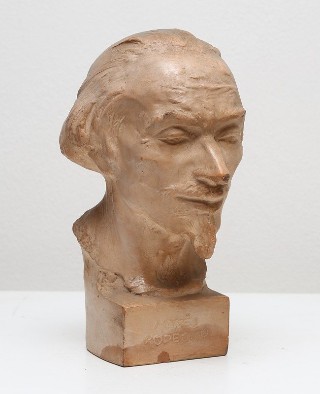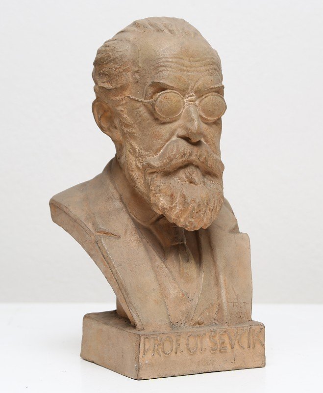 Depozitář umělecké plastiky Prácheňského muzea v Písku. Depozitář umělecké plastiky Prácheňského muzea v Písku. Depozitář umělecké plastiky Prácheňského muzea v Písku. Posmrtná maska prof. O. Ševčíka a jeho ruce. Sádrový odlitek, 1934. Autor Rudolf Březa, akad. sochař. Dívka po koupeli, pálená hlína patinovaná, výška 26 cm, 1914. Autor L. Beneš. Matěj Kopecký, loutkář, pálená hlína, výška 23 cm, 1930. Autor Ferda Štábla. Adolf Heyduk, pálená hlína, výška 32 cm, kol. 1920. Autor František Žemlička. Prof. Otakar Ševčík, keramika, výška 22 cm, kol. 1950. Autor J.Paša. Sousoší - Lidice budou žít, keramika, výška 40 cm, kol. 1950. Autor Jan Jiříkovský. Božena Němcová, keramika, výška 18 cm, 1920. Autor V.Antoš / Prémie Mánesa. Sedící postava Mikoláše Alše, bronz, výška 21 cm. 1984. Autor V. Koštoval, akad. sochař. President Edvard Beneš, pálená hlína, výška 33 cm, kol. 1946. Autor neznámý. Relief s vyobrazením sv. Trojice, alabastr, v dřevěném rámu, rozměry 35,5 x 32,5 cm, detail reliefu, poč. 19.        století. Autor neznámý. Relief s vyobrazením sv. Trojice, alabastr, v dřevěném rámu, rozměry 35,5 x 32,5 cm, poč. 19. století. Autor         neznámý. Ecce Homo – postava zmučeného Krista, patinovaná sádra, výška 40 cm, 1940. Autor Jan Adolf Vítek. Busta dívenky s mašlí ve vlasech, patinovaný štuk, výška 21 cm, kol. 1896. Autor akad. sochař Ant. Stach. Busta císaře Fr.Josefa I, kovový odlitek, výška 17 cm, podstavec 9 cm, konec. 19. století. Autor neznámý. Postava dívky – Léto, kolorovaný štuk, výška 58 cm, kol. 1896. Autor akad. sochař Ant. Stach. Postava chlapce s trubkou, kolorovaný štuk, výška 81 cm, kol. 1896. Autor akad. sochař Ant. Stach. Dřevěné řezané busty mužů v klobouku, lipové dřevo, výška 14 cm, kol. 1920. Autor neznámý. Poprsí Bedřicha Smetany, bronzový reliéf, 14 x 11 cm, s rámem 25 x 18 cm, 1923. Autor neznámý. Poprsí Dr. Aloise Rašína, bronzový reliéf, 23,5 x 16 cm, s rámem 34 x 24 cm, kol. 1925. Autor Josef Fiala. Poprsí prof. Otakara Ševčíka, bronzový reliéf, 29 x 25 cm, v dřevěném rámu, 1931. Autor Antonín Lhoták. Postava Adolfa Heyduka, soutěžní návrh pomníku, patinovaná sádra, výška 64 cm, kol. 1930. Autor neznámý. Busta K. H. Borovského, sádra, výška 32 cm, kol. 1930. Autor neznámý. Podobizna Dr. J. Malého, sádra, výška 40 cm, kol. 1930. Autor neznámý. Bronzový reliéf Za bohatou žeň, 17,5 x 14 cm, s rámem 35 x 25,5 cm, 1927. Autor Vojtěch Sucharda. Sedící postava Fr. Palackého, sádra, výška 54 cm, soutěžní model pomníku v Palackého sadech v Písku, kol.            1930. Autor Antonín Procházka.