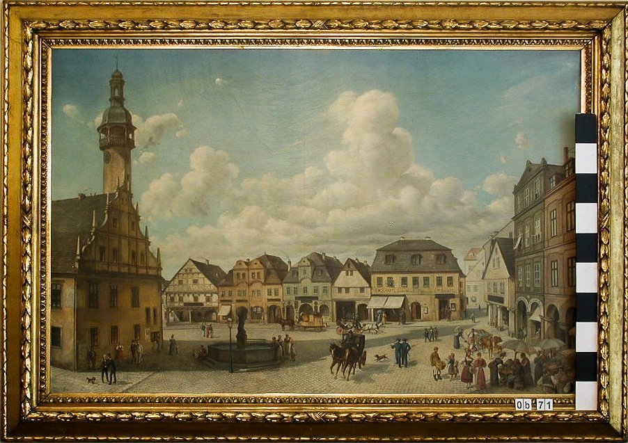 Uložení obrazů v podzemním depozitáři Ob120: Povodeň v Andělské hoře dne 2.srpna 1858, rozměry v. 61 cm, d. 80 cm; olej na plechu Ob36: Slavnostní položení závěrečného kamene nemocnice v Liberci 29. srpna 1845, Liberec; rozměry v.94 cm, d.141 cm; dřevo malba Ob48: Cechovní znak kolářský; rozměry v.50 cm, s.41 cm; plátno malba Ob81: Karlov u Josefova Dolu, Karlovu u Josefova Dolu; rozměry vr.17 cm, sr.17 cm, v.14,5 cm, s.18,5 cm; plátno malba Ob60: Slavnostní svěcení praporu libereckého střeleckého spolku, Liberec; rozměry v.80 cm, d.135 cm; dřevo malba Ob72: Staroměstské náměstí v Liberci s renesanční radnicí, Liberec; rozměry v.30,5 cm, s.40 cm, vr.38,5 cm, sr.48 cm; plátno malba Ob74: Liberec od jihu, Liberec?; rozměry v.36 cm, s.50,5 cm, vr.41 cm, sr.55,5 cm; plátno malba Ob75: Pláně pod Ještědem, Liberecko; rozměry v.80 cm, s.115 cm, vr.102 cm, sr.137 cm; plátno malba Ob77: Liberec kolem roku 1840, Liberec; rozměry v.60 cm, d.100,5 cm; plátno malba Ob79: Kostel sv.Kříže na Malém náměstí od severu, Liberec; rozměry 40,5 cm, s.60 cm, vr.45,5 cm, sr.65 cm; plátno malba Ob78: Gründelplatz neboli Ob83: Renesanční radnice na Staroměstském náměstí v Liberci, Liberec; rozměry v.41 cm, s.28,5 cm, vr.48 cm, sr.35,5 cm; plátno malba Ob84: Chrastava ze Střeleckého vrchu, od jihu; Chrastava; rozměry v.40 cm, d.53 cm; plátno malba Ob92: Novoměstské náměstí v Liberci od západu, Liberec; rozměry v.30 cm, s.40 cm, vr.39 cm, sr.49 cm; plátno malba Ob136: Pastýřská ulice se synagogou, Liberec; rozměry sr.50 cm, vr.39 cm, s.43,5 cm, v.32,5 cm; karton malba Ob805: Kostel Liberec Rochlice, Liberec; rozměry v.116 cm, s.151 cm; plátno malba Uložení obrazů v podzemním depozitáři Uložení obrazů v podzemním depozitáři Ob35: Svěcení praporu libereckého střeleckého spolku v roce 1844, Liberec; rozměry v.91 cm, d.143 cm; dřevo malba Ob47: Přírodovědné pozorování z kamene Kovadlina, Liberec; rozměry v.93 cm, d.170 cm; dřevo malba Ob54: Pohled na Liberec od jihu, Liberec; rozměry v.52 cm, s.78 cm, vr.61 cm, sr.87 cm; plátno malba Ob82: Nároží ulic Bednářské a Na Poříčí, Liberec; rozměry v.35 cm, s.45 cm, vr.43 cm, sr.53 cm; plátno malba Ob85: Vavřincův vrch, Liberec; rozměry v.14 cm, s.22,5 cm, vr.30 cm, sr.35 cm; plátno malba Ob49: Cechovní mlynářský znak; rozměry v.46,5 cm, s.37,7 cm; plátno malba Ob53: První chata na Ještědu, Liberec; rozměry v.7,2 cm, s.9,3 cm, vr.10 cm, sr.12 cm; kov malba Ob58: Cvičení libereckých střelců, Liberec; rozměry s.94 cm, d.129 cm; dřevo malba Ob71: Staroměstské náměstí (dnes nám.Dr.E.Beneše)v Liberci, Liberec; rozměry v.118 cm, d.178 cm; plátno malba