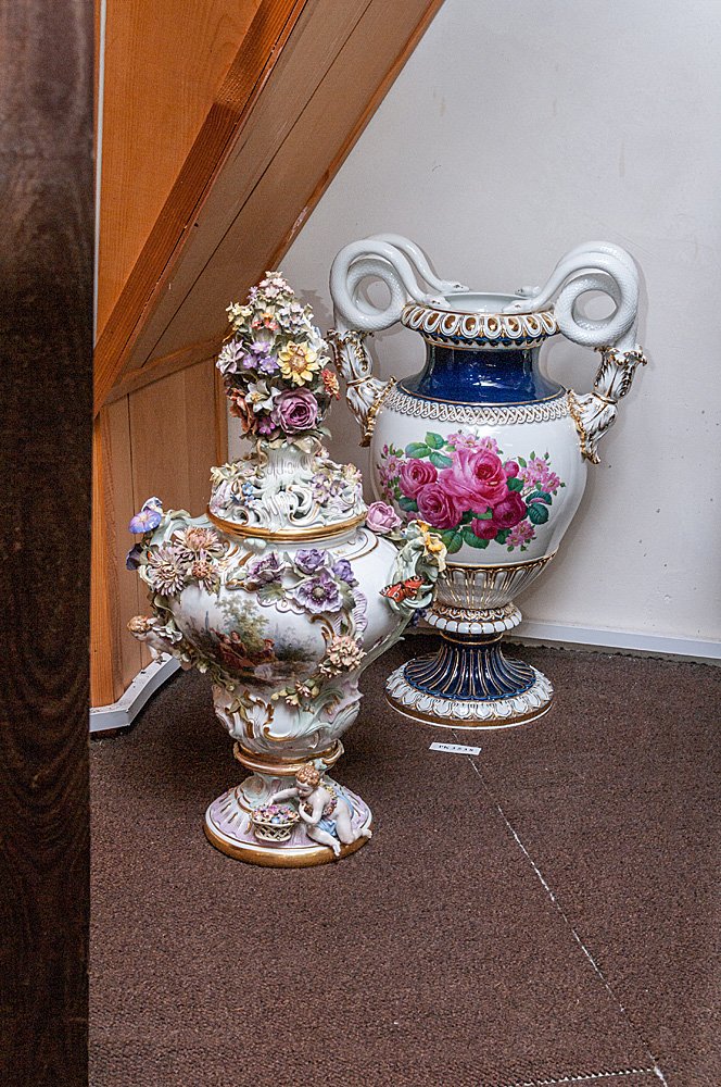 PK13: Džbán s víkem, kamenina, reliéfní florální dekor, Německo, 15. století PK121: Lahev čtyřboká, majolika, malba, Itálie, Albissola, dílna Grasso, 2. polovina 17. století PK544+PK547: Miska na polévku se dvěma uchy s podkladní miskou, porcelán, malba, Německo, Míšeň, kolem roku 1760 PK2150: Dóza na čaj, kamenina, reliéfní dekor, Holandsko, kol 1680 PK2431: Calénská fiála miskovitého tvaru, reliéfní dekor, Itálie 2. pol. 3. století př. n. l. PK2445-PK2479: Čajový servis, kamenina, malba, zn. Wedgwood, Anglie kol 1790 PK2456: Šestiboká láhev, fajáns, cín, malba, habánská práce, Morava kol 1680 PK3203: Fajánsová holba s cínovým víkem, glazura, malovaný dekor, Drážďany, r. 1747 PK3481: Váza, malba emailovými barvami, zlato, Japonsko, 19. století PK3987: Soška PK4148-PK4150: Figurální krbové hodiny, glazování, malba, firma Josef Rydl a Karel Thon, Svijany-Podolí, kol 1913 PK4232: Váza, majolika s černým dekorem, f. B. Bloch, Čechy, Unčín, kol 1915 PK4450: Mísa, porcelán točený na kruhu, pískovaný, modrozeleně polévaný, aut. Aleš Werner, Praha, rok 1996 Pohled na uložení předmětů v oddělení porcelánu Pohled na uložení předmětů v oddělení porcelánu Pohled na uložení předmětů v oddělení keramiky PK18: Talíř ve stylu Istoriati, majolika, malba vysokožárnými barvami, malba - Setkání Coriolana se svou matkou, Itálie, Urbino, kolem roku 1540 PK64: Váza na květiny, delftská fajáns, malba, Holandsko, Delft 17. - 18. století PK0974: Porcelánový šálek, bílá glazura, malba, zlacení, Míšeň kol 1890 PK1095: Porcelánová terrina, malovaný dekor, značka uvnitř víka, Mainz kol 1750 PK1322: Džbán s víkem, glazování, malba, Rouen nebo Delft, 2. pol. 17. století PK1422: Terina s víkem, malovaný dekor, Bayreuth asi 1760 PK2344: Dóza v podobě kraba, víčka, Míšeň kol 1810 PK2442: Nízký keramický lékythos, červenohnědá malba, Athény, kol 530 př. n. l. PK3547: Nádoba na štětce, porcelán, inkrustovaný drátek, malba smaltem typu cloisonné, nezjištěná značka autora, Japonsko, 19. století PK3659: Nádobka v podobě býka, pálená hlína, malovaná, Kypr, 14. - 13. st. př. n. l. PK4403: Závěsný reliéf, glazovaná keramika, aut. Marta Taberyová, Praha, r. 1980 PK4520-PK4523: Kávový servis, porcelán, malba, zlacení, soubor Ivana, aut. Karel Němeček, Karlovy Vary, 1959 Pohled na uložení předmětů v oddělení porcelánu Pohled na uložení předmětů v oddělení keramiky