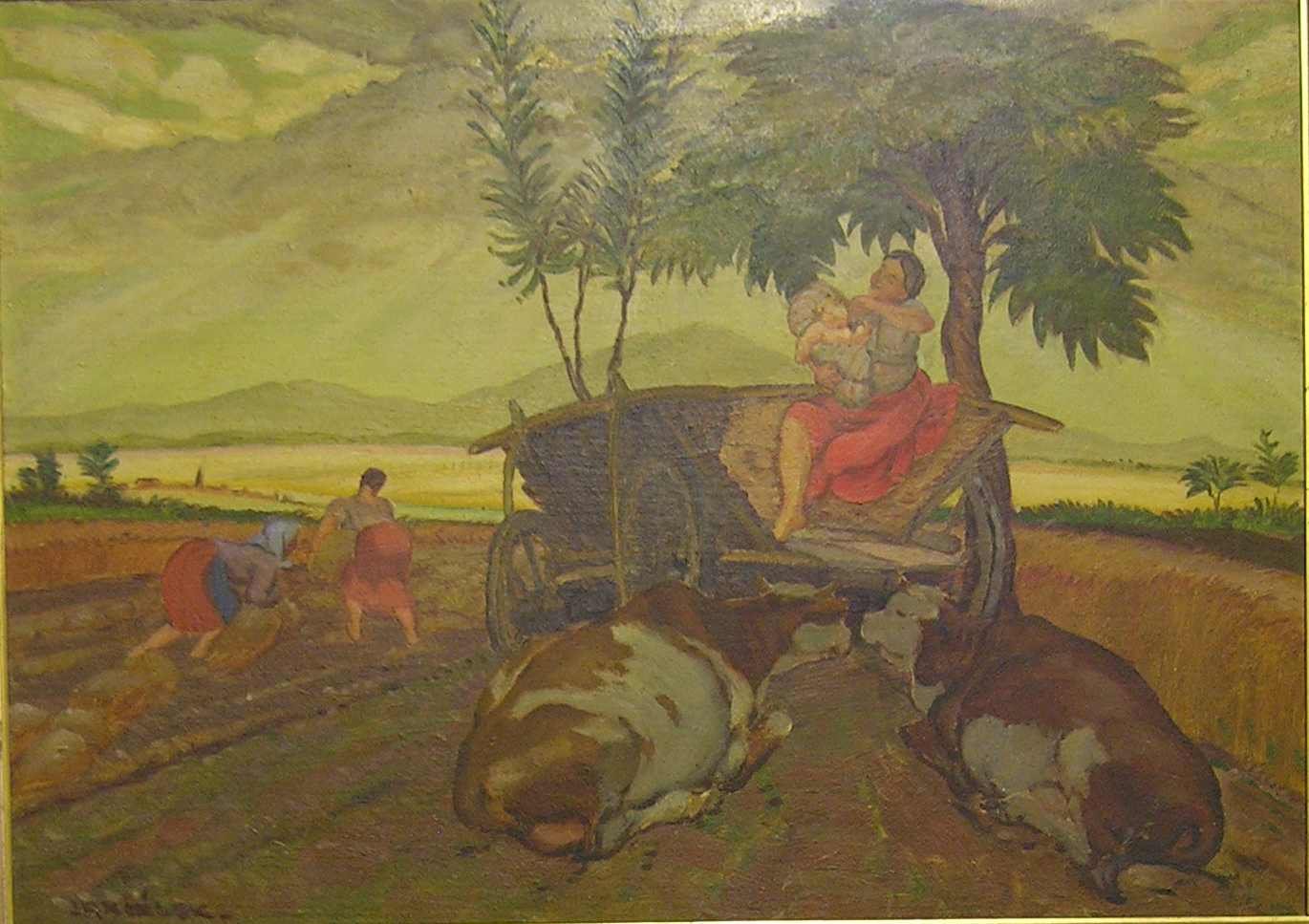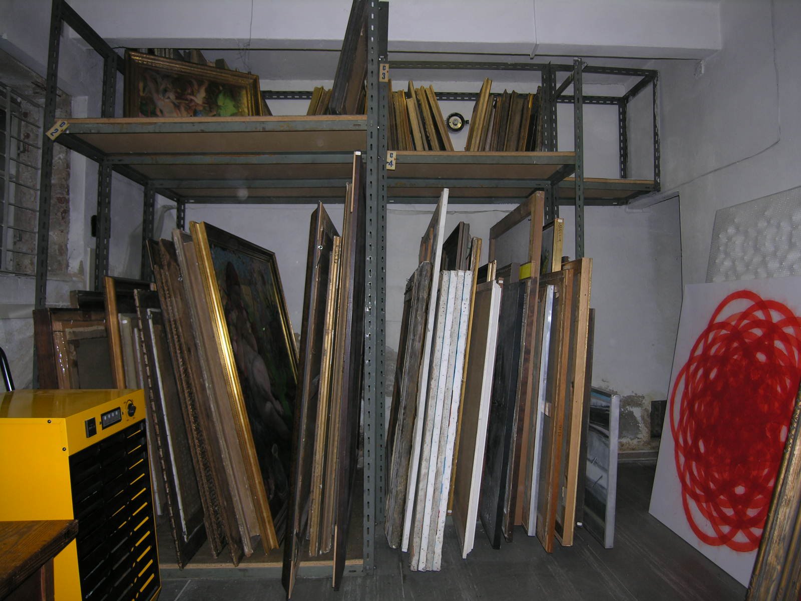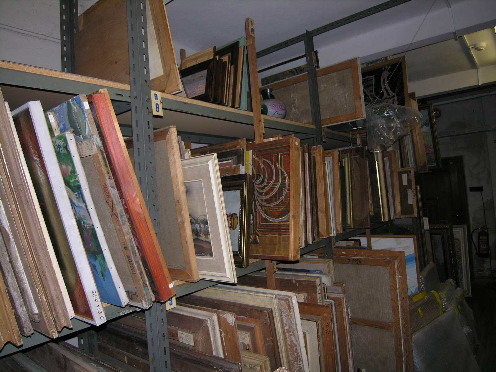 Depozitář podsbírky Malba. Uložení velkých formátů. Vlevo je odvlhčovač a antibakteriálním filtrem. Depozitář podsbírky Malba. Uložení malých formátů. Depozitář podsbírky Malba. Uložení malých a středních formátů. Depozitář podsbírky Malba Köhler Jano, Šohaj z Nenkovic, olej, plátno, 54x44 cm, nedatováno, převedeno ze sbírky spolku SVUM, O24. Köhler Jano, Drožica z Nenkovic, olej, plátno, 57x47 cm, nedatováno, převedeno ze sbírky spolku SVUM, O25. Lolek Stanislav, Náměstí v Hodoníně, olej, plátno, 48x67 cm, 1914, koupě od soukromé osoby 1988, O537. Matal Bohumír, Postava v sevřeném prostoru, olej, sololit, 35x25 cm, 1985, koupě 2007, O619. Lolek Stanislav, Les s koňským spřežením, olej, plátno, 62x74,5 cm, nečitelná datace, O342. Mandel Cyril, Výměnkáři, olej, plátno, 43x51,5 cm, nedatováno, koupě od soukromé osoby, O163. Mervart Augustin, Dubrovník, olej, lepenka, 38x32 cm, 1926, koupě od soukromé osoby 2013, O633. Mandel Cyril, Krajina, olej, lepenka, 31,5x23,5 cm, nedatováno, koupě od soukromé osoby 2013, O634. Urban Cyril, Krajina, olej, plátno, 75x69 cm, nedatováno, koupě 1974, O329. Vaculka Vladislav, Ulice, olej, plátno, 53x64 cm, 1941, koupě od soukromé osoby 1980, O405. Hodonský František, Starý lom, olej, plátno, 65x75 cm, 1973, převedeno z Ministerstva kultury 1973, O310. Benka Martin, Studie k domu umělců, olej, lepenka, 23,5x30,5 cm, 1914, koupě od soukromé osoby, O615. Novák Karel, Na podzim v poli, tempera, lepenka, 50x69 cm, nedatováno, koupě 1975, O354. Lolek Stanislav, Krajina, olej, plátno, 47x62 cm, nedatováno, koupě 1971, O291. Jambor Josef, Zimní krajina, olej, plátno, 73,2x71,7 cm, nedatováno, koupě 2006, O617. Ondrůšek František, Dívka na zápraží, olej, dřevo, 40x31 cm, nedatováno, O355. Kubíček Jánuš, Podzim v Mikulově, olej, plátno, 106,5x80,5 cm, nečitelná datace, převedeno z ONV Hodonín 1963, O156. Urban Cyril, Živly, olej, plátno, 78x69 cm, 1973, koupě 1974, O328. Köhler Jano, Dívčí portrét, olej, plátno, 51x41 cm, nedatováno, koupě 1972, O306. Rek František, Krajina, olej, plátno, 38x53 cm, 1918, převedeno ze sbírky spolku SVUM, O2. Havelka Roman, Jabloň, olej, plátno, 45x59 cm, nedatováno, koupě 1972, O294. Koudelka Josef, Děvče u studny, olej, plátno, 71x63 cm, nedatováno, převedeno z Obl. galerie Ostrava1967, O265. Frolka Antoš, Žena s ošatkami, olej, plátno, 63x43,5 cm, 1926, koupě od soukromé osoby 2003, O601. Vašíček Vladimír, Krajina za vedra, olej, plátno, 60x73 cm, 1958, převedeno z ONV Hodonín 1963, O153. Jambor Josef, Veduta, olej, plátno, 73,2x54,2 cm, 1956, koupě 2006, O618. Jančálek Cyril, Polní motiv, olej, lepenka, 50x70 cm, nedatováno, O341. Hoplíček František, Děvčátko, olej, lepenka, 27x21,5 cm, nedatováno, koupě 1975, O348. Pečínka František, Zimní krajina, pastel, papír, 82x95 cm, 1899, koupě 1984, O468. Lehotský Karol, Krajina z povodí Moravy, olej plátno na lepence, 31x37 cm, nedatováno, převedeno ze sbírky spolku SVUM, O126. Uprka Joža, Boží tělo ve Velké, olej, plátno, 45x90 cm, nedatováno, koupě 1972, O303. Kovařík Hubert, Svoboda, olej, plátno, 101x81 cm, nedatováno, převedeno ze sbírky spolku SVUM, O135. Saňa Bedřich, Muž v kroji, olej, plátno, 74x61 cm, nedatováno, koupě od autora 1981, O440. Obrovský Jakub, Dívka se zrcadlem, olej, plátno, 107,5x84,5 cm, nedatováno, převedeno ze sbírky spolku SVUM, O72. Benka Martin, Do hor, olej, lepenka, 16x23 cm, nedatováno, převedeno ze sbírky spolku SVUM, O13. Blažek Jan, Venkovský motiv, olej, sololit, 61x46 cm, 1973, koupě od soukromé osoby 1981, O418. Mandel Cyril, Dědinský filozof, olej, plátno, 36x40 cm, nedatováno, koupě 1972, P298. Uprka Joža, Děvče ve vinohradě, olej, plátno, 46x31 cm, nedatováno, převedeno z ONV Hodonín 1963, O149. Lolek Stanislav, V řepě, olej, plátno, 90x111,5 cm, 1919, převedeno ze sbírky spolku SVUM, O41. Lolek Stanislav, Snídaně (Svačina pod stromem), olej, plátno, 80,5x95,5 cm, nedatováno, převedeno ze sbírky spolku SVUM, O43. Benka Martin, Světnice, olej, lepenka, 42x42 cm, nedatováno, převedeno z Ministerstva školství 1965, O243. Duša Ferdiš, Tatranský motiv II., pastel, papír, 61x48 cm, nedatováno, koupě 1973, O316. Duša Ferdiš, Tatranský motiv I., pastel, papír, 58x46,5 cm, nedatováno, koupě 1973, O315. Koudelka Josef, Moravský šohaj, olej, překližka, 69x48 cm, nedatováno, koupě od soukromé osoby 2013, O635. Saňa Bedřich, Tetička Čambalka, olej, lepenka, 50x61 cm, 1948, převedeno ze sbírky spolku SVUM, O47. Kovařík Hubert, Trampové, olej, plátno, 72,5x77 cm, 1936, převedeno ze sbírky spolku SVUM, O137. Mervart Augustin, Štramberk, olej, plátno, 95x136 cm, 1910, koupě 1973, O321. Pečinka František, Žudro, olej, lepenka, 34x24 cm, nedatováno, převedeno ze sbírky spolku SVUM, O7. Tichý Miroslav, Akt s kyticí, olej, lepenka, 25x29,5 cm, 1955, převedeno z ONV Hodonín, O448. Matal Bohumír, Postava v sevřeném prostoru, olej, sololit, 35x25 cm, 1986, koupě 2007, O620. Frolka Antoš, Klekání, akvarel, papír, 100x66 cm, 1910, koupě 1971, O293. Ondrůšek František, Táborsko, olej, plátno, 116x75 cm, 1908, převedeno ze sbírky spolku SVUM, O44. Ondrůšek František, Intendant Possart, olej, plátno, 100x83 cm, 1924, převedeno ze sbírky spolku SVUM, O33. Hoplíček František, Děti, olej, lepenka, 63x80 cm, nedatováno, koupě 1972, O305. Lolek Stanislav, Pastva v podvečer, olej, plátno, 80x120 cm, 1933, převedeno ze sbírky spolku SVUM, O39. Duša Ferdiš, Tatranský motiv III., pastel, papír, 48,5x61,5 cm, nedatováno, koupě 1973, O317. Uprka Joža, Sázení, akvarel, papír, 40x65 cm, nedatováno, koupě 1974, O330. Mandel Cyril, Chalupy, olej, lepenka, 25x33 cm, nedatováno, koupě 1974, O331.