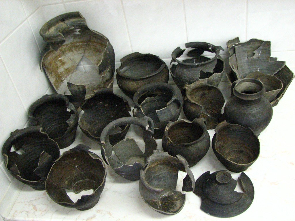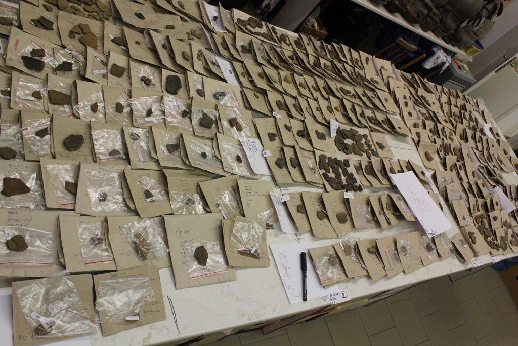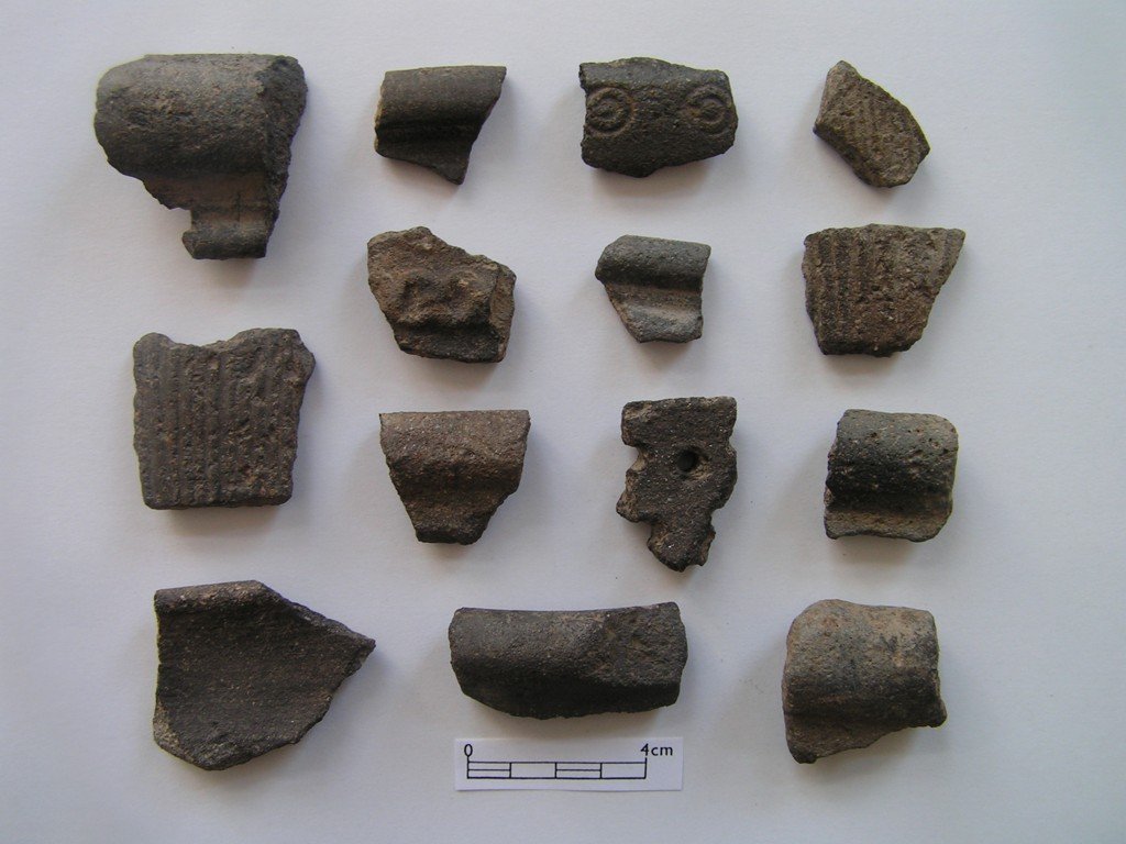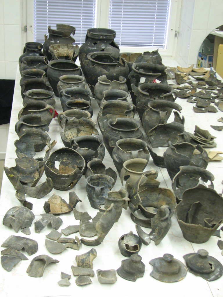 | Předměty | zvířecí kosti, lidské kosti, kostěné předměty, kamenné předměty, tuhalignitové předměty, jantarové předměty, dřevěné zlomky, dřevěné předměty, uhlíky, zlomky keramiky, keramické předměty, keramické nádoby, kožené zlomky, kožené předměty, bronzové zlomky, bronzové předměty, železné zlomky, železné předměty, železná struska, skleněné zlomky, skleněné předměty, skleněná struska, mazanice, stavební keramika, kachle, textil