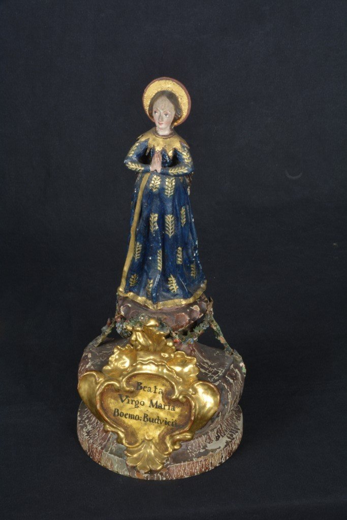 Sbírka sochařství a plastiky sestává převážně z děl sakrálního charakteru, řezeb ve slonovině, dřevořezeb, několika mramorových reliéfů a solitérů od současných umělců. Celkem je v podsbírce výtvarného umění více než 3.000 předmětů. Významné artefakty pocházející z období gotiky a rané renesance byly předány Alšově jihočeské galerii.