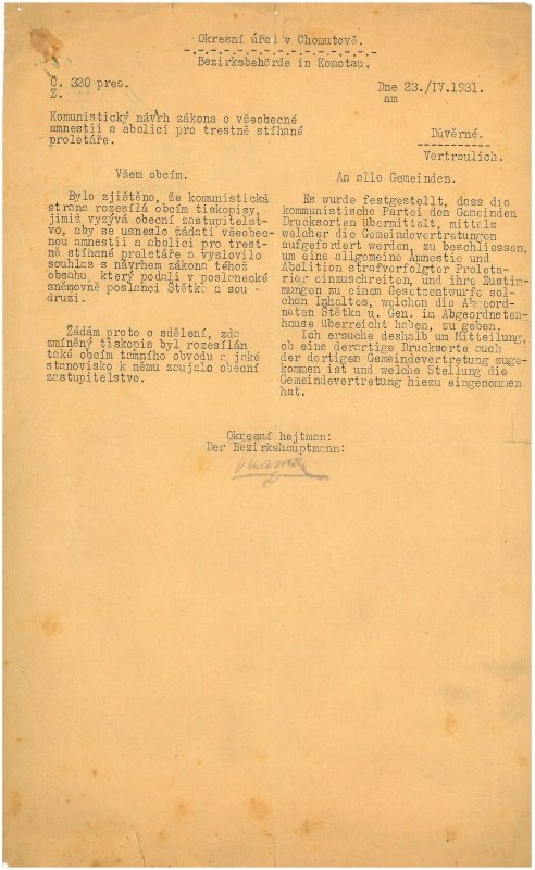 Vejprty; koupě; 1912; faktura dokládá existenci typické krušnohorské výroby před rokem 1945 a doplňuje materiály k historickému dění v našem regionu. Chomutov; koupě; 1975; medaile udělená Ministrem vnitra ČSR je součástí souboru medailí a odznaků z období po roce 1945 se vztahem k našemu regionu. Chomutov; koupě; 1932; odznak k výročí úmrtí F. J. Gerstnera je součástí souboru odznaků a medailí z období před rokem 1945 se vztahem k našemu regionu. ČSR; dar; dokumentuje aktuální situaci po Mnichovském diktátu; doplňuje materiály k roku 1938 z našeho regionu; rozšiřuje soubor map zachycujících republiku v různých historických obdobích. Chomutov; sběrem; zachycuje politické dění v roce 1938 na Chomutovsku; doplňuje materiály věnované volbám a politickým stranám v různých časových obdobích v našem regionu.  Chomutov; sběrem; 2/2 20. století; notová partitura je součástí souboru partitur od Josefa Řáhy, významného hudebního skladatele a prvního ředitele Městské hudební školy v Chomutově. Mapová skříň v depozitáři Nových dějin. Depozitář Nových dějin. Depozitář Nových dějin. Chomutov; sběrem; doplňuje materiály věnované dění v období první republiky v našem regionu. Přísečnice; převodem z muzea v Přísečnici; doplňuje sbírku materiálů k obci Přísečnice; k zaniklým obcím Chomutovska a sbírku návštěvních knih. Jirkov; sběrem; doplňuje sbírku materiálů mapujících situaci v roce 1938 na Chomutovsku. Chomutov; dar města Chomutova MěNV; 1947 - 49; pamětní kniha města Chomutova je součástí souboru pamětních knih a také materiálů se vztahem k historii města. Praha; koupě; 20. století; gramofonová deska je součástí souboru desek s hudebními nahrávkami z první republiky. Chomutov; sběrem; 20. století; vlaječka je součástí souboru vlaječek a odznaků odborových organizací, závodů a sportovních jednot z našeho regionu po roce 1945. Vejprty; převedeno z muzea v Karlových Varech; 1914 - 18; album dopisnic německých vojínů z ruského zajetí za 1. světové války. Album je součástí  souboru poštovních známek. Chomutov; DPV Chomutov; 1962; přepis výpovědi pamětníka na období okupace a osvobození je součástí celého souboru vzpomínek pamětníků zachycujících různé historické události v našem regionu. Chomutov; sběrem; zachycuje politické dění v roce 1931 na Chomutovsku; doplňuje materiály věnované politickým stranám v různých časových obdobích v našem regionu. Drážďany; starý fond muzea Kadaň; nedatováno; doplňuje sbírku historických map se širším vztahem k našemu regionu. Praha; starý fond muzea Kadaň; datace 1826; doplňuje sbírku historických map se širším vztahem k našemu regionu. Chomutov; sběrem; zachycuje politické dění v roce 1933 na Chomutovsku; doplňuje materiály věnované politickým stranám v různých časových obdobích v našem regionu. Chomutov; sběrem; zachycuje historické události v roce 1938 v ČSR; doplňuje materiály věnované dění v předválečném období v našem regionu. Rumburk; starý fond muzea Kadaň; nedatováno; doplňuje sbírku historických map. Reizenhein; starý fond muzea Kadaň; datace 1885; doplňuje sbírku historických map a plánů s úzkým vztahem k našemu regionu. Chomutov; koupě; datace 1252 /faksimile/; zachycuje první písemnou zmínku o Chomutovu; doplňuje materiály vztahující se k historii města a našeho regionu. Jirkov; koupě; 1/2 20. století; součást pozůstalosti Ernsta Hennricha - ředitele měšťanské školy v Jirkově; doplňuje materiály o významné historické osobnosti našeho regionu a také sbírku map. Jirkov; koupě; 1938; součást pozůstalosti Ernsta Hennricha - ředitele měšťanské školy v Jirkově; doplňuje materiály o významné historické osobnosti našeho regionu a materiály k dění v roce 1938. Měděnec; dar; 1933; součást pozůstalosti JUDr. Vlastimila Růžka - doplňuje materiály o významné osobnosti našeho regionu a současně materiály k historickému dění v našem regionu v roce 1933. Chomutov; starý fond muzea; 1827; součást souboru pracovních, vandrovních a čeledínských knížek. Jirkov; sběrem; 1923; list doplňuje soubor obecných úředních dokumentů z období před rokem 1945. Chomutov; sběrem; 1946; list doplňuje soubor obecných úředních dokumentů z období po roce 1945. Chomutov; sběrem; 1976; průkazka doplňuje soubor obecných úředních dokladů z období po roce 1945 a materiály se vztahem k československým drahám v našem regionu. Vejprty - Nové Zvolání; sběrem; 1931; diplom dokládá existenci Německého tělocvičného /turnérského/ svazu v našem regionu; doplňuje soubor diplomů z různých historických období. Vejprty - Nové Zvolání; sběrem; 1929; diplom dokládá existenci Německého tělocvičného /turnérského/ svazu v našem regionu; doplňuje soubor diplomů z různých historických období. Jirkov; sběrem; 1938; list doplňuje materiály k politickému dění v roce 1938 v našem regionu.