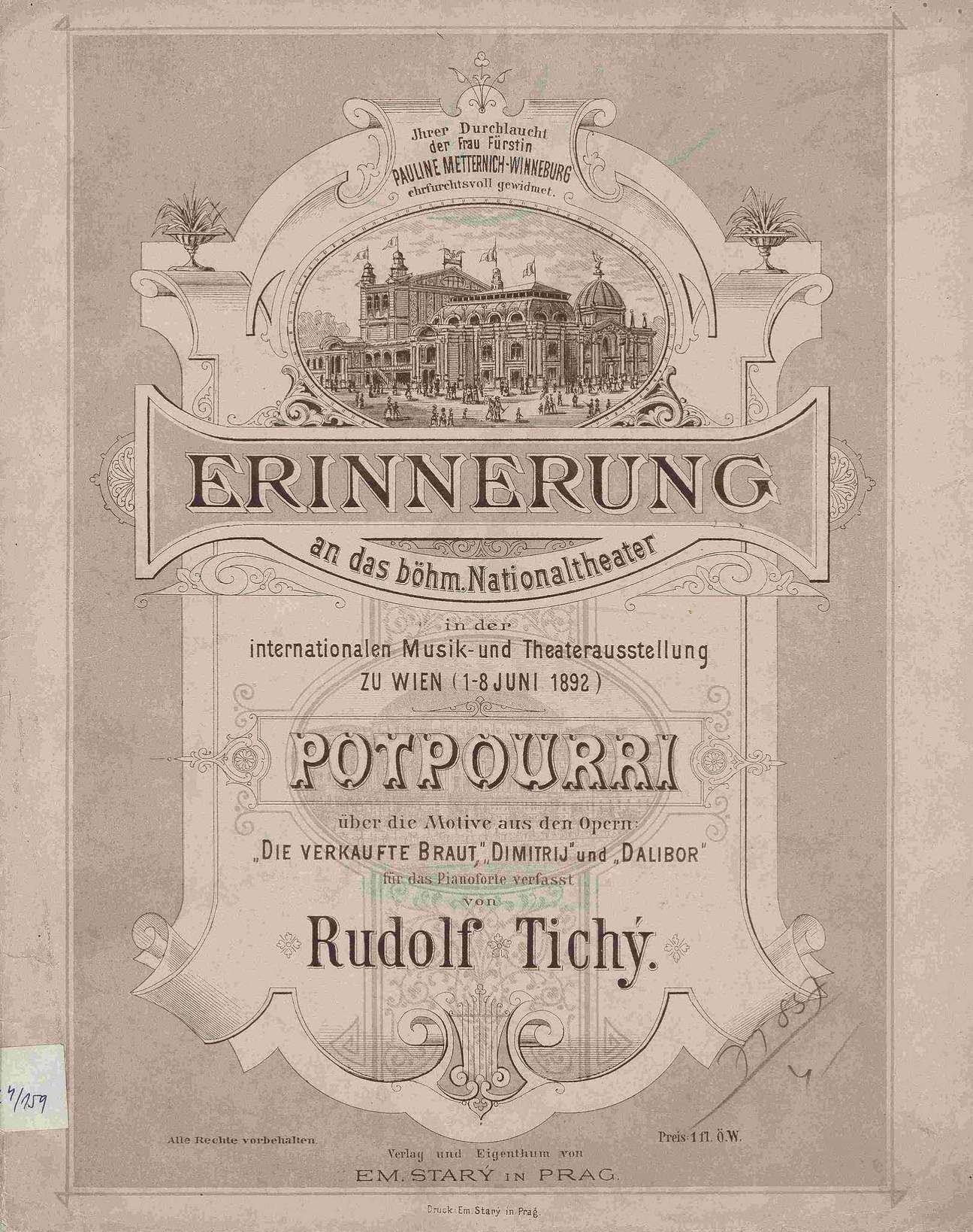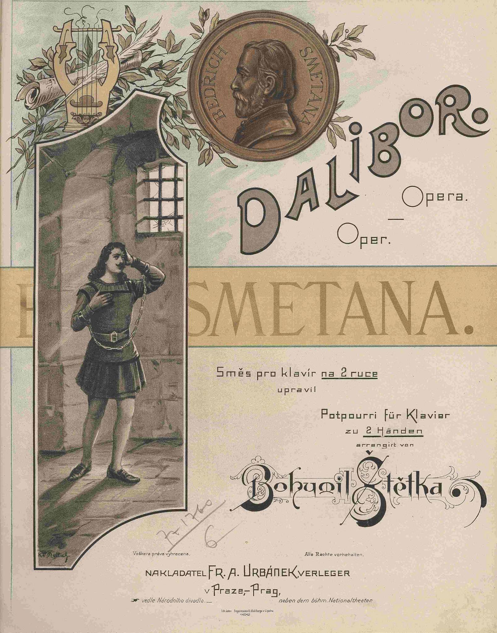 Uložení předmětů v depozitáři Uložení předmětů v depozitáři Uložení předmětů v depozitáři Uložení předmětů v depozitáři Expozice Muzea Bedřicha Smetany v Praze Expozice v Jabkenicích Expozice v Jabkenicích Expozice v Jabkenicích Expozice Muzea Bedřicha Smetany v Praze Sté provedení Prodané nevěsty, skupina šesti členů sboru z prvního až stého představení, velká kolorovaná fotografie s podpisy všech členů. 650 Dopis Franze Liszta Fr. Kistnerovi, (Lipsko) 9. 12. 1848. 769 Slavnost položení základního kamene Národního divadla 16. 5. 1868, kabinetní fotografie, vydal Zikmund Reach, Praha. 4221 Pachtovní knížka Františka Smetany z doby od 1. 4. 1814 do 31. 3. 1824 se záznamem o narození syna Bedřicha. 7988 Libreto Prodané nevěsty s rukopisnými poznámkami Františka Hynka, který režíroval tuto operu v letech 1881-1892. 8269 Bedřich Smetana: Bettina polka, autograf, 1859. S 217/1322 Divadelní kostým, Libuše, Národní divadlo, 1908. TP 329, TP 330 Deníkový zápis Bedřicha Smetany o premiéře opery Dalibor z května 1868. S 217/1108 Čestný diplom Bedřichu Smetanovi od orchestrálního spolku Filharmonia z roku 1874. S 217/79 Dopis Bedřicha Smetany pěvkyni Betty Fibichové 28. 2. 1879. S 217/231 Plakát Prodané nevěsty v Miláně, Itálie 1935. E 50 Ema Destinnová v roli Mařenky z Prodané nevěsty, kabinetní fotografie z ateliéru J. F. Langhanse, Praha. F 1592 Upomínka na 12. 8. 1881, kabinetní fotografie a náklad H. Eckerta, c. k. dvorního fotografa v Praze. Dvě třetiny celého výtěžku věnují se na znovuvybudování velkého národního divadla. F 4028 Bronzová busta B. Smetany z roku 1881, vytvořená podle živého modelu, autor Josef Strachovský (1850-1913), k 100. provedení Prodané nevěsty 5. 5. 1882 objednala u autora Umělecká beseda. M 891 J. Paukner: Zalkej, Čechie. Elegie nad troskami Národního divadla.  Praha s.a. [1881], F. A. Urbánek. H 1047 B. Smetana: Má vlast č. 2. Vltava. Praha s.a. [1879], F. A. Urbánek. Skladatelova úprava pro klavír na 4 ruce. H 1326/2 B. Smetana - B. Štětka. Dalibor. Směs pro klavír na 2 ruce. Praha s.a., F. A. Urbánek. H 398 B. Smetana - J. Malát. Prodaná nevěsta. Komická opera. Směs. Praha s.a., F. A. Urbánek. H 447 R. Tichý. Erinnerung an das böhm. Nationaltheater. Potpourri Die verkaufte Braut, Dimitrij, Dalibor. Prag s.a. [1892], E. Starý. H 809/a Smetanova kresba inspirovaná patrně výletem do Alp v roce 1870. S 217/1481 Prodaná nevěsta – Mařenka, návrh na panel hudebního pavilonu výstavy na Expo 58 v Bruselu, 1957, autor Jan Bauch (1898 -1995), tempera na papíře. M 831 Bedřich Smetana, bronzový třetinový model pomníku v Litomyšli, 1923- 1924, autor Jan Štursa (1880-1925). M 890 M_968.jpg;Opona jabkenického ochotnického spolku Hálek „Příchod praotce Čecha na Říp“ malovaná Betty Smetanovou, 1877 podle originálu Antonína Lhoty (z cyklu obrazů z dějin českých vydaném ve Vídni). Osm plastik návrhu na pomník B. Smetany, autor Otto Gutfreund (1889-1927), 1926, 1. oceněné místo v soutěži, nerealizováno. M 914 Má vlast, ručně tkaná tapiserie kombinovaná s výšivkou, námět Rahel Anliker (Bern – Švýcarsko), realizace Eva a Josef Pospíšilovi, 1987-88. M 920 Oboustranná medaile vydaná ku příležitosti vystoupení souboru Národního divadla na jevišti Mezinárodní a divadelní výstavy ve Vídni 1892, autor Bohumil Vlček, raženo v závodě Ivana Pichla. TP 14 Cedule Prodané nevěsty v Simbirsku na Volze, Rusko 1916. O 106 Programová brožura Prodané nevěsty v Bulawayo, Zimbabwe 1956. O 20 Bedřich Smetana: Koncertní etuda Na břehu mořském, autograf, 1861.  S 217/1367 Kostýmní návrhy Karla Štapfera pro inscenaci Smetanova Dalibora v Národním divadle, [1900]. Sc 0418 Bedřich Smetana: Libuše. Autograf partitury 1. dějství, 1871. S 217/1205/1 Libuše. Národní divadlo 1897-1902. Scéna s účinkujícími v kostýmech, které navrhl Mikoláš Aleš. Hlavní role: Růžena Maturová. Foto J. Mulač, Praha. i.č. 4341 Jedna z posledních fotografií Bedřicha Smetany z ateliéru Jana Mulače v Praze, [1881]. S 217/1753 Titulní strana prvního vydání Smetanova klavírního výtahu opery Hubička, 1880. H 25/a Jan Malát: Potpourri z Prodané nevěsty, [1892]. Jedna z četných dobových popularizačních úprav Smetanovy opery. H 447 Stříbrný pohár, dar divadelního družstva Smetanovi  při oslavách 50. výročí jeho prvního koncertního vystoupení. S 217/1804 Maketa scénického návrhu k Prodané nevěstě pro Národní divadlo, autor Jan Zrzavý (1890-1977),1946 Miniaturní maketa scény Hubičky, autor Edmund Chvalovský, akvarel, 1917. Sc 733 Nejstarší dochovaný návrh scény k Prodané nevěstě pro Národní divadlo, autor Jan Václav Kautský, 1881. Sc 82 Scénický návrh pro 1. jednání Tajemství, autor Karel Svolinský, 1948. Sc 875 Cedule ND, 30. 5. 1927 - 1000.představení Smetanovy Prodané nevěsty. T 129 Josef Schwarz (1845-1939) uprostřed svých vnuků. Zleva: Žofie Bernasová (*1895), Zdeněk Schwarz (*1901), Iša Č. (?), Jan Schwarz (*1903), Bedřich Schwarz (*1902), Edita Bernasová (*1897). F 3696/1 Přejímání pozůstalosti B. Smetany 29. 1. 1932 členy kuratoria Společnosti B. Smetany. Zleva A. Waisar, F. Táborský, Z. Nejedlý, Z. Schwarz, Z. Wirth, Fr. Daneš, J. Bartoš a J. Pečírka. F Bedřich Smetana, [1924], barevná litografie, autor Karel Votlučka (1896 -1963). M 321 Jabkenice z doby Smetanovy, olejomalba, nedatováno (50. léta 20.stol. ), autor Zdeněk Schwarz (vnuk Bedřicha Smetany, 1875-1960). M 773 Návrh živého obrazu pro třetí jednání Libuše (Libušina věštba), 1. obraz s názvem Břetislav a Jitka, autor František Kolár, 1881. Sc 531 Jasanový vějíř, zač. 20. stol., Čechy, s malovanými postavami Jeníka a Mařenky „Věrné naše milování“ podle Adolfa 