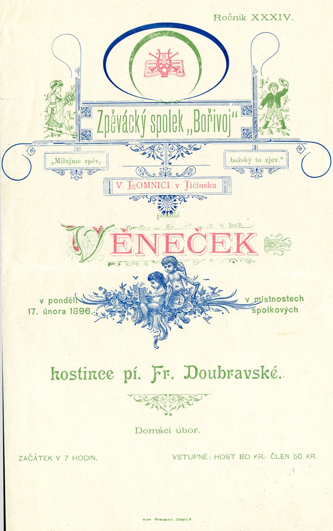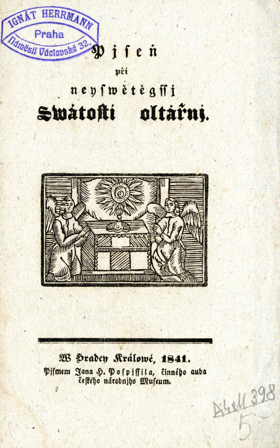 Fond Ilustrace. Studie Adolfa Zábranského k ilustraci pro knihu Ivana Olbrachta Ze starých letopisů, SNDK, 1952. Fond Ilustrace. Ilustrace Věnceslava Černého ke knize Karla Maye Satan a Jidáš, Alois Hynek, 1906. Fond Hmotné památky. Krabice od doutníků se sadami písem Josefa Váchala, 1. polovina 20. století. Fond Nakladatelské archivy a osobní fondy. Josef Váchal: Historické popsání Vesuvu aneb Památník Volného Sdružení Neodvislých výtvarníků slovem a obrazem, Praha - Vršovice, 1919. Fond Hmotné památky. Sázítko pro skládání liter pro knihtisk, 2. polovina 20. století. Fond Ilustrace. Ilustrace Jaroslava Hořánka k pohádce Marie Žďárské O králi Bum Bum Bum, Albatros, 1972. Fond Plakáty. Prvorepublikový nakladatelský plakát Václava Petra s reklamou na dílo Aloise Jiráska s použitím ilustrace Adolfa Kašpara. Fond Modlitby. Titulní strana modlitby k Panně Marii Bolestné, vydaná a vytištěná Karlem Procházkou v Těšíně, 1866. Fond Štočky. Knihtiskový štoček s reprodukcí ilustrace Františka Vrobela ke knize Josefa Jahody Kronika vejměníka Šlintery, František Lukavský, 1925. Fond Plakáty. Nakladatelský plakát pro J. R. Vilímka od Zdeňka Buriana s reklamou na Vilímkův humoristický kalendář, 1. polovina 20. století. Fond Pohlednice. Pohlednice - kaple na Radhošti 1130 m n. m. Orbis, Svět v obrazech. B.m.r. [kol. 1949]. Fond Pohlednice. Pohlednice - obrázek pastýřky, verše začínající slovy Fond Typografika. Typografika - autorská zkouška podoby verzálek a mínusek písma Codex typografa Oldřicha Menharta, 1929. Fond Předsádkové papíry. Předsádkový papír - papír ve zlaté barvě s plastickým květinovým vzorem, 19./20. století. Pozůstalost sběratele Rudolfa Hlavy. Fond Svaté obrázky. Svatý obrázek - Pražské Jezulátko. Vypichovaná papírová krajka, na ní obrázek sestavený z vystřihovánky z leptu a textilu, kolorováno, 2. polovina 19. století. Fond Předsádkové papíry. Předsádkový papír - katunový papír s rostlinným ornamentem. Zelený a vínový potisk, černý podklad, 19./20. století. Pozůstalost sběratele Rudolfa Hlavy. Fond Kramářské písně. Kramářský tisk - Beschreibung wie und auf welche Art das wunderbar heilende Wasser zu Neu Ketzeldorf im Königgrätzer Kreise, im Jahre 1848 gefunden worden ist. Leitomischl, Jos. Fond Svaté obrázky. Svatý obrázek - sv. Jana de Chantal a sv. František Saleský, kolorovaný mědiryt - tečkovací manýra, 1. polovina 19. století. Pozůstalost Bedřicha Přibila. Fond Štočky. Dřevořezový štoček Zdeňka Mézla z roku 1971 k ilustraci ke knize básníka Rutebeufa Život bez rukávů, Mladá fronta, 1991. Fond Štočky. Linorytový štoček Josefa Čapka pro obálku knihy Artura Machena Tři podvodníci, Václav Petr, 1927. Fond Varia. Reklamní leták - Zpěvácký spolek Fond Kramářské písně. Kramářská píseň při nejsvětější svátosti oltářní, vytištěná J. H. Pospíšilem v Hradci Králové, 1841. Fond Rukopisné zpěvníky. Obálka opisu zpěvníku Jana Nováka z Košťálova u Semil z let 1848-1849. Pozůstalost sběratele Rudolfa Hlavy. Fond Kramářské písně. Kratochvilná kramářská píseň všem těm, jenž rádi zakoušejí kořaleční medicíny, vytištěná Antonínem Rennem v Praze, 1859. Fond Rukopisné zpěvníky. Obálka zpěvníku z pozůstalosti sběratele Rudolfa Hlavy, 1849. Zpěvník patřil údajně Václavu Hankovi. Fond Kuplet a šlágry. Jarka Valík: Z Nového Jičína. Pochodová píseň. B.m.n.t.r. [1918-1948]. Fond Nakladatelské archivy a osobní fondy. Udělení knihkupecké koncese v Praze Aloisi Srdcovi C. k. místodržitelstvím pro Království české, 6. června 1914. Fond Varia. Pozvánka - Dívčí zpěvácký spolek Fond Nakladatelské prospekty. Nakladatelský prospekt na knihu Kronika války Karla Sabiny pražského nakladatelství Mikuláš a Knapp, 1867. Provedl Dřevorytecký ústav Aloise Řeháčka. Fond Nakladatelské prospekty. Knižní katalog pražského nakladatelství F. Topič, 1926. Fond Kuplet a šlágry. Kuplety - Václav David: Roztrhaná chalupa. Velká politická satira bez pardonu na všechny politické strany. Brno, Jaroslav Stožický b.r. [asi 1931]. Fond Nakladatelské archivy a osobní fondy. Stvrzenka na vyplacení honoráře A. Jiráskovi za čtvrtý díl románové kroniky U nás (Zeměžluč), vycházel na pokračování v Šimáčkově časopisu Zvon, 1. 12. 1902 Fond Nakladatelské archivy a osobní fondy. Ukázka z nakladatelského deníku Aloise Srdce. Záznamy z let 1937 a 1938 dokládají náklady spojené s vydáním knihy Študáci a kantoři Jaroslava Žáka.  Fond Ilustrace. Ilustrace Artuše Scheinera ke knize E. T. A. Hoffmanna Louskáček a Myší král, 1924. Fond Špalíčky. Špalíček kramářských tisků v původní lidové vazbě, zahrnující exempláře od konce 18. století do 60. let 19. století. Fond Exlibris. Panna a její konstrukce. Exlibris Jaroslava Hořánka, barevná serigrafie, 1979. Fond Zbožné vzpomínky. Zbožná vzpomínka na pražského arcibiskupa Karla kardinála Kašpara (zemřel 1941). B.m.t.r. [1941]. Fond Exlibris. Portrét Aloise Rašína. Exlibris Jaroslava Chlebečka, linoryt, 1933. Fond Zbožné vzpomínky. Zbožná vzpomínka na rakouského korunního prince Rudolfa (zemřel 1889). Wien, J. Heindl b.r. [1889]. Fond Exlibris. Golden Gate Bridge. Exlibris Martina Manojlína, barevný dřevořez a kombinovaná technika, 2004. Fond Exlibris. Exlibris pro speciální oddíl knihovny. Vladimír Pařízek, dřevoryt, 1938. Fond Exlibris - skica. Přípravná skica pro exlibris prezidenta Václava Havla. Zdeněk Mézl, kresba tužkou, 1989-1990. Fond Exlibris. Neptunova kašna v Olomouci. Exlibris Karla Wellnera, zinkografie, 1922. Fond Exlibris. Tzv. Omen nomen exlibris - námět se shoduje se jménem majitele. Antonín Häusler, zinkografie, 1928. Fond 