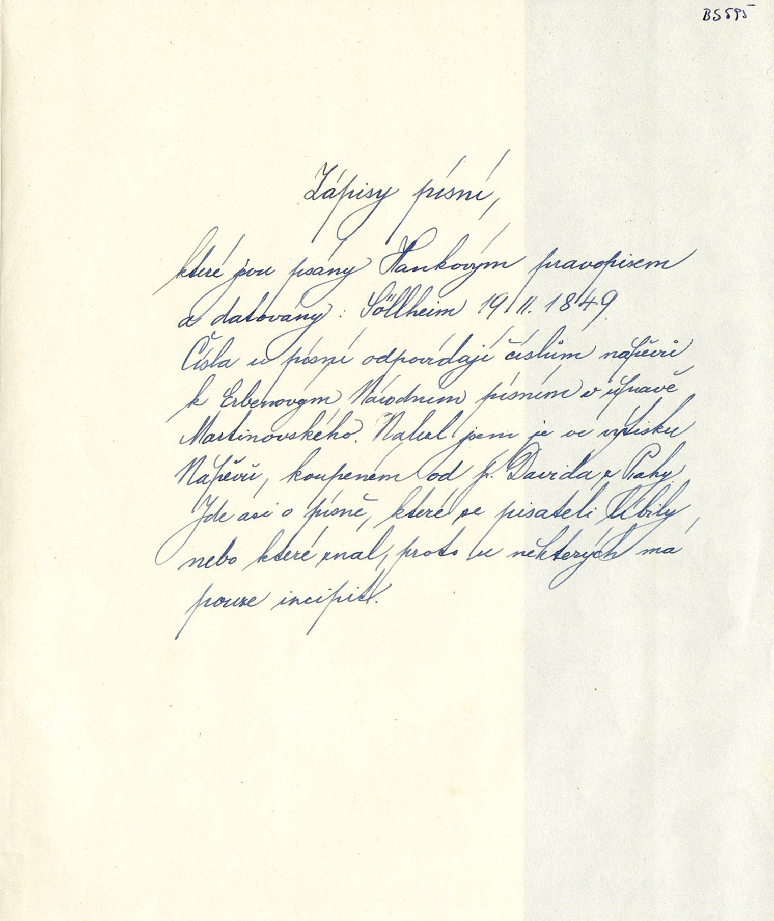 Jiný pohled na písňovou produkci představuje fond Rukopisné zpěvníky. Obsahuje rukopisy zaznamenávající světské a duchovní písně, které se těšily oblibě především v 19. a 20. století.