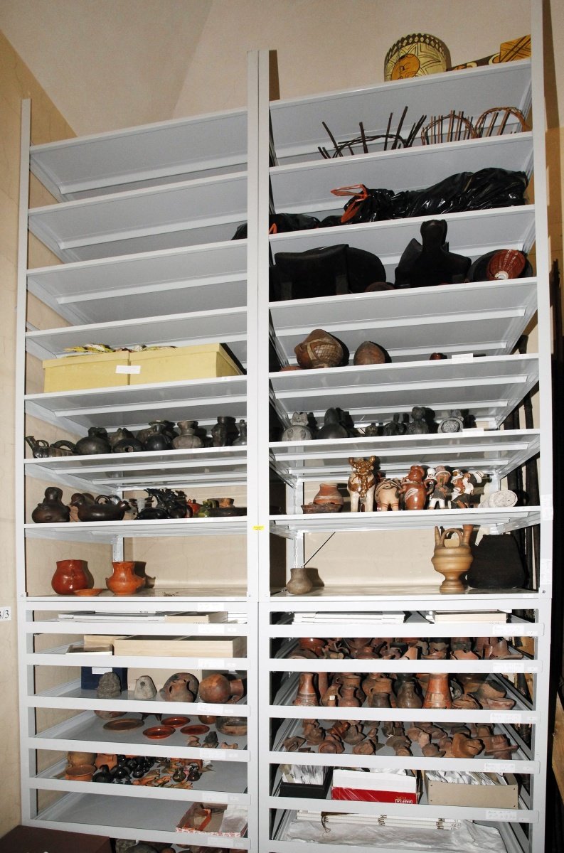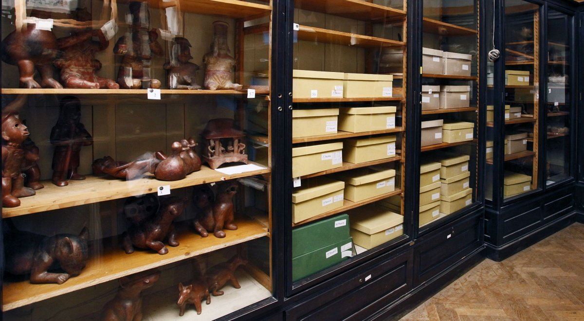 | Předměty | AfrikaSbírka zahrnuje soubor "tradičního" etnického umění (tj. umění 19. a zač. 20.stol.), z něhož je třeba zvláště zmínit řezby národů Bété, Dan, Ngere, Fon, Joruba, Zande, Mangbetu, Kuba, Songe a Čokwe. Dále jsou zde zastoupeny soubory kulturního inventáře národů Fulbe a Mandingo (nasbíráno 1969), Berti (nasbíráno 1965), Núbijců (nasbíráno 1962-63), Jorubů (nasbíráno v 60.letech 20.stol.) a Pygmejů (nasbíráno kolem 1935), národů Pare a Džaga (nasbíráno 1900-1910), Čvana a Sotho (nasbíráno v 70. a 80.letech 19.stol.).Z jednotlivých umělecko-řemeslných souborů je třeba zmínit kabylskou keramiku, ibské textilie a keramiku, kožené předměty ze Sahary a severní Nigérie a skleněnou bižuterii Zulů a Xosů.Zvláštní soubor představují ukázky moderního afrického umění od roku 1945 do současnosti. AmerikaAmerické sbírky indiánského původu čítají cca 20 000 ks, z toho nejpočetnější jsou jihoamerické a středoamerické soubory. Severoamerická sbírka obsahuje archeologický materiál (hl. kamenná industrie z povrchových sběrů) a kolekce etnické hmotné kultury shromážděné v rozpětí od konce 18. stol. až do 20. stol. Etnografické sbírky zahrnují arktickou oblast (Aleuty - sesbíráno v 2. pol. 19.stol., ostrov Nunivag - z přelomu 19. a 20. stol., Labrador - 30. léta 20. stol., Baffinova země - 70. léta 20. stol.), oblast Severozápadu (Tlingitové - 90. léta 18. stol., Kwakiutlové, Nutkové, Sališové - poč. 20. stol., Britská Kolumbie - poč. 20. stol.), oblast Kalifornie a Velké pánve (90. léta 18. stol., Hupové - 2. pol. 19. stol.), oblast Jihozápadu ( Hopi, Zuňi, Navaho - 30. léta 20. stol, Acoma poč. 20. stol.), oblast Velkých plání a prérií ( Teton Dakotové, Černonožci , Arapahové ad. - 19. stol., Santee Dakotové - pol. 19. stol.), oblast Východních lesů (19. stol.).Středoamerická sbírka obsahuje soubory starověké Mezoameriky ( Monte Albán, Teotihuacan, Veracruz, Aztékové, Mayové) a početnou sbírku keramiky kultury Čirikí z Panamy. Novověká kolekce zahrnuje etnografické soubory současných nativních národů Nahuů, Mayů, Mixtéků, Zapotéků, Huicholů ad. (textil, masky, keramika, hračky, obřadní předměty).Jihoamerická sbírka zahrnuje kolekce archeologického i etnografického charakteru. Archeologické sbírky dokumentují starověký Ekvádor, Kolumbii, Venezuelu a Peru (kultura Manabí, Nazca, Močika, Čimú, tíwanacká a incká kultura). Významný celek představuje sbírka koloniálního umění. Etnografické soubory vědecky cenné byly shromážděny především v tropické oblasti (jádrem je kolekce E. St. Vráze z konce 19. stol.), z oblasti Gran Chaca (sbírka A.V.Friče z poč. 20. stol.), z oblasti Chile a Bolívie (kolekce od etnik Aymara a Mapuche V.Šolce ze 70. a 80. let 20. stol.) a sbírka z oblasti Chile (kolekce od etnika Mapuche M.Stuchlíka ze 70. let 20. stol.).Austrálie a OceánieZáklad australských sbírek tvoří soubory získané ve 2.pol.19.stol., v každém případě před 1.světovou válkou. Jsou v nich etnografika z Queenslandu, Nového Jižního Walesu a Viktorie. Jediný větší soubor ze 60.let vznikl díky výzkumnému pobytu Mgr. Stanislava Novotného v Arnhemské zemi.Z melanéských sbírek je třeba připomenout předměty z Nové Guineje (zejména Vrázovy sběry z pohoří Hattam) a z dalších ostrovů - Nového Irska, Nové Kaledonie, Šalamounových ostrovů.V polynéské sbírce tvoří zajímavý celek kolekce získaná malířem Bohumírem Lindauerem mezi Maory na Novém Zélandu.