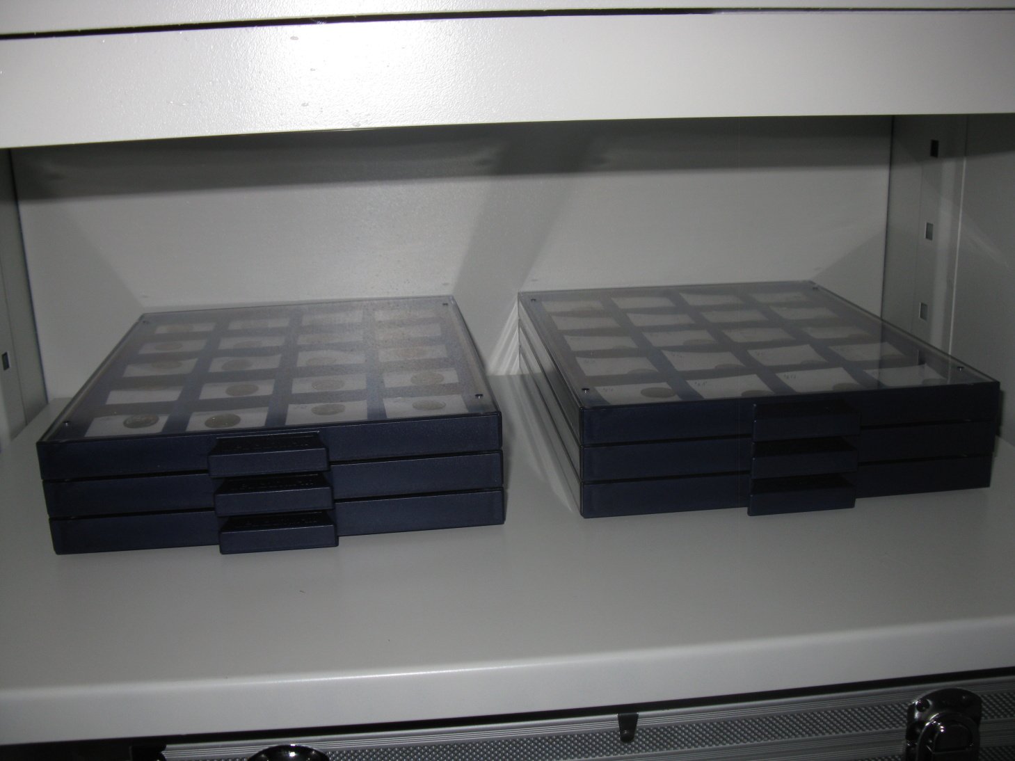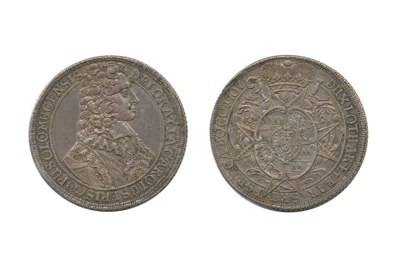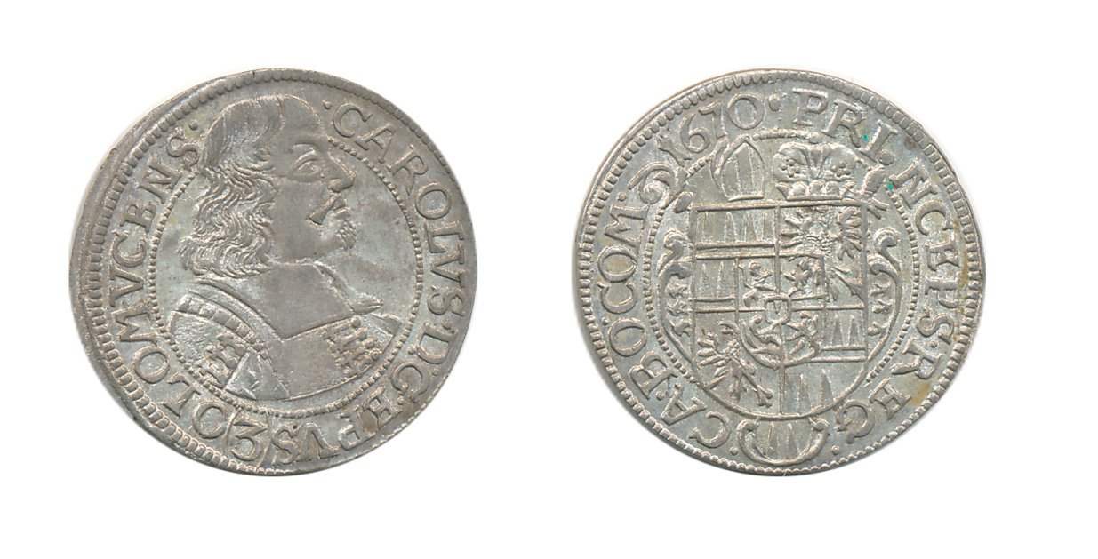 | Předměty | Numizmatická podsbírka je rozdělena do dvou částí. První jsou mince a papírová platidla, druhá jsou odznaky, medaile, plakety, vyznamenání a řády. Nejvýznamnější součástí numizmatické podsbírky je sbírka pražského sběratele Ladislava Iglauera, jejíž součástí jsou mince, papírová platidla, medaile a účelové známky z 11. až 20. století. Do Ostravského muzea byla předána po smrti sběratele v roce 1971. Další významnou součástí numizmatické podsbírky jsou nálezy mincí. Nález z Ostravy-Muglinova – mince z let 1623–1689, z hlediska zastoupených zemí je zde nejvíce slezských mincí, především slezské vládní mince Leopolda I. (grešle, mincovna Opolí). Významný je nález mincí z rohu Dlouhé a Velké ulice v centru Moravské Ostravy, které byly ukryty majitelem pravděpodobně z důvodu průchodu polských kozáků – lisovčíků – Ostravou v roce 1623. Uložení zmíněných minci tak spadá do období kolem kalády (státní mincovní úpadek vyhlášen císařským mandátem ze 14. prosince 1623). Z hlediska územního tvoří kmen nálezu slezské ražby (největším počtem participuje knížectví lehnicko-břežské). Druhá část podsbírky je rozčleněna podle námětu na odznacích, medailích apod. na hornické, německé odznaky ve tvaru různých předmětů, pamětní, upomínkové i záslužné, spolkové, svazové, sportovní, polské, se znaky měst, socialistické, s portréty členů habsburského rodu, s portréty osobností, s rakouským císařským znakem, střelecké, upomínkové na různé slavnosti a události, upomínkové na výstavy a oslavy 1. máje, vyznamenání, řády, 2. světová válka a nejpočetněji zastoupená skupina – 1. světová válka (rakousko-uherské odznaky, medaile a plakety z kovu, plastické hmoty i papíru).