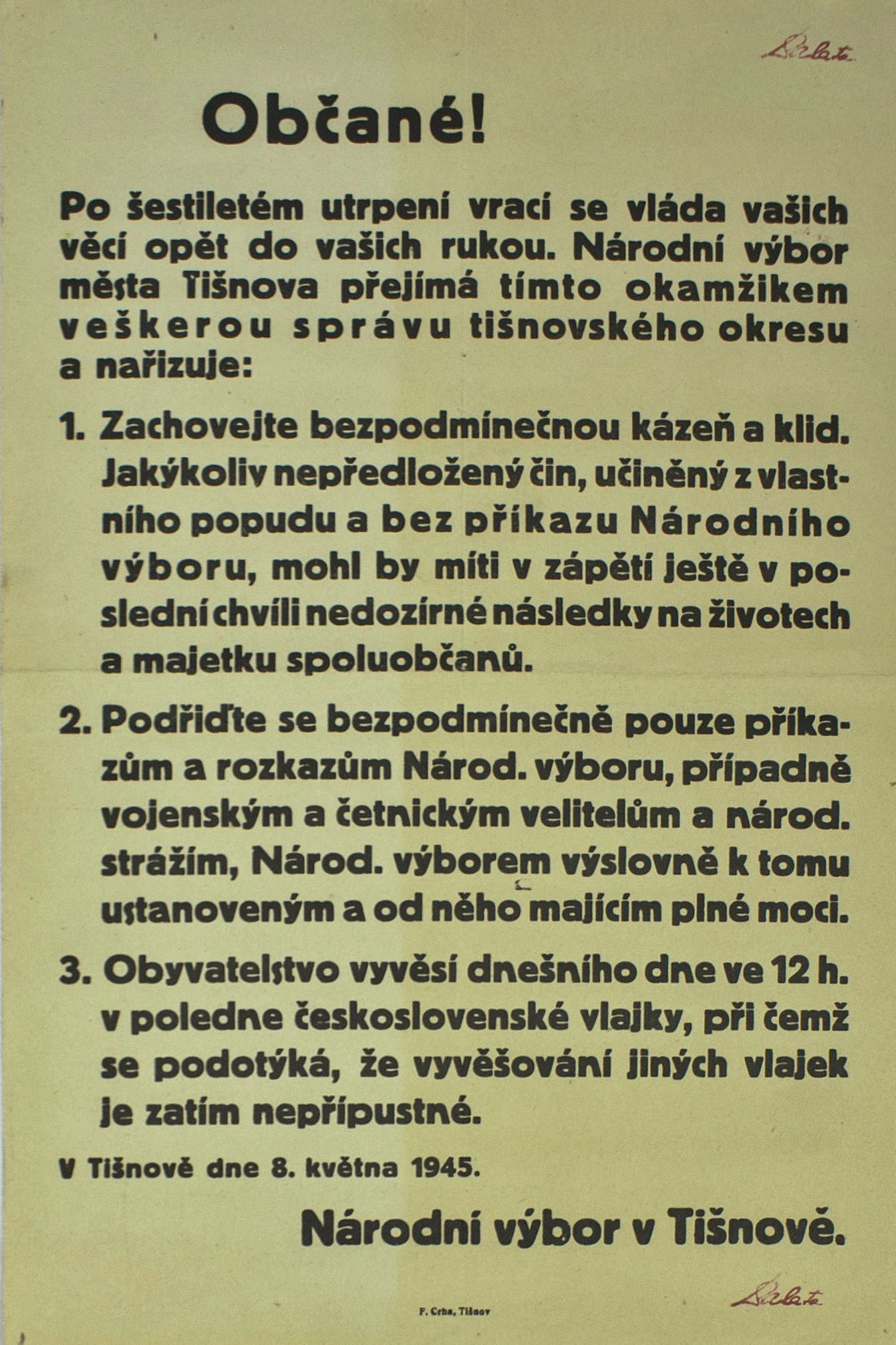 Vyhláška, Tišnov, 28. 4. 1945 cover cover cover cover cover cover cover cover cover cover cover cover cover cover cover cover cover cover cover cover cover cover cover cover cover cover cover cover Minometný náboj ráže 5 cm, Německo, 2. světová válka Ruční útočný granát německé výroby, 2. světová válka