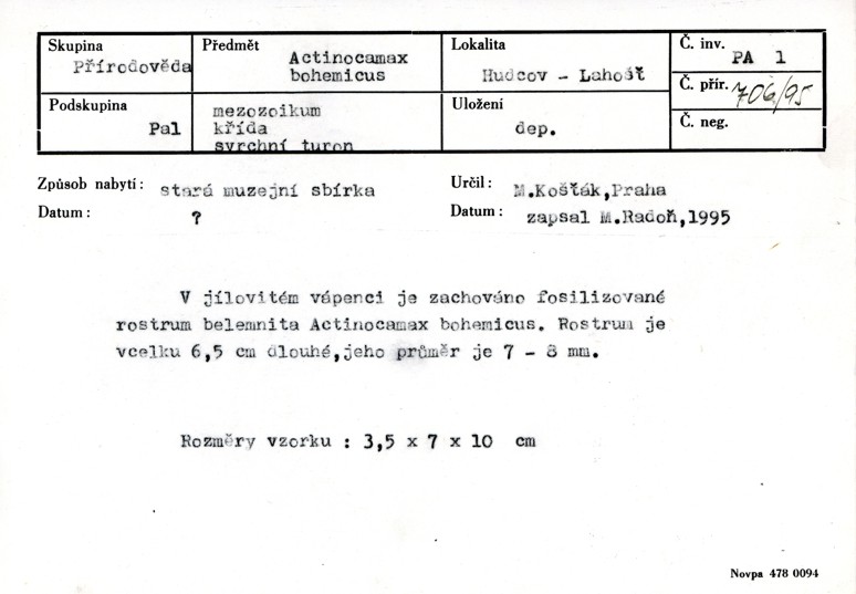 Odkaz na www stránky http://muzeum-teplice.cz Území České středohoří, severočeská hnědouhelná pánev, okolí Teplic. Období Z pohledu stratigrafie či historické geologie obsahuje sbírka paleontologický materiál mezozoika a terciéru severních Čech. Malá část sbírky pochází z původní soukromé sbírky sběratele a pozdějšího kustoda A. H. Fassla, tedy z konce 19. století. Větší část sbírky pochází z období první třetiny 20. století a naprosto převažující část sbírky tvoří paleontologický materiál terciérního útvaru ze současných vlastních sběrů správce oddělení, M. Radoně, prováděných v období let 1995-2001. Předměty Fauna křídového útvaru Teplicka, terciérní flóra severočeské hnědouhelné pánve, terciérní intravulkanická flóra Českého středohoří. Obor 4 - Paleontologická Datum zápisu do CES 24.10.2001 Počet předmětů 3051