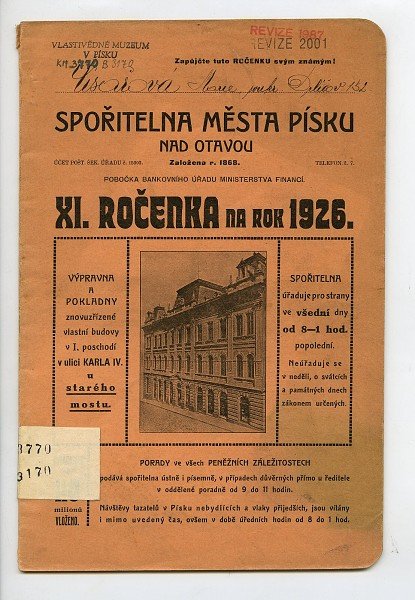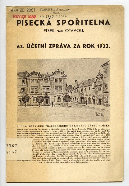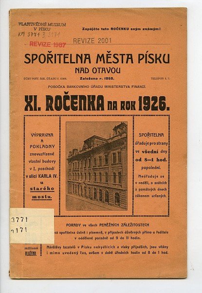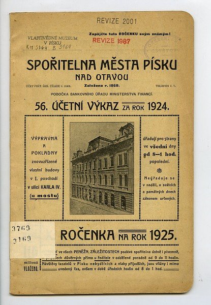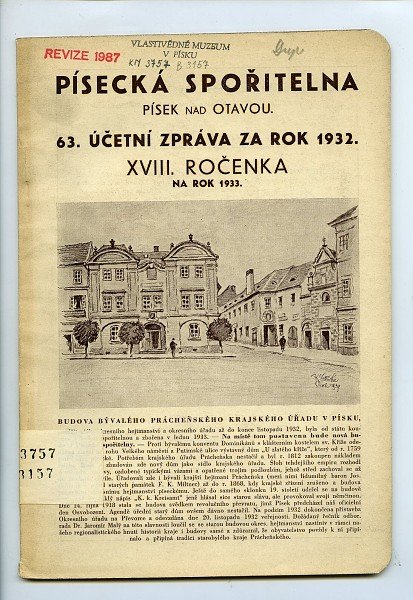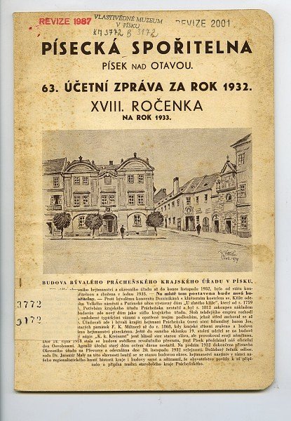 Částečné uložení fondu knihovny Jaromíra Malého ve studovně Prácheňského muzea v Písku Knihovna Jaromíra Malého - Spořitelna města Písku nad otavou. XIII. Ročenka na rok 1928 Knihovna Jaromíra Malého - Spořitelna města Písku nad Otavou XIII. Ročenka na rok 1928 duplikát Knihovna Jaromíra Malého - Písecká spořitelna Písek nad Otavou . 63. účetní zpráva za rok 1932. XVIII. Ročenka na rok 1933 duplikát Knihovna Jaromíra Malého - Písecká spořitelna Písek nad Otavou. 63. účetní zpráva za rok 1932. XIII. Ročenka na rok 1933. Knihovna Jaromíra Malého - Spořitelna města Písku nad Otavou. XI ročenka na rok 1926. Knihovna Jaromíra Malého - Spořitelna města Písku nad Otavou. XI. Ročenka na rok 1926. Knihovna Jaromíra Malého - Písecká spořitelna Písek nad Otavou. 63. účetní zpráva za rok 1932. Knihovna Jaromíra Malého - Písecká spořitelna Písek nad Otavou. 66. účetní zpráva za rok 1935 Knihovna Jaromíra Malého - Písecká spořitelna Písek nad Otavou. 66. účetní zpráva za rok 1935 Knihovna Jaromíra Malého - Spořitelna v Písku nad Otavou 67. účetní zpráva za rok 1936 XXX.  Ročenka na rok 1937 Knihovna Jaromíra Malého - Spořitelna v Písku nad Otavou 68. účetní zpráva za rok 1937 Knihovna Jaromíra Malého - Spořitelna v Písku nad Otavou 68. účetní zpráva za rok 1937 Knihovna Jaromíra Malého - VI. Ročenka spořitelny města Písku na rok 1921 Uložení Knihovny Jaromíra Malého Knihovna Jaromíra Malého - Zlaté klasy Knihovna Jaromíra Malého - Písecká spořitelna Písek Nad Otavou. 66. účetní zpráva za rok 1935 XXI. Ročenka na rok 1936. duplikát Uložení Knihovny Jaromíra Malého Knihovna Jaromíra Malého - Adolf Heyduk Cymbál a husle Knihovna Jaromíra Malého - Dřevorubec Uložení Knihovny Jaromíra Malého Knihovna Jaromíra Malého - Spořitelna v Písku nad Otavou 67. účetní zpráva za rok 1936 XXII. Ročenka na rok 1937 duplikát Knihovna Jaromíra Malého - Spořitelna v Písku nad Otavou 67. účetní zpráva za rok 1936 XXII. Ročenka na rok 1937 duplikát Knihovna Jaromíra Malého - LIX. účetní zpráva spořitelny města Písku nad Otavou. multiplikáty Knihovna Jaromíra Malého - Adolf Heyduk, Cymbál a husle Knihovna Jaromíra Malého - Spořitelna města Písku nad Otavou 1923 duplikát Knihovna Jaromíra Malého - Spořitelna města Písku nad Otavou 1923. duplikát Knihovna Jaromíra Malého - Dary a věnování k dobročinným účelů z výtěžku spořitelny z roku 1932 Knihovna Jaromíra Malého - Jan Matzner, Královské město Písek Knihovna Jaromíra Malého - Adolf Heyduk, Pod Vítkovým kamenem Depozitář Knihovny Jaromíra Malého v Prácheňském muzeu v Písku Depozitář Knihovny Jaromíra Malého v Prácheňském muzeu v Písku Knihovna Jaromíra Malého - Ex libris Jaromír Malý Knihovna Jaromíra Malého - Spořitelna města Písku nad Otavou 1924. duplikát Knihovna Jaromíra Malého - Spořitelna města Písku nad Otavou 1927. Knihovna Jaromíra Malého - Osobní stav. Správa spořitelny dle nových stanov působící od 18. května 1925 Knihovna Jaromíra Malého - Osobní stav. Správa spořitelny Knihovna Jaromíra Malého - Almanach sněmu královské Českého 1895-1901 Knihovna Jaromíra Malého - Básně Adolfa Heyduka Cymbál a husle Knihovna Jaromíra Malého - Písecká spořitelna Písek nad Otavou. 63. účetní zpráva za rok 1932. Knihovna Jaromíra Malého -  Výroční zprávy písecké spořitelny Knihovna Jaromíra Malého -  Diem Kupferstich Sammlung Lanna zu Prag I Knihovna Jaromíra Malého - Duchownj budiček Knihovna Jaromíra Malého - Písecká spořitelna Písek nad Otavou. 63. účetní zpráva za rok 1932. Knihovna Jaromíra Malého - Ex libris Jaromír Malý Knihovna Jaromíra Malého - Karel Oliva, Čítanka pro obchodní školy Knihovna Jaromíra Malého - Otavan 1932-1936 Knihovna Jaromíra Malého - Otavan Knihovna Jaromíra Malého - Spořitelna města Písku nad Otavou. 56. účetní výkaz za rok 1924. Knihovna Jaromíra Malého - Spisy Adolfa Heyduka,  Bohatýři, Ptačí motivy Knihovna Jaromíra Malého - Zlaté klasy Knihovna Jaromíra Malého - O Svatopluku Čechovi Částečné uložení fondu knihovny Jaromíra Malého ve studovně Prácheňského muzea v Písku Knihovna Jaromíra Malého - Spořitelna města Písku nad otavou. 56. účetní výkaz za rok 1924.