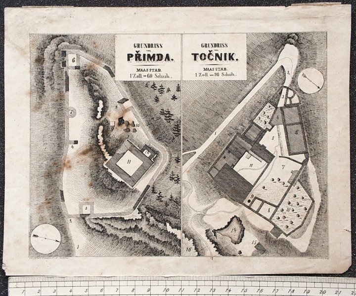 G 153 Anton Schönberger, Kompozice vedut osmi míst černínského panství, kol. 1800 (před 1816), kvaš, s.70,1 cm, v.48,7 cm. Patrně vznik před 1816, kdy Vojtěchem Černínem vymřela tato větev rodu. G 251 Matthäus Merian st., Polen, Frankfurt n. Mohanem, kol. 1650, mědiryt/lept, s.36,5 cm, v.31,2 cm. Ilustrace z Merianovy Topographie. G 300 Fr. Naumann, Ansicht von Alt-Rolau, und Carlsbad in der ferne, Drážďany, kol. pol. 19. stol., kolorovaný lept, s.20,5 cm, v.14,3 cm. G 391 Raspischen Buchhandlung, Nürnberg, N°. 4. Plan der Bataille bey Reichenberg den 21. Aprill A° 1757., Norimberk, 2. pol. 18. stol., kolorovaný mědiryt, s.39 cm, v.25,1 cm. G 559 Mansfeld, REVERENDISSIMUS AC AMPLISSIMUS DOMINUS DOMINUS AUGUSTINUS, Vídeň, kol. pol. 19. stol., litografie, s.24,5 cm, v.33 cm. Oválný portrét Augustina, opata kláštera v Rajhradě. G 799 Peter Bohmann, CARL JOHANN Kronprinz von Schweden, Praha, kol. 1815, mědiryt, s.18,6 cm, v.22,9 cm. uložení podsbírky Výtvarného umění uložení podsbírky Výtvarného umění G 111 anonym, Marienbad im Jahre 1814, 1. pol. 19. stol. kolorovaný mědiryt / lept, s.20 cm, v.14 cm. G 125 Antonín Beneš, Dokumentační kresba portálu domu čp. 31 v Plzni, Plzeň, 1898, kolorovaná perokresba, s.39,8 cm, v.55,3 cm. Dokumentační kresba v měřítku cca 1:10. Ve spodní části obr. měřítko. G 137 František Křepelka, Das alte Pilsen Anno 1653, Plzeň, 1805, kolorovaná perokresba, s.41,9 cm, v.32,5 cm. G 138 Matthäus Merian st., Pilsen, Frankfurt n. Mohanem, 1650, lept, s.33,3 cm, v.20,1 cmIlustrace z díla M. Meriana, Topographia Bohemiae, Moraviae et Silesiae, 2. díl, 1. vydání, Frankfurt 1650. G 182 Maxmilian Seeblummer, Votivní obraz svatého Václava s vedutou Plzně, Plzeň 1672, olej na plátně, s.142 cm, v.205 cm. G 189 Karel Liebscher, Hrady a zámky. Kaceřov (Karton), kol. 1900, černobílý akvarel, s.28,3 cm, v.20,8 cm. Originál ilustrace k Sedláčkovým Hradům (XIII,  mezi s. 80 a 81). G 225 Carlo Cappi, Matthäus Merian st., Grúndtriß der Statt Kolin, vnd wie solche von der Kays: // Armada mit gwalt erobert worden […], Frankfurt n. Moh., kol. 1650, mědiryt/lept, s.38,4 cm, v.29,8 cm G 228 Matthäus Merian st., Grúndtriß der Statt Leütmaritz, welche von den Schwedischen geplündert vnd Verlassen […], Frankfurt n. Moh., kol. 1650, mědiryt/lept, s.37,3 cm, v.28,5 cm. G 266 S. Kleiner, I. A. Corvinus, Prospectus CANCELLARIAE BOHEMICAE in platea Wiplingianan, 1. pol. 18. stol., mědiryt, s.40,2 cm, v.29,2 cm. G 344 F. A. Heber, GRUNDRISS von PŘIMDA. MAASSTAB. 1 Zoll.=60 Schuh. // GRUNDRISS von TOČNIK. MAASSTAB. 1 Zoll=90 Schuh., Praha, 1845, litografická rytina, s.22,1 cm, v.17,2 cm G 370 tisk Rau & Sohn in Dresden, vydavatel J. W. Pohlig in Teplitz, SCHÖNHOF, Drážďany – Teplice, kol. pol. 19. stol., barevná litografie, s.35,7 cm, v.27,3 cm. Veduta zámku v Krásném Dvoře. G 374 anonym, Trosky im Bunzlauer Kreis // Troský // w Boleslawském kragi, Praha 1820, mědiryt, s.24,1 cm, v.18,7 cm. Dvojlist z časopisu Hyllos, Nro. 13. Den 23. September 1820. G 398 anonym, Die Kettenbrücke über die Eger bei Saaz in Böhmen, po 1830, mědiryt, s.23,7 cm, v.19,8 cm. Ilustrace z německy tištěného časopisu. G 427 F. Roscher, František Šír, VI. Barikáda u technického ústawu, Praha, 1848, kolorovaná litografie, s.32,6 cm, v.25,4 cm. Kombinace křídové a pérové litografie, kolorováno akvarelem. G 445 F. Roscher, František Šír, Bez olowa a bez prahu Nahnala šosakům strachu, Praha, 1848, kolorovaná litografie, s.31,5 cm, v.24,6 cm. Karikatura tzv. „sedmašedesátníků“ z r. 1848. G 469 anonym, MNATA, VI. Herzog in Böhmen. // MNÁTA, wéwoda VI. Český. Praha 1820, mědiryt, s.18,8 cm, v.24 cm. Fiktivní portrét na dvoulistu z časopisu G 591 Prochaska, I. A. Lang, J. IGN. PESSINA v. CZECHOROD M. D. Professor und Director am k. k. Thierarzeney_Institute zu Wien. +24 Febr. 1808, 1. pol. 19. stol., mezzotinta, s.28 cm, v.38 cm. G 684 Begas, G. & B. Metzeroth, Meyers Bibliographisches Institut, THORWALDSEN (Zeitgenossen, I. Jahrg., No 18), Hildburghausen, 1829–1830, mědiryt, s.20 cm, v.29,2 cm. Bartel Thorvaldsen (1770-1844). G 856 anonym, Alegorické vyobrazení českých panovníků od Přemysla Oráče po Ferdinanda V., Praha (?), 1848, litografie, s.62,5 cm, v.44,7 cm. G 890 Martin Prusik, Monasterium Plasense Ordinis Cisterciensis in Regno Boiemiae, Čechy, kol. 1800, akvarel, s.26,2 cm, v.17,8 cm. Veduta kláštera v Plasech z vysokého nadhledu. uložení podsbírky Výtvarného umění