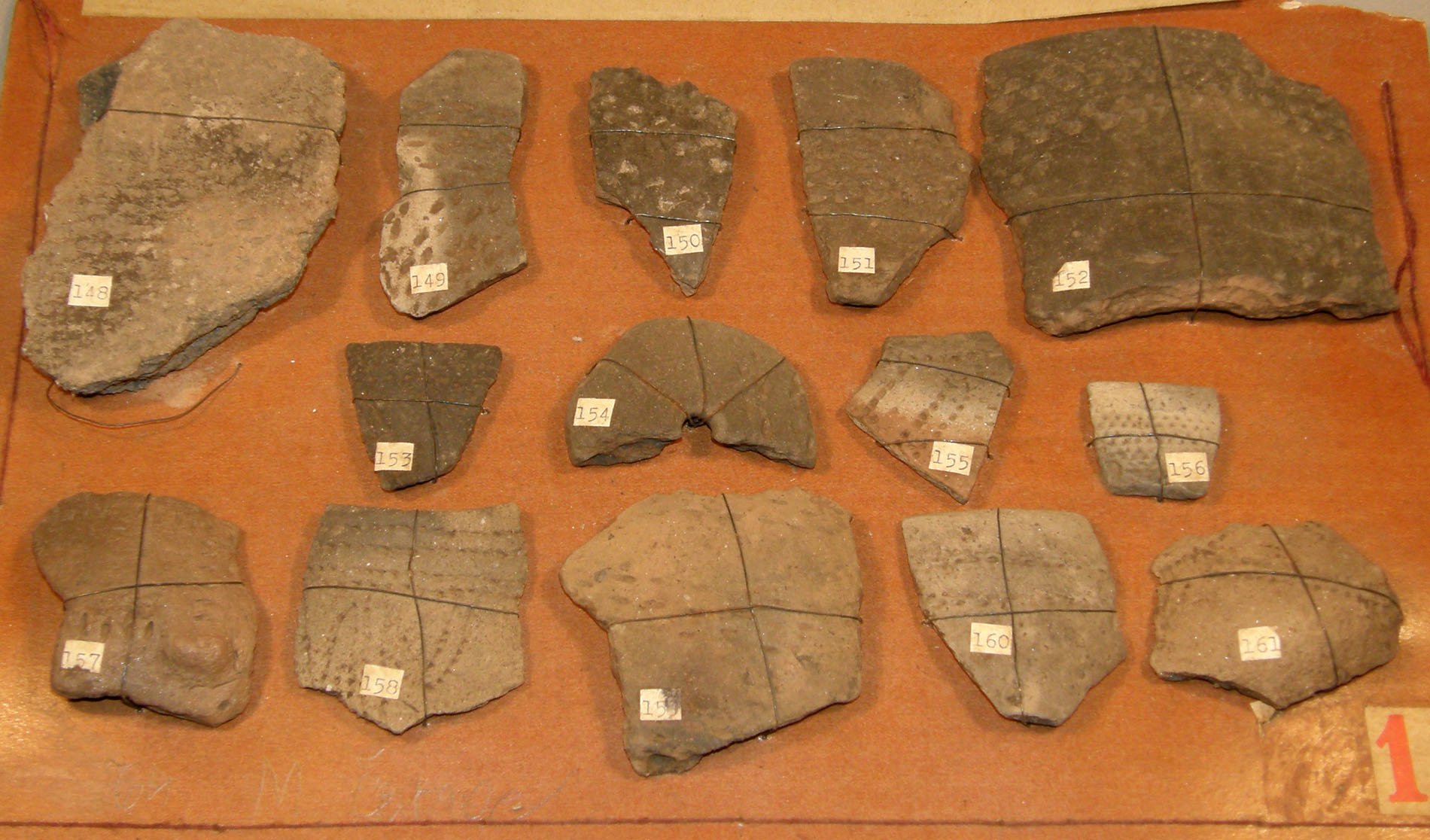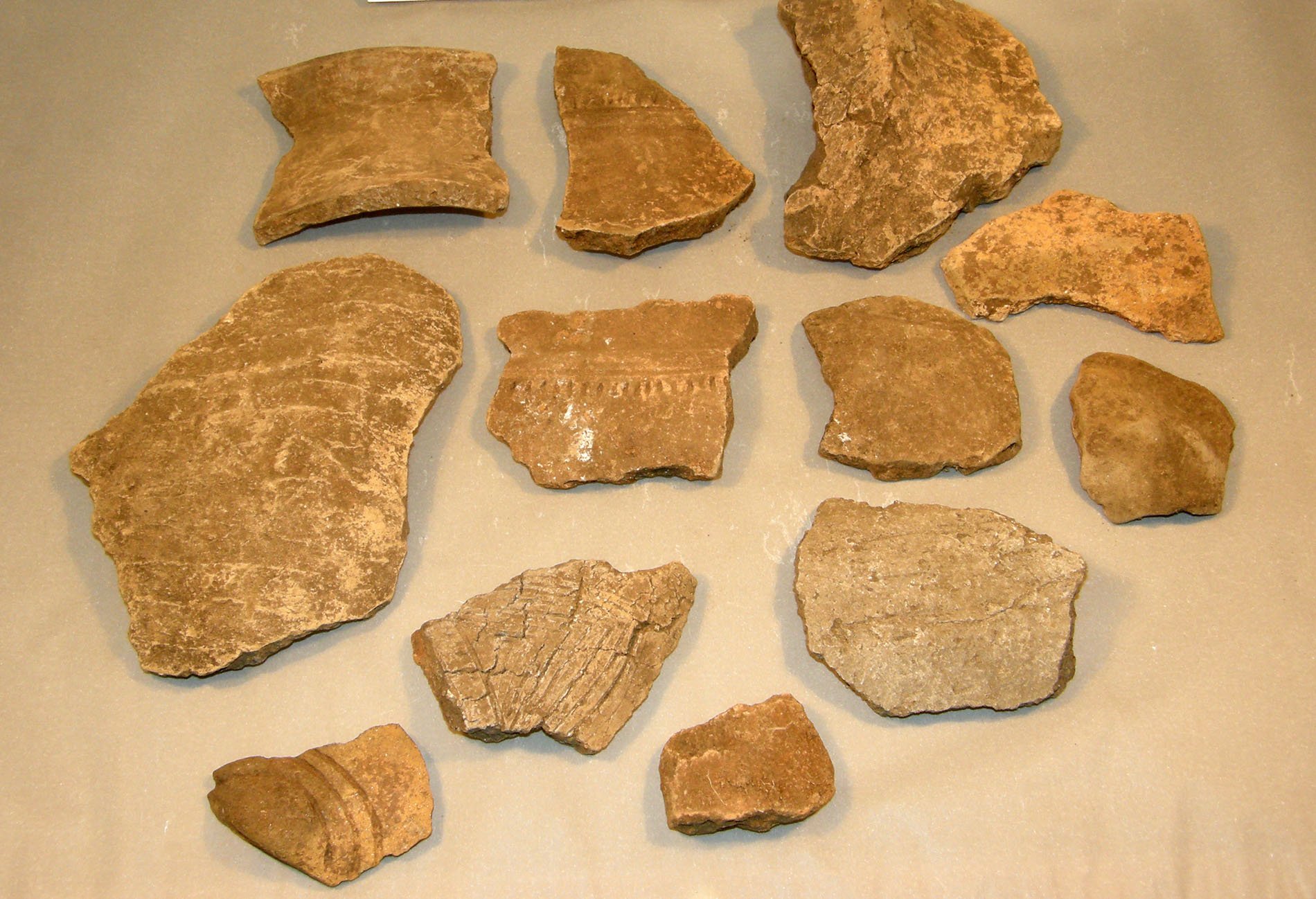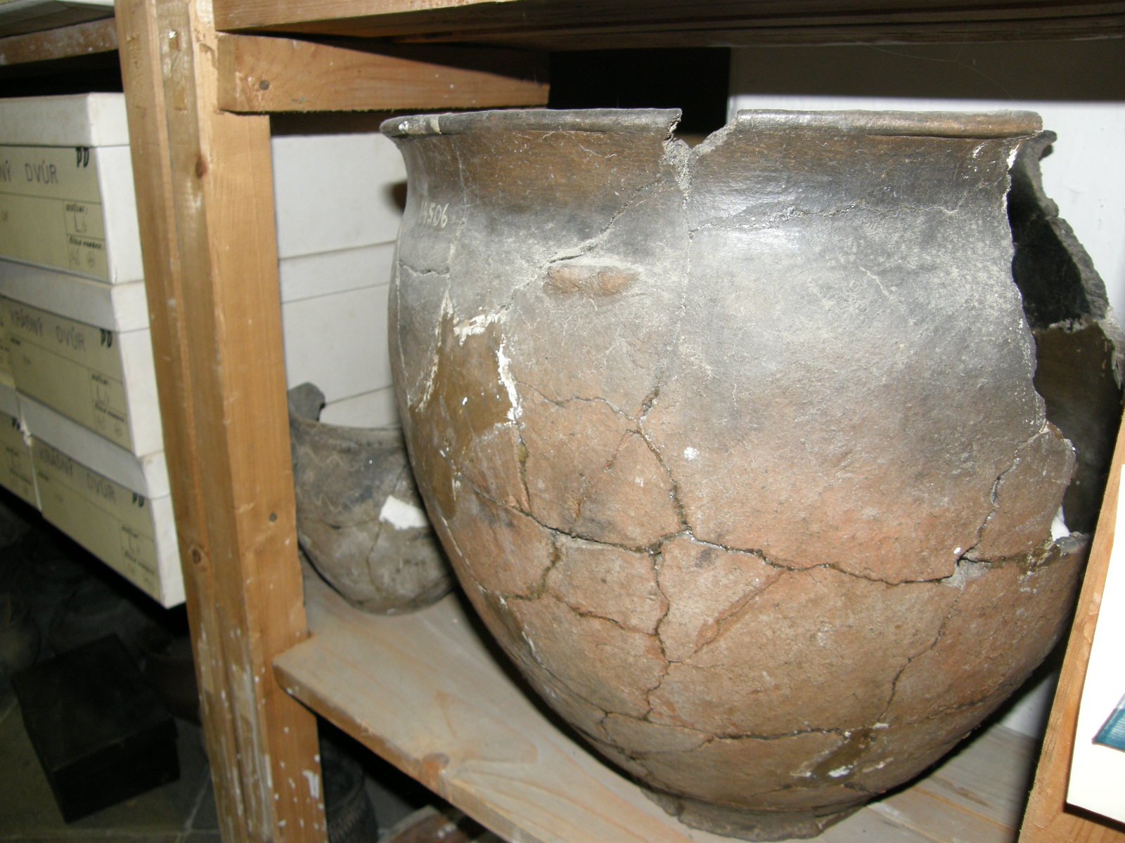 | Předměty | Sbírka je tvořena různorodým archeologickým materiálem většinou fragmentárního charakteru, ale i jednotlivými ojedinělými nálezy z různých materiálů. Většinou jde o zlomky keramiky a keramiku, kosti zvířecí, antropologický materiál, mazanici a technickou keramiku (tyglík, dyzna), přesleny, závaží, štípaná industrie, broušená industrie, vývrtky, brousky, opracované kameny, drtidla a mlýny, měděné předměty, bronzové předměty (nástroje, zbraně, šperky a součásti oděvu), železné předměty (nástroje, zbraně, šperky, součásti oděvu, stavební železo, zemědělské nástroje a součásti postrojů), skleněné předměty, uhlíky a dřevěné předměty, malakologický materiál (mušle, škeble, ulity), švartnové předměty, struska, mince, střešní krytina, pseudoartefaktyMATERIÁLY:keramika, kost, paroh, zuby, kámen, jantar, měď, železo, slitiny kovů (převážně bronz), sklo, dřevo, švartna, struska
