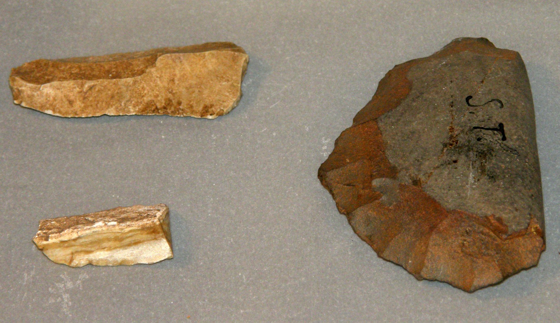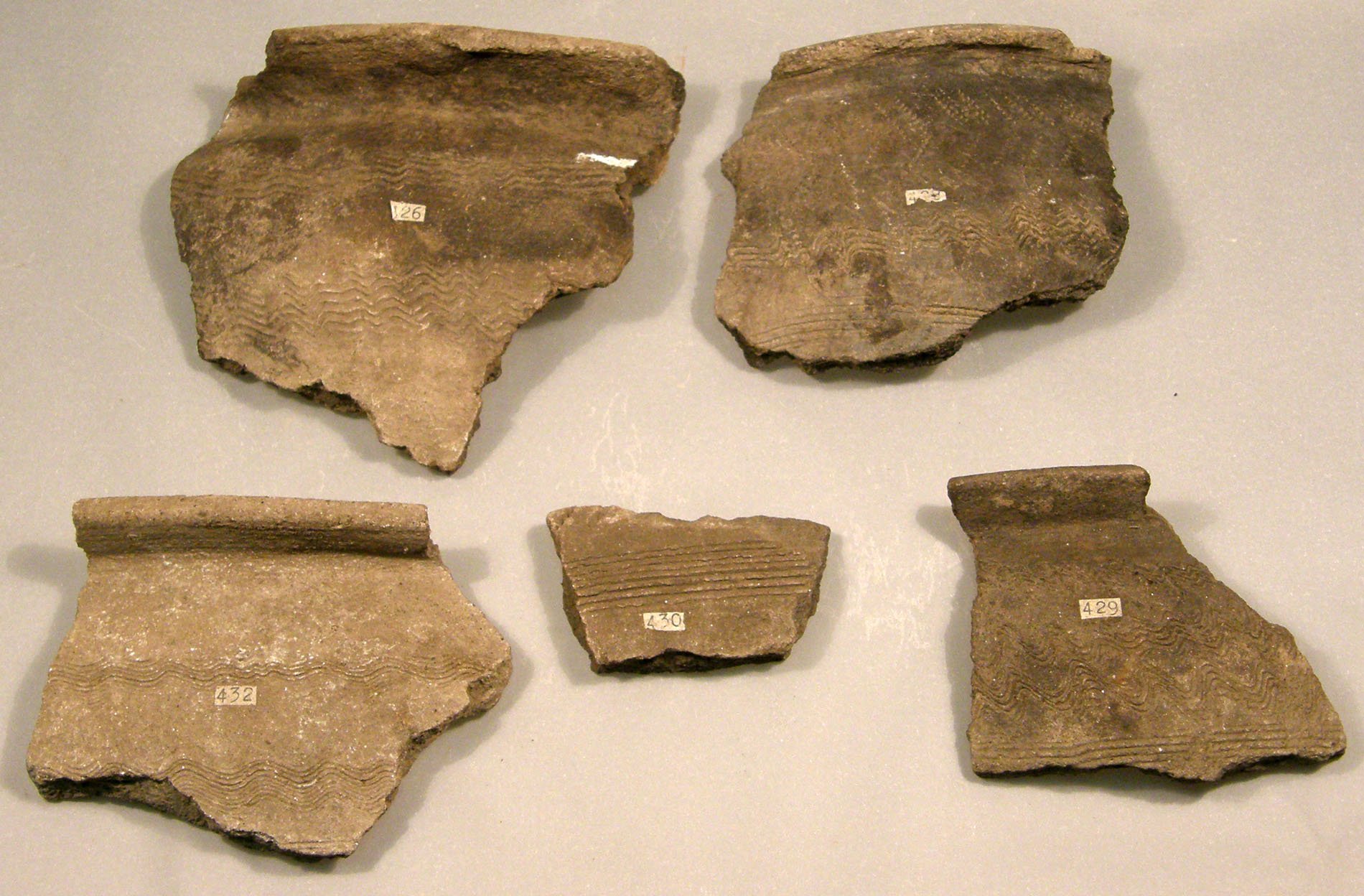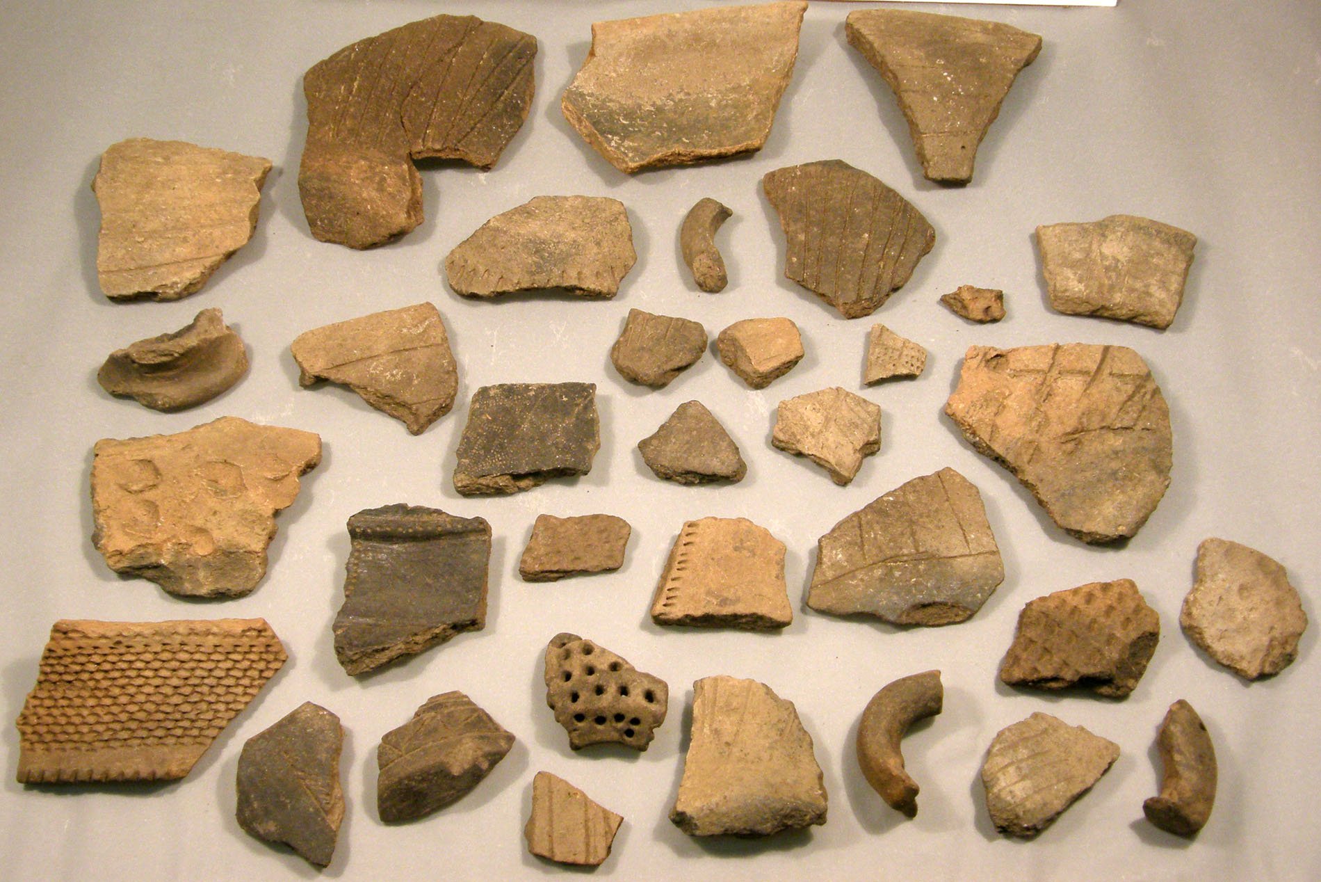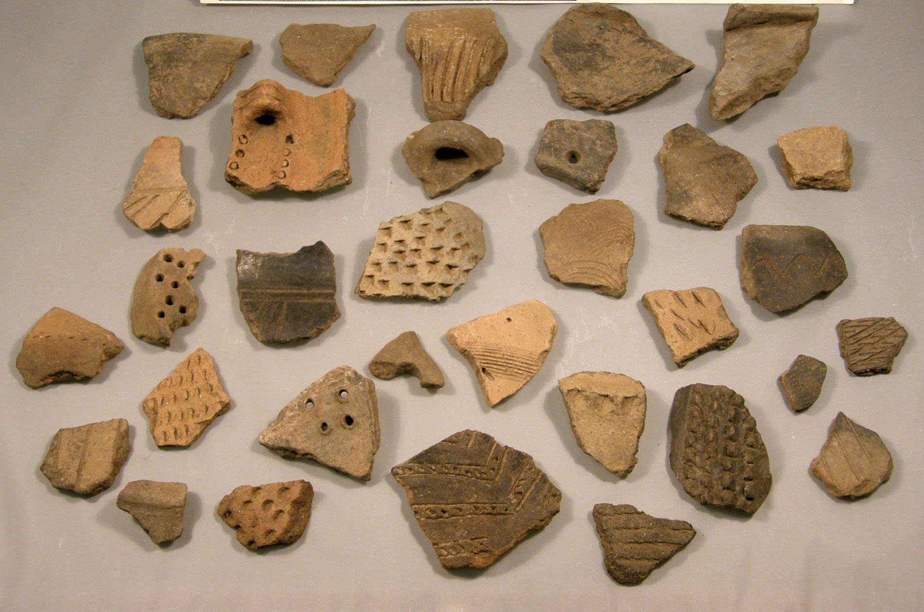 | Předměty | Sbírka je tvořena různorodým archeologickým materiálem většinou fragmentárního charakteru, ale i jednotlivými ojedinělými nálezy z různých materiálů. Většinou jde o zlomky keramiky a keramiku, kosti zvířecí, antropologický materiál, mazanici a technickou keramiku (tyglík, dyzna), přesleny, závaží, štípaná industrie, broušená industrie, vývrtky, brousky, opracované kameny, drtidla a mlýny, měděné předměty, bronzové předměty (nástroje, zbraně, šperky a součásti oděvu), železné předměty (nástroje, zbraně, šperky, součásti oděvu, stavební železo, zemědělské nástroje a součásti postrojů), skleněné předměty, uhlíky a dřevěné předměty, malakologický materiál (mušle, škeble, ulity), švartnové předměty, struska, mince, střešní krytina, pseudoartefaktyMATERIÁLY:keramika, kost, paroh, zuby, kámen, jantar, měď, železo, slitiny kovů (převážně bronz), sklo, dřevo, švartna, struska
