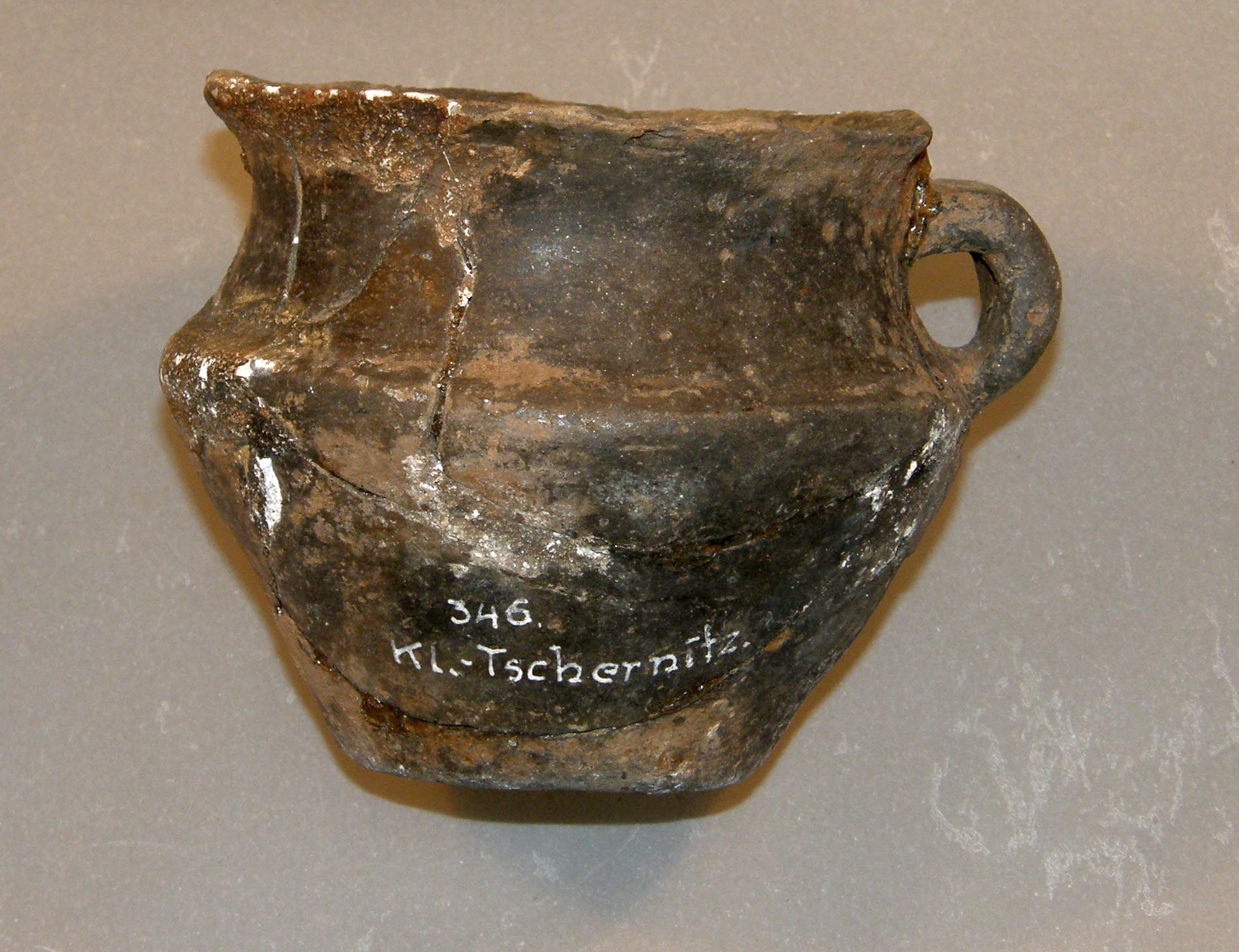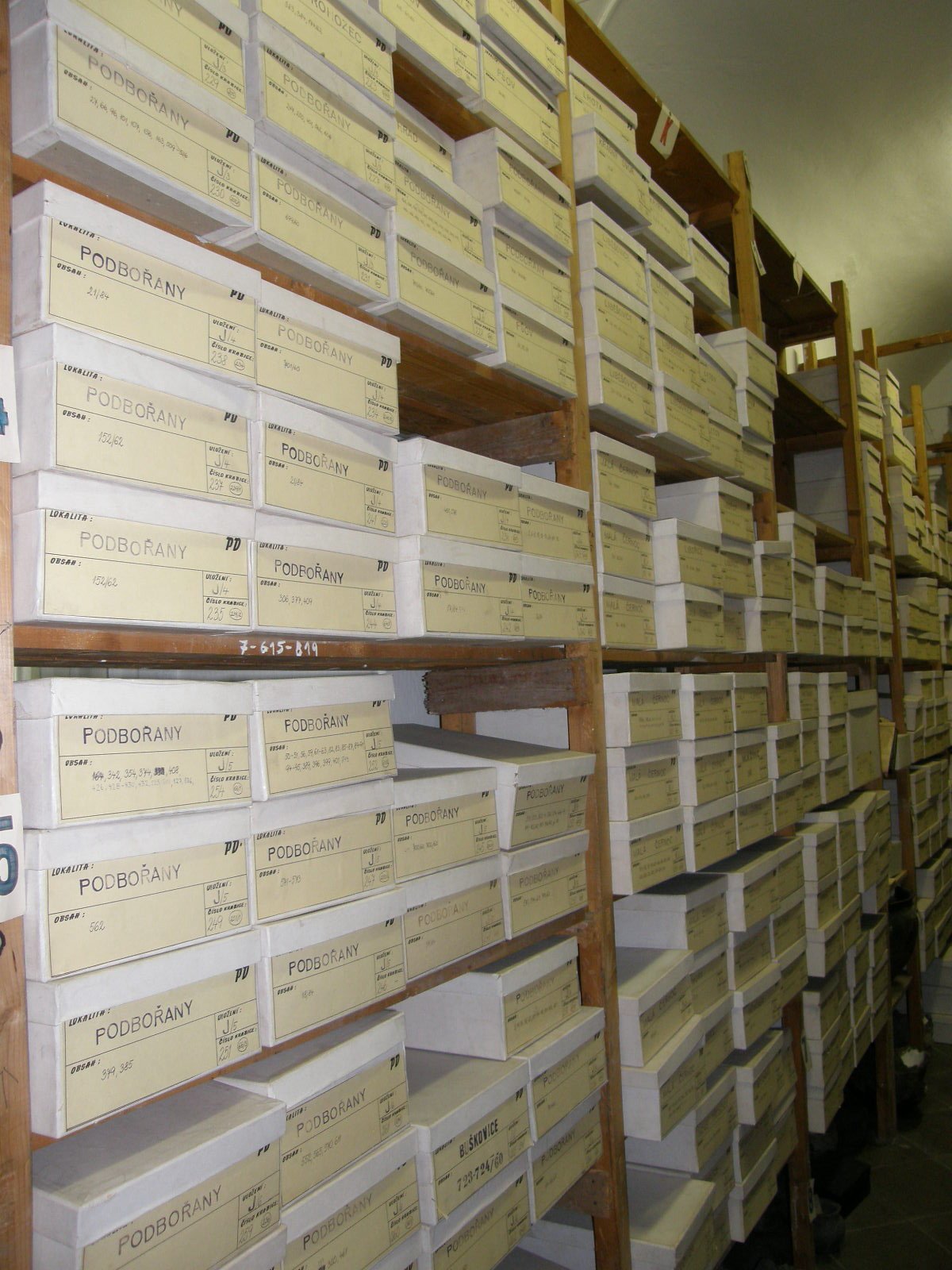 | Období | Sbírkové předměty reprezentují pravěké, časně historické, raně středověké a středověké osídlení výše popsaného území. Ojediněle jsou ve sbírce i předměty novověkého původu. Zastoupeny jsou následující archeologické kultury a období: paleolit (?), mezolit až eneolit, neolit, kultura lineární, kultura vypíchaná, k. schussenriedská, k. nálevkovitých pohárů, k. kulovitých amfor, k. šňůrová, k. řivnáčská, pozdní eneolit, k. zvoncovitých pohárů, doba bronzová, k. únětická, k. mohylová, k. knovízská, k. štítarská, k. halštatská, k. laténská, k. římská, k. stěhování národů, pražský typ, k. hradištní, středověk, novověk, pravěk - blíže neurč., antika. Vznik sbírky úzce souvisí s konstituováním Spolku pro pěstování vlastivědy soudních okresů Podbořany a Jesenice (Verein zur Pflege der Heimatkunde fűr die Gerichtsbezirk Podersam und Jechnitz) dne 13.5.1926. Nedlouho poté bylo zřízeno vlastní muzeum v prostorách učňovské školy v Podbořanech; kniha návštěvníků začíná zápisem ze dne 26.6.1927. Jeho sběrná oblast byla totožná s tehdejším podbořanským politickým okresem, sbírkový fond narůstal díky darům příznivců a pozůstalostem (např. dr. Baerenreithera z Mlýnců). Zcela ojedinělou akcí se stal archeologický výzkum na Rubíně v 30. letech, vedený H. Preidelem, na kterém se finančně podílelo i podbořanské muzeum. Vlastní archeologickou aktivitu začalo vyvíjet až po připojení Sudet k Německu, kdy byl jmenován okresním konzervátorem A. Ratt (Valov, Chotěbudice, Podbořany). Ke konci války čítal fond archeologie něco přes 600 předmětů, mimo nálezů z Preidelova výzkumu na Rubíně. Nové přírůstky sbírek byly publikovány v odborném tisku zřídka, zpravidla v časopisech Unsere Heimat a Sudeta. Po roce 1945, za působení M. Marka jako správce, dostalo muzeum nové místnosti a zároveň bylo obohaceno o sbírky odsunutých Němců (dr. A. Tobische ze Železné, A. Hofbauera a A. Siegla z Podbořan, p. Hartmanna z Dolánek a materiálu z Podbořanska získaného pracovníky zrušeného Úřadu pro pravěk se sídlem v Teplicích). Vlastní sbírkotvornou činnost téměř nevyvíjelo. Z dalších událostí stojí za zmínku pouze odebrání místností muzeu v prosinci 1948 a jeho přestěhování na zámek v Krásném Dvoře někdy v 50. letech. K oživení činnosti dochází až v roce 1959, kdy se správcem stává Jindřich Sládek. 12.9.1959 je ustaven Vlastivědný kroužek přátel muzea a zřejmě někdy v průběhu roku 1960 jsou přírůstkovým číslem opatřeny dosud neevidované starší archeologické nálezy. Od roku 1961 působil v muzeu Fr. Šíma, který jako první po dlouhé době rozšířil jeho sbírky vlastním terénním výzkumem. Slibně se rozvíjející činnost byla bohužel přervána roku 1963 zrušením muzea v souvislosti se správní reformou z roku 1960. Poslední návštěvníci se zapsali do knihy hostů 21.5.1963. Dnes je sbírka součástí fondů Regionálního muzea v Žatci. V 80. létech byla provedena komplexní revize a nové uložení sbírkových předmětů a v roce 1992 publikován odborný katalog celého fondu včetně rejstříku kultur a prostorové identifikace lokalit v základních mapách 1:25 000.