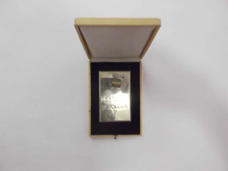 15B 12 - pohár, pamětní, secesní; 1899/1900; ocel 15B 13 - konvice, pamětní; 1899/1900; ocel 15B 17 - brusle, zn. Pelikan; 30. léta 20. stol.; kov 15B 22 - brusle, řemeslné  výroby; Vysokomýtsko; 2. pol. 19. století; kov; dřevo 15B 50 - plaketa; Karel Otáhal; Vysoké Mýto; 1937; kov 15B 52 - plaketa; Karel Otáhal; Vysoké Mýto; 1938; kov Předměty ve stálé expozici. Uložení předmětů v krabici. 15B 3 - pohár, trofejní; 1927; alpaka 15B 5 - plaketa pamětní; DOSTIHY 1931 ST. BOLESLAV; mosaz 15B 23 - brusle, řemeslné  výroby; Vysokomýtsko; 2. pol. 19. století; kov; dřevo; kůže 15B 6 - plaketa, pamětní; 1931; mosaz 15B 11 - pohár, pamětní, secesní; 1899/1900; ocel 15B 49 - plaketa; Vysoké Mýto; 1936; mramor 15B 51 - plaketa; Karel Otáhal; Vysoké Mýto; 1938; kov 15B 55 - plaketa; Karel Otáhal; Vysoké Mýto; 1940; kov 15B 1 - pohár, trofejní; Čechy; 1924; alpaka 15B 4 - talíř, trofejní; Čechy; 1928; alpaka Uložení předmětů v krabici.