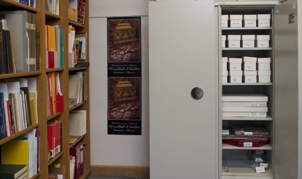 Soubor závaží a vážek určených ke kontrole hmotnosti zlatých a stříbrných mincí, 1811, Lennep (Vévodství Berg). Medaile sv. Trojice saského kurfiřta Augusta I. z roku 1569, Sasko. Medaile sv. Trojice saského kurfiřta Augusta I. z roku 1569, Sasko. Medaile Jana Jiřího Krnovského z roku 1609, Krnovské knížectví. Medaile Jana Jiřího Krnovského z roku 1609, Krnovské knížectví. Dvoudukát Ferdinanda III. z roku 1646, Vratislav. Dvoudukát Ferdinanda III. z roku 1646, Vratislav. Římský denár z blíže nespecifikovaného slezského depotu antických mincí, 193 - 211, Řím. Římský denár z blíže nespecifikovaného slezského depotu antických mincí, 193 - 211, Řím. Pražský groš Jana Lucemburského (1310 - 1346), z nálezu v Těškovicích. Pražský groš Jana Lucemburského (1310 - 1346), z nálezu v Těškovicích. Avers pětidukátu Ferdinanda II. z roku 1636, Mincovna Praha. Bankovka v hodnotě 2 korun z roku 1914, Rakousko-Uhersko. Medaile tří životních pravidel a tří ctnostní z 1. poloviny 18. století, Slezsko. Medaile tří životních pravidel a tří ctnostní z 1. poloviny 18. století, Slezsko. Intronizační medaile olomouckého arcibiskupa Theodora Kohna z roku 1892. Intronizační medaile olomouckého arcibiskupa Theodora Kohna z roku 1892. Intronizační medaile olomouckého biskupa Leopolda II. Fridricha z Egkhu z roku 1759. Intronizační medaile olomouckého biskupa Leopolda II. Fridricha z Egkhu z roku 1759. Medaile vratislavského biskupa Jindřicha Förstera k 50. výročí kněžství z roku 1875. Biřmovací medaile Terezy Springerové z Mikulovic z roku 1813, Slezsko, Mikulovice. Medaile vratislavského biskupa Jindřicha Förstera k 50. výročí kněžství z roku 1875. Biřmovací medaile Terezy Springerové z Mikulovic z roku 1813, Slezsko, Mikulovice. Medaile předána jako druha cena v závodech na kole v Krnově z roku 1896. Medaile předána jako druha cena v závodech na kole v Krnově z roku 1896. Nouzové platidlo v hodnotě 50 haléřů z roku 1919 z Těšína. Nouzové platidlo v hodnotě 50 haléřů z roku 1919 z Těšína. Bankocetle v hodnotě 25 zlatých z 1. června 1806, Rakouské císařství. Bankocetle v hodnotě 25 zlatých z 1. června 1806, Rakouské císařství. Bankovka v hodnotě 2 korun z roku 1914, Rakousko-Uhersko. Svrchní razidlo pražských grošů z 1. pol. 14. stol., Kutná Hora. Svrchní razidlo pražských grošů z 1. pol. 14. stol., Kutná Hora. Spodní razidlo pražských grošů z 1. pol. 14. stol., Kutná Hora. Spodní razidlo pražských grošů z 1. pol. 14. stol., Kutná Hora. Tolar Karla z Lichtenštejna z roku 1614, Opavské knížectví. Tolar Karla z Lichtenštejna z roku 1614, Opavské knížectví. Úmrtní čtvrttolar Jiřího Bedřicha z roku 1603, Krnovské knížectví. Úmrtní čtvrttolar Jiřího Bedřicha z roku 1603, Krnovské knížectví. Zlatý čtyřdukát Františka Josefa I. z roku 1889, Vídeň. Zlatý čtyřdukát Františka Josefa I. z roku 1889, Vídeň. Dukát Jana Kristiána a Jiřího Rudolfa z roku 1610, Lehnicko-břežske knížectví. Dukát Jana Kristiána a Jiřího Rudolfa z roku 1610, Lehnicko-břežske knížectví. Dukát Jiřího, Ludvíka a Kristiána z roku 1661, Lehnicko-břežske knížectví. Dukát Jiřího, Ludvíka a Kristiána z roku 1661, Lehnicko-břežske knížectví. Dvoudukát Matyáše II. z roku 1617, Vratislav. Dvoudukát Matyáše II. z roku 1617, Vratislav. 3 krejcar Ferdinanda II. z roku 1635, Vratislav. 3 krejcar Ferdinanda II. z roku 1635, Vratislav. XV. krejcar Leopolda I. z roku 1674, Vratislav. XV. krejcar Leopolda I. z roku 1674, Vratislav. Tolar Josefa I. z roku 1707, Tyroly, Hall. Tolar Josefa I. z roku 1707, Tyroly, Hall. Náboženská medaile z Jáchymova z roku 1549, Čechy, Jáchymov. Náboženská medaile z Jáchymova z roku 1549, Čechy, Jáchymov. Medaile Bedřicha Viléma II. na hold stavů ve Vratislavi z roku 1786. Medaile Bedřicha Viléma II. na hold stavů ve Vratislavi z roku 1786. Medaile z průmyslové výstavy ve Vídni (1839) pro jesenickou firmu Regenhart&Raymann. Medaile z průmyslové výstavy ve Vídni (1839) pro jesenickou firmu Regenhart&Raymann. Řád, Zlatá hvězda hrdiny ČSSR, 2. pol. 20. stol., ČSSR. Návrh k pamětní plaketě H. Janoty, signováno H. Scholz Trezor, ve kterém jsou adjustovány medaile a plakety Záběr na část pracovního depozitáře Inventární karta z numismatické kolekce medailí Jáchymovská medaile z roku 1535 - avers Jáchymovská medaile z roku 1535 - revers