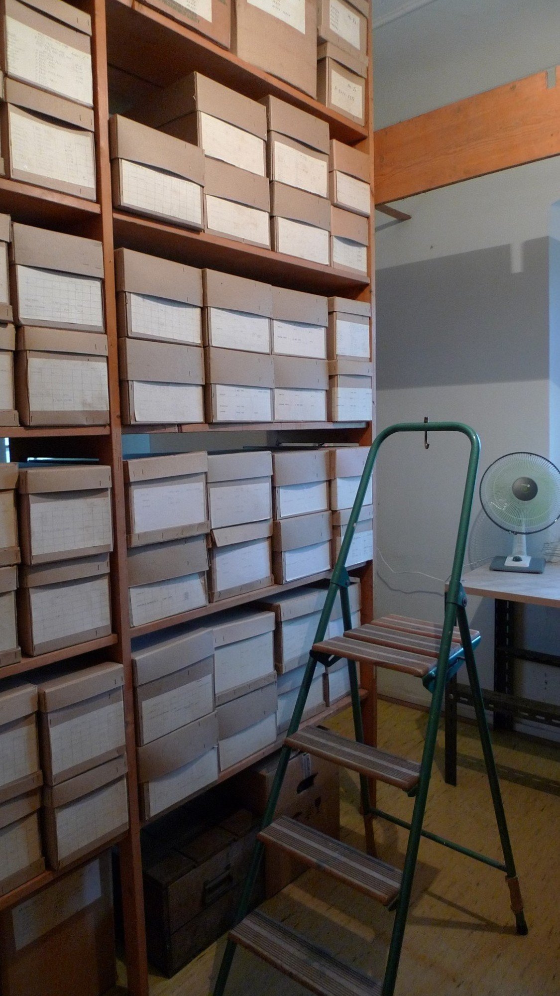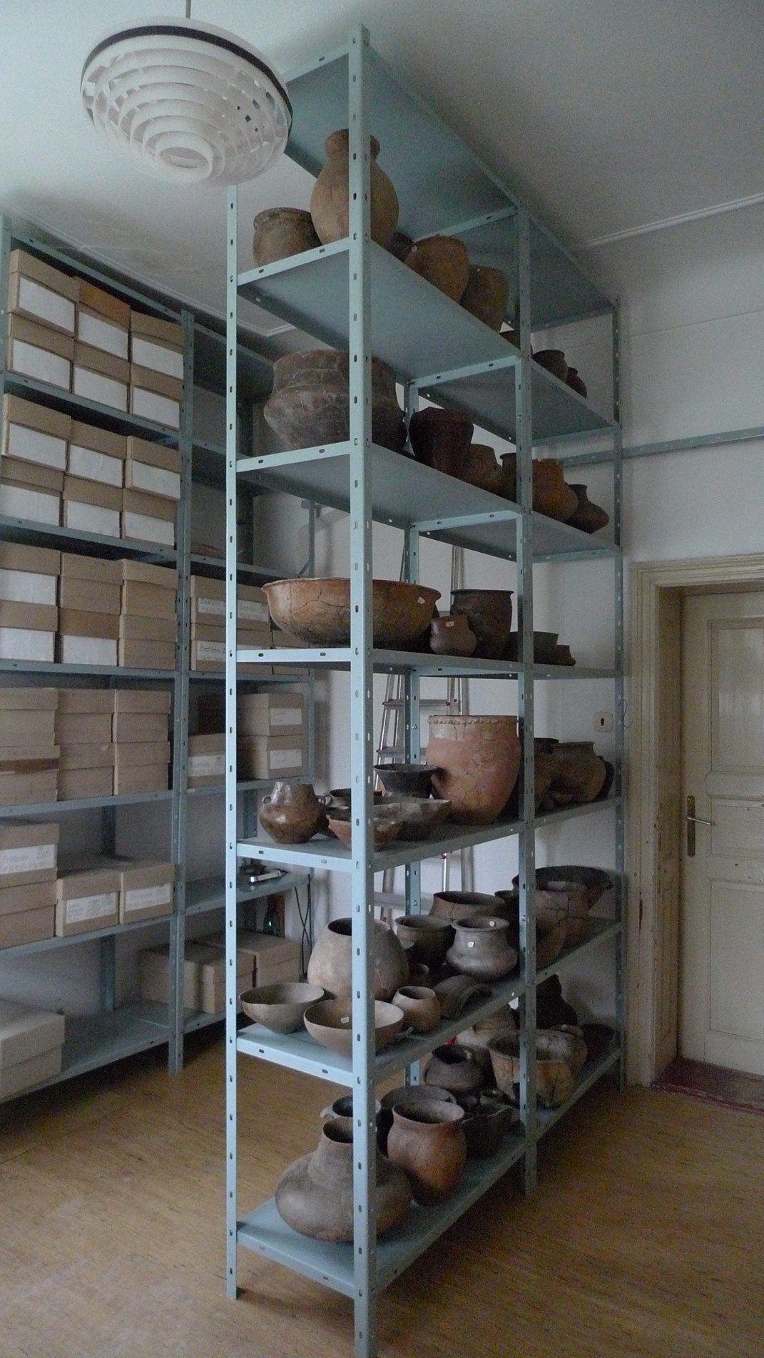 P 6043: malý keramický okřínek zdobený na výduti, doba bronzová - lužická kultura, Kruhy nad Jizerou P 6808: kamenná (amfibolitová) plochá sekerka, eneolit, Mužský - Hrada P 18381: keramická forma na foukání flakónků, mající tvar šestibokého jehlanu, 18. století, Karlova huť P 20531: otevřený náramek z tzv. bílého kovu, kultura únětická, Obora u Nového Bydžova P 12: bronzová spirála ze spony ve dvou kusech, pozdní doba bronzová, neznámá lokalita P 200: fragment bronzového náramku, doba laténská , Lobeč P 551: kamenný (amfibolitový) sekeromlat s vyvrtaným kónickým otvorem, neolit, Lobeč P 5920: bronzová záušnice s dvojitou esovitou kličkou, 11. stol., Dubá P 5939: bronzová záušnice s konci svinutými ve dvojité esovité kličky, plátováno stříbrem, 11.stol., Dubá P 6042: keramické osudí se dvěma oušky a kónickým hrdlem, doba bronzová - luž. kultura, Kruhy nad Jizerou P 7052: keramický nálevkovitý pohár s plastickými výčnělky v podhrdlí, eneolit, Mužský - Hrada P 7202: keramická lahvovitá nádoba, zdobená jednoduchými vlnicemi, 12./13. stol., Svijany P 7206: torzo keramické nádoby, zdobené jednoduchou vlnicí a rytou šroubovicí, 12./13. stol. , Svijany P 8422: železná bohatě tepaná průvlečka se zlatými podložkami pod nýty, 9. - 10. stol., Hradec nad Jizerou P 17822: keramická trojnožka, uvnitř s transparentní glazurou, 16./17. stol., Modlibohov P 17849: keramická mísa s uchy a transparentní hnědou glazurou, 16./17.stol., Modlibohov P 17961: torzo keramického komorového kachle s Filipem Hessenským, 16./17. stol., Modlibohov P 18025: malovaná a glazovaná  keramická mísa s talířovitým podokrajím, 16./17. stol., Modlibohov P 20559: fragment bronzové jehlice s hlavicí zdobenou rytou strmou klikatkou, doba laténská, Markvartice P 20745: nástroj z jeleního parohu s provrtaným otvorem, pozdní doba bronzová, Mužský-Hrada P 20747: keramické etážovité osudí s rýhováním ve střední části, pozdní doba bronzová, Mužský-Hrada P 20800: fragment železné ostruhy s bodcem, plátované ušlechtilým kovem, 12./13.stol., Svijany P 20986: fragment okrajové části keramické nádoby, zdobený vrypy a šroubovicí, 9. - 10. stol., Loučná-Saň P 26401: mastičkářský (tlakem popraskaný) flakónek, zelené (tzv. lesní sklo), 17. - 18. stol., Bedřichov P 17854: fragment keramické poklice, 17./18. stol., Modlibohov P 26767: polovina keramické sklářské formy s plastickými prstenci, 17.- 18. stol., Bedřichov Depozitář Raspenava - uložení celých nábob a větších torz (regál P 11: fragment bronzového náramku - jeden a půl závitu spirály, doba bronzová, neznámá lokalita P 5925: bronzová záušnice s ulomenou esovitou kličkou, z části zachováno Ag plátování, 11.stol., Dubá P 6038: torzo keram. osudí s kónickým hrdlem a dvojicí oušek, doba bronzová - luž. kultura, Kruhy nad Jizerou P 6189: osteologie, Sus domesticus, pravá mandibula, doba hradištní, Hradec nad Jizerou P 6422: osteologie, Bos taurus, rohový násadec dosp. jedince, doba hradištní, Hradec nad Jizerou P 7051: keramická amforka bez oušek, doplněná do původního tvaru sádrou, eneolit, Mužský - Hrada P 7124: torzo keramické misky, doplněné do původního tvaru sádrou, pozdní doba laténská, Markvartice P 7272: torzo okrajové části keramické nádoby, zdobené vrypy, 12./13. stol., Svijany P 17811: keramický džbán, vně zeleně galzovaný, 16./17. stol., Modlibohov P 17958: keramický komorový kachel s motivem bubeníka, 16./17.stol., Modlibohov P 18014: nádobkovitý kachel se čtvercovým ústím, keramika, 16./17. stol., Modlibohov P 18353: železné nůžky s krátkým ostřím a šroubkem se čtvercovou hlavicí, 18. století, Karlova huť P 18354: železný válcovitý visací zámek s uzamykatelnou částí na šroubový klíč, 18. století, Karlova huť P 20002: torzo okraje keramické nádoby, zdobené vlnicemi, 9. - 10. století, Loučná - Saň P 20528: otevřený náramek z tzv. bílého kovu, kultura únětická, Obora u Nového Bydžova P 20540: fragment bronzové spony - lučík s patkou a zachycovačem, 1. pol. 1. stol. n. l., neznámá lokalita P 20795: torzo okrajové části větší keramické situly, doba laténská, Mužský-Hrada P 21001: korálek, zelené průsvitné sklo, zdobeno červenopu a žlutou klikatkou, 9.- 10.stol., Loučná-Saň P 26239: plochý flakónek z čirého skla, 18. stol., Bedřichov P 26724: kovový knoflík, zdobený rozetkou, 17. - 18. stol., Bedřichov P 26741: voňavkářský flakónek z tmavě modrého skla, 17. - 18. stol., Bedřichov P 26914: ziridovaný flakónek ze zeleného lesního skla, 17- 18. stol., Bedřichov P 26916: voňavkářský flakónek ze zeleného lesního skla, 17. - 18. stol., Bedřichov P 17780: keramický hrnec s uchem, zdobený rytou linií v podokrají, 16./17. stol., Modlibohov Depozitář Raspenava - uložení drobných artefaktů (regál Detail uložení drobných archeologických artefaktů (regál Regál