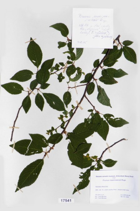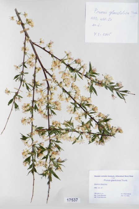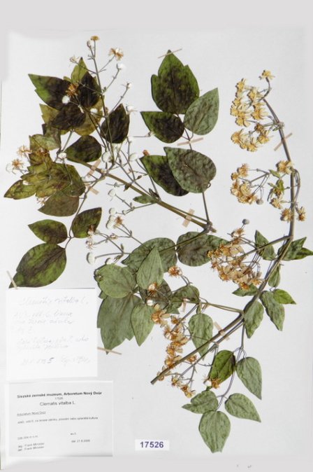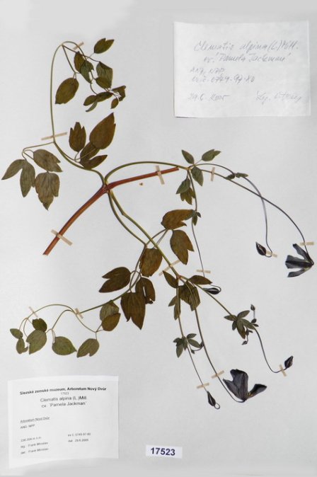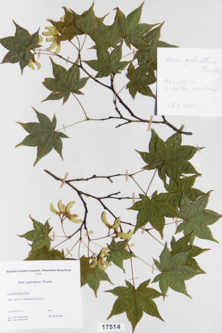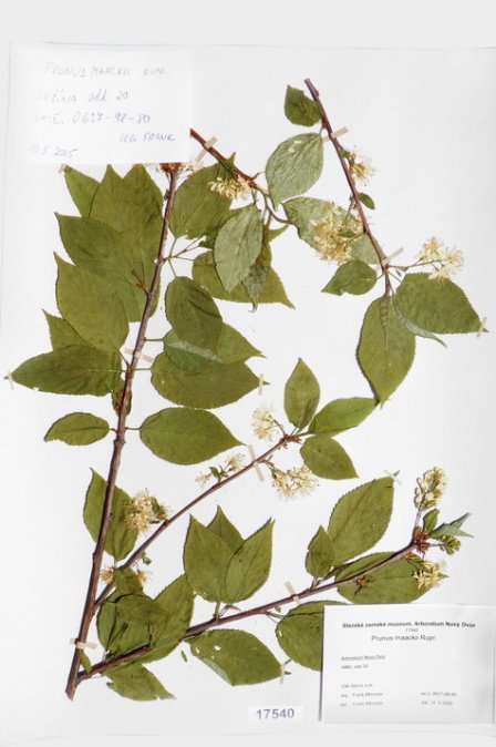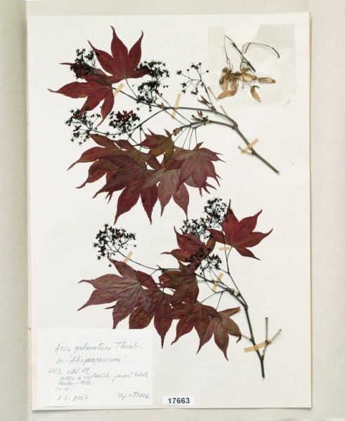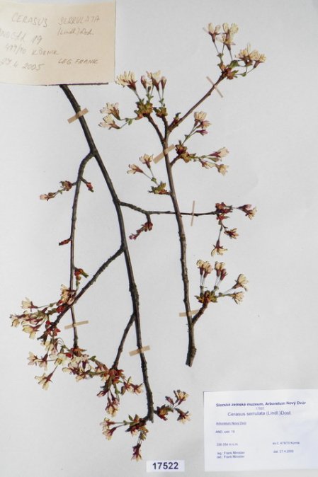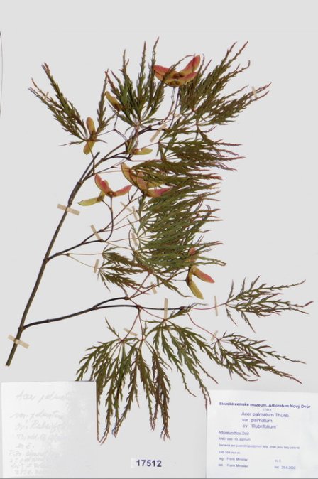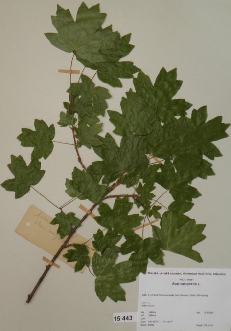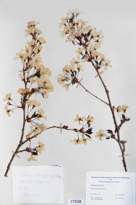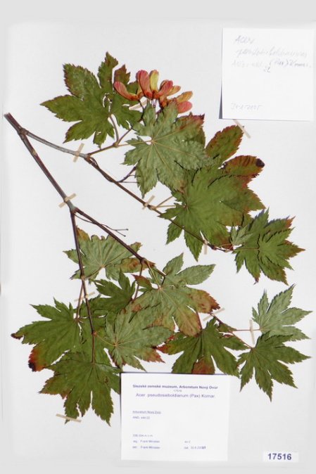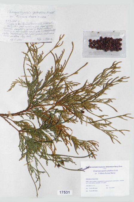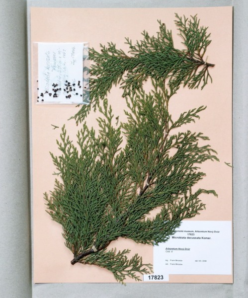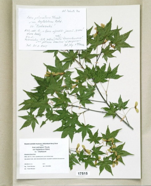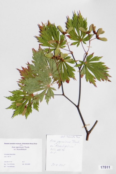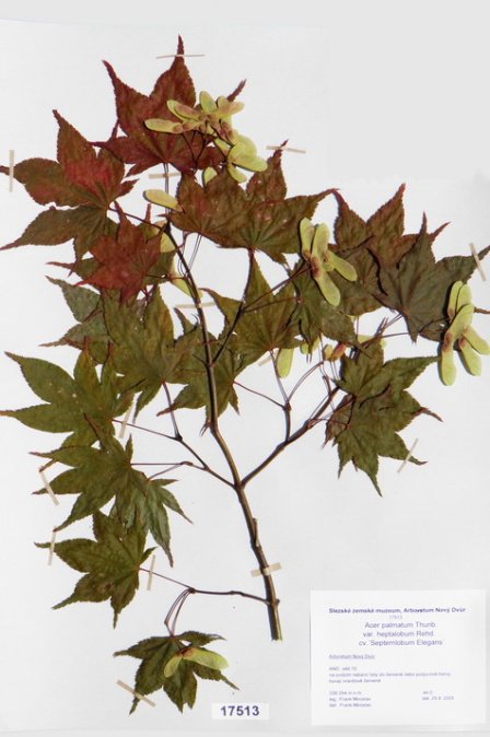 Acer japonicum Thunb. cv. ´Aconitifolium´ Acer palmatum Thunb. var. palmatum cv. ´Rubrifolium´ Acer palmatum Thunb. var. heptalobum Rehd. cv. ´Septemlobum Elegans´ Acer pseudosieboldianum (Pax) Komar. Alnus viridis (Chaix) DC. Betula ovalifolia Rupr. Betula parviflora Marsh. var. japonica (Miq.) Hara Betula raddeana Trautv. Cerasus avium (L.) Moench Cerasus serrulata (Lindl.) Dost. Clematis alpina (L.) Mill. cv. ´Pamela Jackman´ Clematis ligusticifolia Nutt. Eleagnus multiflora Thunb. Syn: E. edulis Carr. E. longipes Gray Elaeagnus mulitflora Thunb. Exochorda racemosa (Lindl.) Rehd. Hydrangea heteromalla D. Don Chamaecyparis pisifera Endl. cv. ´Filifera Aurea Nana´ Pachistima canbyi Gray Prunus cerasifera Ehrh. cv. ´Pissardii Nigra´ Prunus glArboretum Nový Dvůrulosa Thunb. Prunus japonica Thunb. Prunus kurilensis Miyabe Prunus maximowiczii Rupr. Prunus pendula Maxim. Syn: P. subhirtella var. pendula (Maxim.) Tanaka                                         Prunus pensylvanica L. Syn: P. persidifolia Desf. Acer palmatum Thunb., herbářový list Clematis vitalba L., herbářový list Clematis vitalba L., herbářový list Periploca graeca L., herbářový list Prunus maackii Rupr., herbářový list Prunus sargenti Rehd., herbářový list Pinus jeffreyi (Grew) Balf. Prunus sibirica L., herbářový list Acer campestre L., herbářový list Malus coronaria (L.) Mill. Malus pallasiana Sur., herbářový list Mangifera indica L., herbářový list Acer palmatum Thunb., var. heptalobum Rehd., cv. ´Osakazuki´ Leucaena leucocephala (Lam.) De Wit Passiflora quadrangularis L. Quercus shumardii Buckl. Depozitární skříň pro uložení krabic s herbářovými listy. Krabice se složkami, ve kterých jsou uloženy herbářové listy. Dendrologický depozitář v Arboretu Nový Dvůr Acer palmatum Thunb. cv.´Atropurpureum´ Cannabilis sativa L., var. indica (Lam.) Small et Cronq. Microbiata decussata Komar. Possidonia oceanica (L.) M.Delike Prunus sargentii Rehd. Rhododendron arboreum J.E.Smith Ulmus parvifolia Jacq. Thea sinesis L., herbářový list