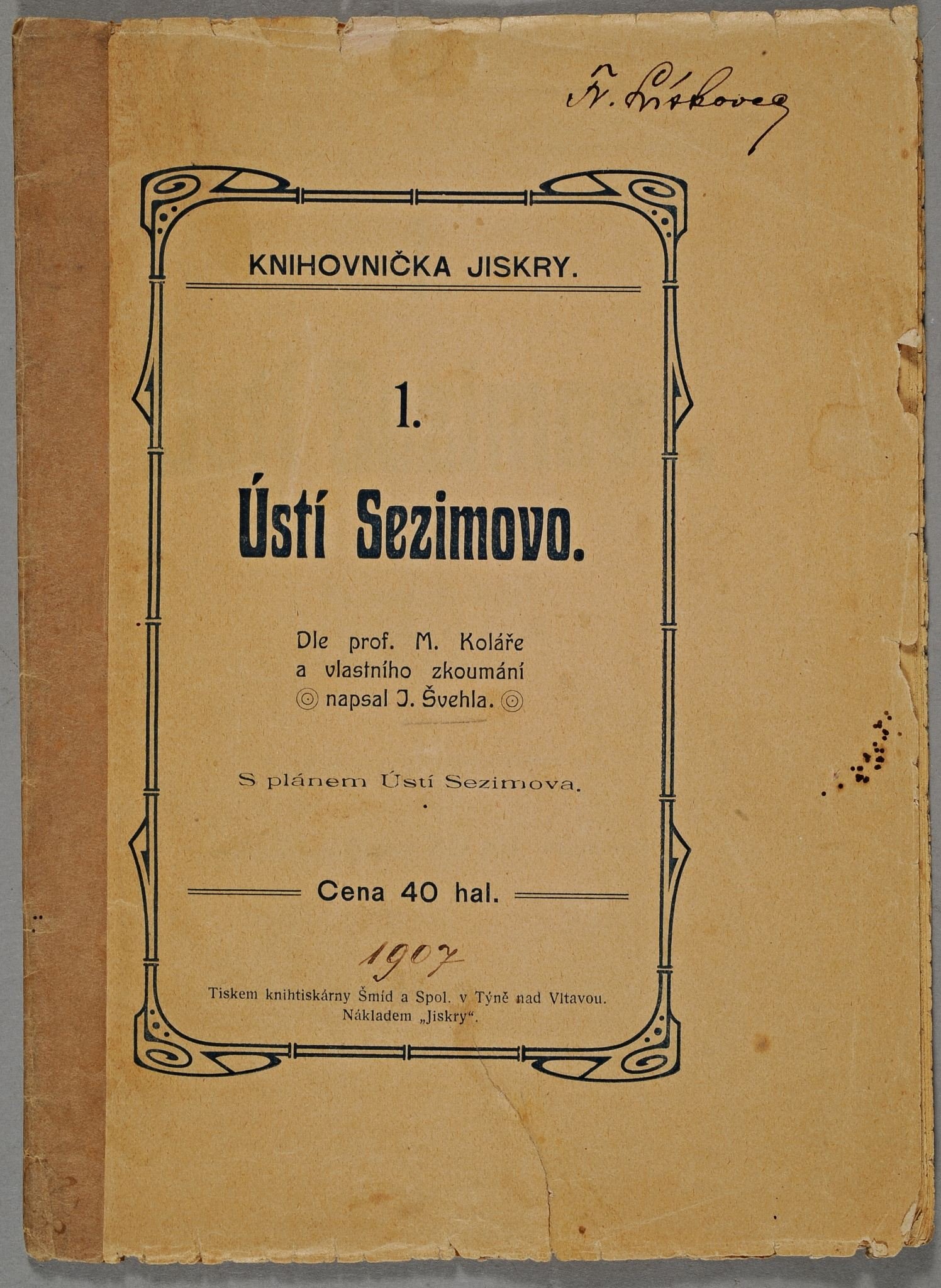článek Františka Lískovce Krypta, 1937 článek Františka Lískovce Návštěvníkům muzea Josefa Švehly v Sezimově Ústí přednáška Františka Lískovce Pro kroniku, 1943 výpis Františka Lískovce Obsah VI. Dílu Památek archeologických a místopisných výpisky Rud. Ez. Cikharta Popis táborska r. 1654 výpisky Jistebnice. Zbytky kopiáře od r. 1652 Kuffnerovo Husitské vojsko, kreslil ak. mal. B. Kutina Josef Švehla: Ústí Sezimovo, 1907 kresebná dokumentace sídliště v Knovízi, z Památek archeologických kresebná dokumentace z Památek archeologických uložení podsbírky v depozitáři uložení podsbírky v depozitáři uložení podsbírky v depozitáři úmrtní oznámení Josefa Švehly, 1934 dopis pro Františka Lískovce od Amálie Kožmínové-Cimrhanzlové, 1936 dopis Archeologického ústavu v Praze Městskému muzeu v Chýnově, 1940 článek Františka Lískovce Dávnověk Soběslavska, 1946 článek Františka Lískovce Krypta, 1937 přednáška Františka Lískovce Po stopách kalicha přednáška Františka Lískovce Přednáška k diapositivům táborským, 1923 přednáška Františka Lískovce Zpráva župního referenta historických, uměleckých a přírodních památek, 1928 zápisník č. XX Františka Lískovce výpis neznámého autora  Archiv města Tábora Ia č. 14, Kraj Bechinsky, 1675 výpisky Panství Jistebnické Tereza Sedláčková: Osobní paměti na historika doktora Augusta Sedláčka plakát Pomozte zachránit Podol. Kostelec - nejstarší památku Táborska, 1945 fragment brožury nezjištěného názvu s článkem Romana Cikharta Zašlá tvrz a ves Leština na Táborsku kresby erbů s jednoduchým popisem barevný tisk s motivem sv. Jana, ruční papír, silně poškozeno