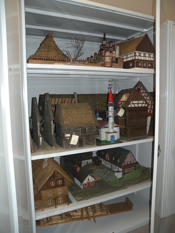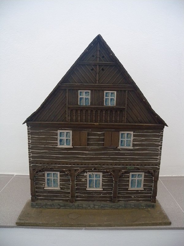 Modely představují chebský lidový statek a hrázděné štíty a součástí muzejních sbírek byly již v předválečném období.
