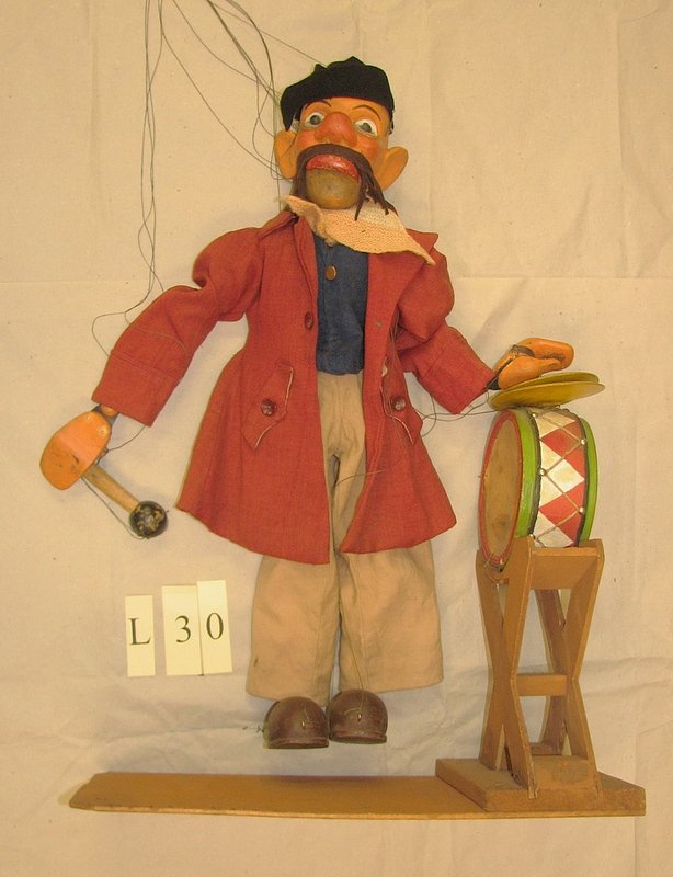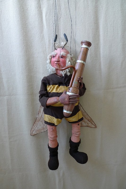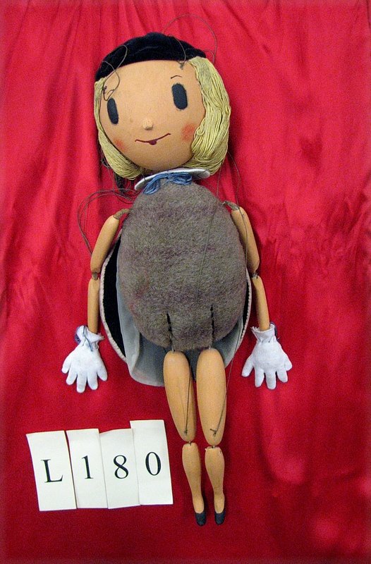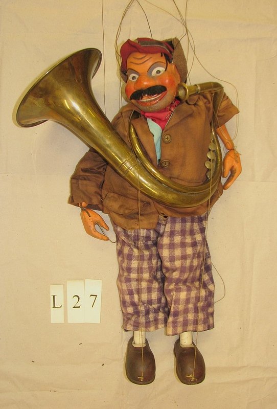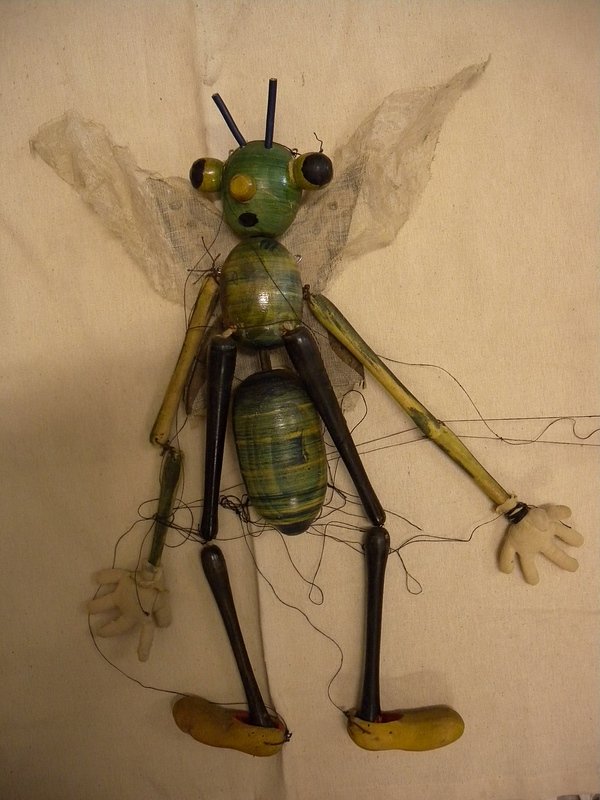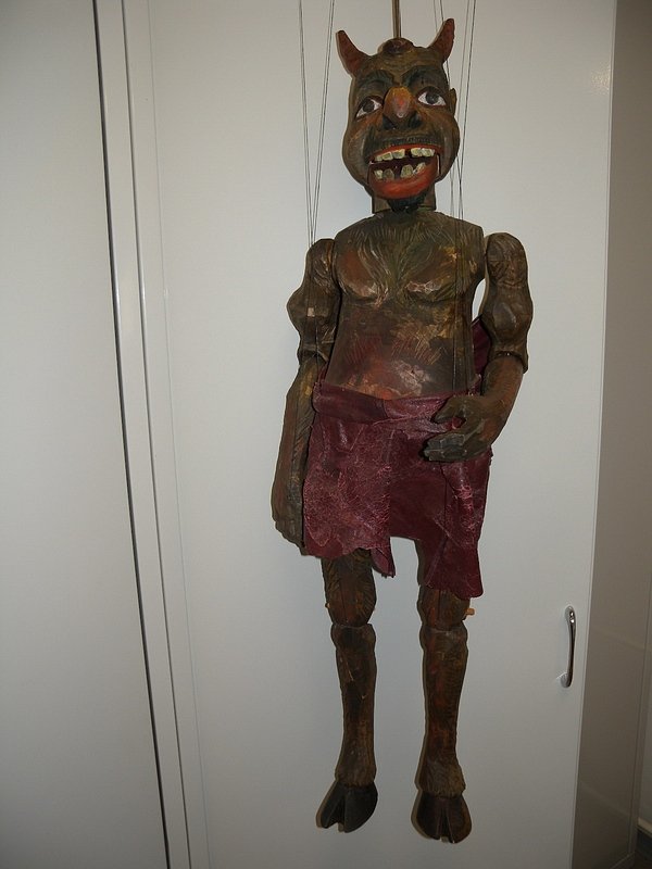 L3 - Hlavička loutky Inda, celodřevěná řezbovaná, Gustav Nosek, 30. léta 20. stol. L14 - Kašpárek v červenobílém kostýmu s rolničkami, loutka celodřevěná řezbovaná, Gustav Nosek, 50. léta 20. stol. L17 - Čmelák, ze hry Hurvínek mezi broučky, loutka celodřevěná řezbovaná, Gustav Nosek, 60. léta 20. stol. L20 - Druhá kopie loutky Hurvínka, vyrobena Gustavem Noskem pro soubor Josefa Skupy, celodřevěná řezbovaná, 1926. L21 - Druhá kopie loutky Spejbla, vyrobena Gustavem Noskem pro soubor Josefa Skupy, celodřevěná řezbovaná, po roce 1945. L27 - Muzikant s bombardónem, loutka celodřevěná řezbovaná, Jan Vavřík-Rýz, před rokem 1950. L28 - Komár, ze hry Hurvínek mezi broučky, loutka celodřevěná soustružená, Gustav Nosek, 60. léta 20. stol. L30 - Muzikant s bubnem, paličkami a činely, loutka celodřevěná řezbovaná, Jan Vavřík-Rýz, před rokem 1950. L31 - Komár, ze hry Hurvínek mezi broučky, loutka celodřevěná soustružená, Gustav Nosek, 60. léta 20. stol. L32 - Pavouk, ze hry Hurvínek mezi broučky, loutka dřevěná, hlava řezbovaná, tělo soustružené, Gustav Nosek, 60. léta 20. stol. L33 - Luční kobylka, ze hry Hurvínek mezi broučky, loutka celodřevěná řezbovaná, Gustav Nosek, 60. léta 20. stol. L35 - Ptáček, loutka z dobarvovaného plyše, Jaroslav Král, po roce 1945. L47 - Žába, loutka celodřevěná, řezbovaná, s pohyblivýma zadníma nohama a s pohyblivou spodní čelistí, vyrobena pro Skupovo divadlo v 30. letech 20. stol. Uložení sbírkových předmětů v depozitáři. Uložení sbírkových předmětů v depozitáři. L198 - Pierot, loutka řezbovaná a soustružená, Šárka Váchová, 80. léta 20. stol. L210 - Stařec, loutka celodřevěná řezbovaná, černý oděv nepůvodní, poč. 20. stol. L214 - Vodník Pivoda, ze hry Vodník pod vyšehradskou skálou, loutka celodřevěná řezbovaná, Jan Vavřík-Rýz, po roce 1945. L19 - Mravenec, ze hry Hurvínek mezi broučky, loutka celodřevěná soustružená, nohy řezbované, Gustav Nosek, 60. léta 20. stol. L29 - Komár, ze hry Hurvínek mezi broučky, loutka celodřevěná soustružená, Gustav Nosek, 60. léta 20. stol. L108 - Panenka kloubová, dřevěné končetiny, tělo z papírové hmoty, hlava porcelánová, oči skleněné, vlasy pravé, kolem roku 1900. L109 - Panenka kloubová, dřevěné končetiny, tělo z papírové hmoty, hlava porcelánová, oči skleněné, vlasy pravé, kolem roku 1900. L118 - Model štítu roubeného domu, 1. třetina 20. stol. L134 - Model špejcharu, 1. třetina 20. stol. L180 - Beruška, z filmového seriálu Ferda Mravenec, Jaroslav Král, 1960. L197 - Čert, loutka celodřevěná řezbovaná, Josef Vítek, 80. léta 20. stol. L199 -Šerif, plošná loutka, vyrobena z překližky, Růžena Stefanová, 80. léta 20. stol. Uložení sbírkových předmětů v depozitáři.