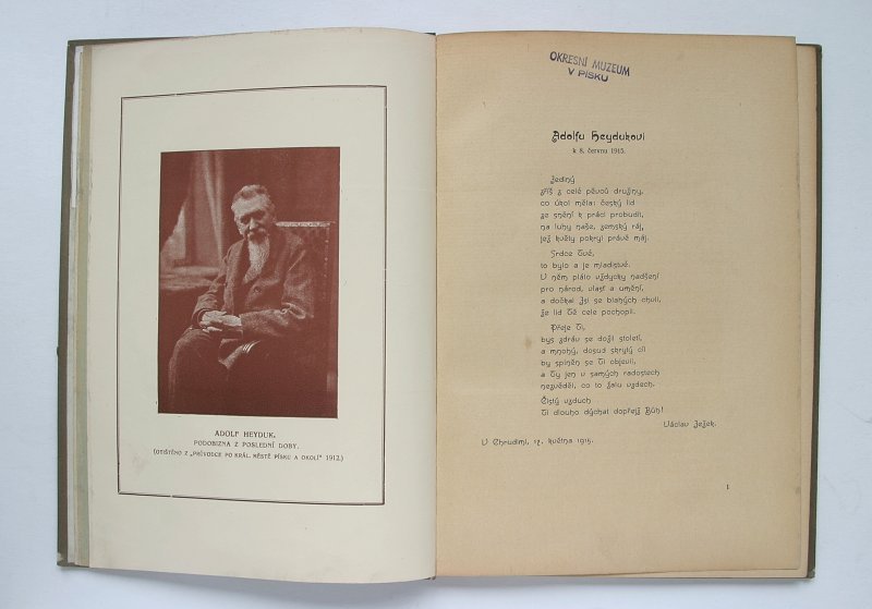 Knihovna A. Heyduka - Česká Rodina 1878 Knihovna A. Heyduka - interiér pracovny (3) Knihovna A. Heyduka - Výbor z Kollárových básní Knihovna A. Heyduka - Adolfu Heydukovi k osmdesátinám Knihovna A. Heyduka - Alois Jirásek, Husitský král Knihovna A. Heyduka - Čeněk Zíbrt, Hrály dudy... Knihovna A. Heyduka - Česká poesie Knihovna A. Heyduka - interiér pracovny (2) Knihovna A. Heyduka - interiér pracovny Knihovna A. Heyduka - interiér salónu (2) Knihovna A. Heyduka - interiér salónu (3) Knihovna A. Heyduka - interiér salónu Knihovna A. Heyduka - Inventář Knihovna A. Heyduka - Mikuláš Aleš Knihovna A. Heyduka - Adam Mickiewicz, Tryzna Knihovna A. Heyduka - Adolf Heyduk, Za volnost a víru Knihovna A. Heyduka - Arnošt Kraus a Jaroslav Vrchlický, Doktor Johannes Faust Knihovna A. Heyduka - Bedřich Juhn, Štěstí Knihovna A. Heyduka - Čeněk Zíbrt, Staročeské výroční obyčeje Knihovna A. Heyduka - Eliška Krásnohorská, Vlny v proudu Knihovna A. Heyduka - Herma Pilbauerová, Z duše Knihovna A. Heyduka - Ivan Sergejevič Turgeněv, Lovcovy zápisky Knihovna A. Heyduka - Jan Neruda, Písně Kosmické Knihovna A. Heyduka - Jaroslav Vrchlický, Cid v zrcadle španělských romancí Knihovna A. Heyduka - Josef Hora, Básně Knihovna A. Heyduka - Karel Bohdan Ort, Kde domov můj Knihovna A. Heyduka - Karel Hynek Mácha, Máj Knihovna A. Heyduka - Karel Jaromír Erben, Vybrané báje a pověsti Knihovna A. Heyduka - Marie Baarová, Bublinky Knihovna A. Heyduka - Pavol Dobšinský, Prostonárodnie slovenské povesti Knihovna A. Heyduka - Rabíndhranát Thákur, Zahradník Knihovna A. Heyduka - Spisy Adolfa Heyduka, Dřevorubec