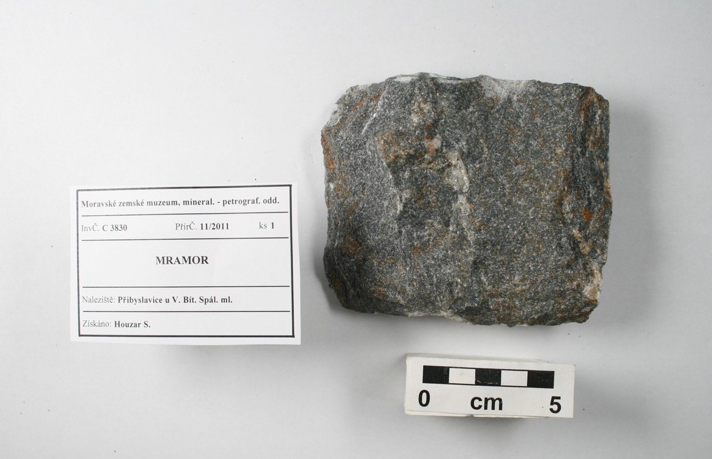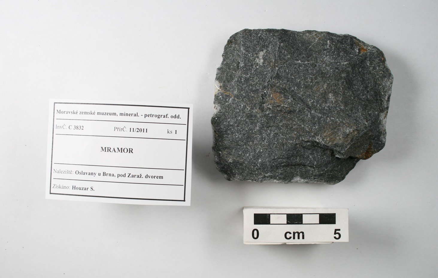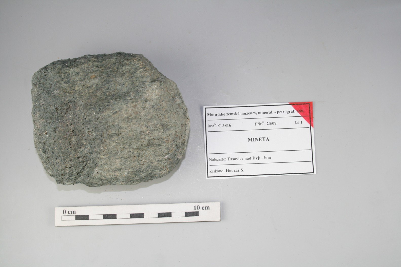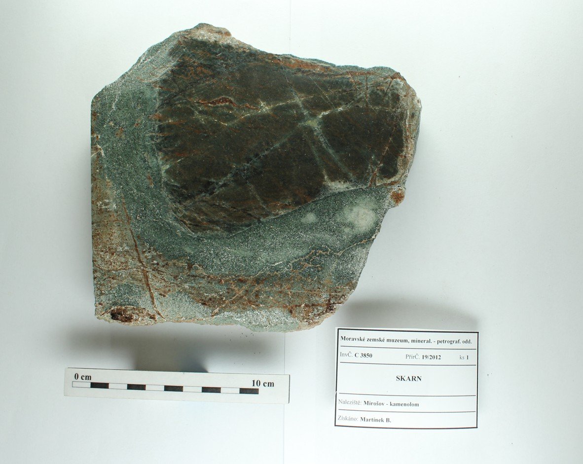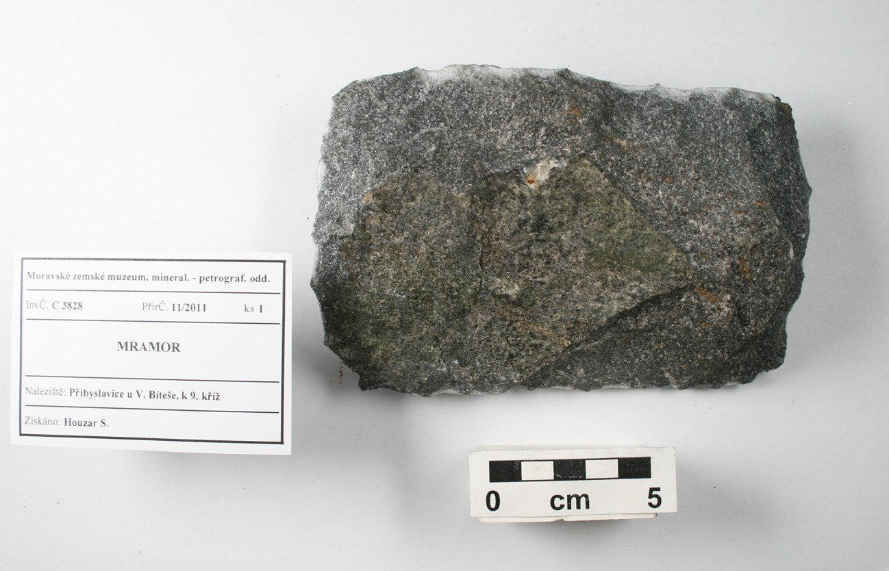 Odkaz na www stránky http://www.mzm.cz/mineralogicko-petrograficke-oddeleni/ Území C - Morava a SlezskoD - Čechy a zahraničí Období Od roku 1818 do současnosti. Od r. 1817 zahrnuty starší sbírky Mitrovského, Salma, Lichtensteina, od 20.st. vlastní akvizice, zejména z vlastních výzkumů. Předměty Podsbírka petrografie (cca 13 000 ks) obsahuje vzorky hornin z Moravy a Slezska i z jiných oblastí. Horniny jsou součástí sbírek Moravského zemského muzea od jeho založení v r. 1818, kde byly součástí geologického fondu. Zejména od sedmdesátých let 20. století se tato podsbírka postupně rozšiřuje, přičemž materiál pochází zejména z vlastních výzkumů. Vzorky hornin (formáty, nepravidelné kusy, ojediněle i leštěný materiál) reprezentují především hlavní horninové typy regionu, ojedinělé jsou specializované celky (např. soubor vzorků impaktitů z kráteru Ries nebo úplnou kolekci nedvědických mramorů). Kolekce hornin uspořádaná podle petrografického systému je samostatným podcelkem stálé expozice „Svět nerostů“, kde jsou horniny navíc součástí prezentace minerálů uspořádaných podle svého vzniku.Expozice „Svět nerostů“ je součástí stálé expozice Moravského zemského muzea v Dietrichsteinském paláci a byla otevřena v r. 1991. První část je věnována fyzikálním vlastnostem minerálů a je zakončena vitrínou s moravskými a slezskými meteority. Druhá a hlavní část expozice je založena na genetické klasifikaci minerálů (minerály magmatitů, pegmatitů, rudní mineralizace, sedimentární a metamorfované horniny) a je zaměřena na minerály Moravy a Slezska. Systematická část zahrnuje mineralogický a petrografický systém, ukázky tektitů a nových minerálů, popsaných poprvé z našeho regionu. Menšího rozsahu jsou ukázky nerostných surovin včetně drahých kamenů. Obor 2 - Petrografická Datum zápisu do CES 29.08.2002 Počet předmětů 6941
