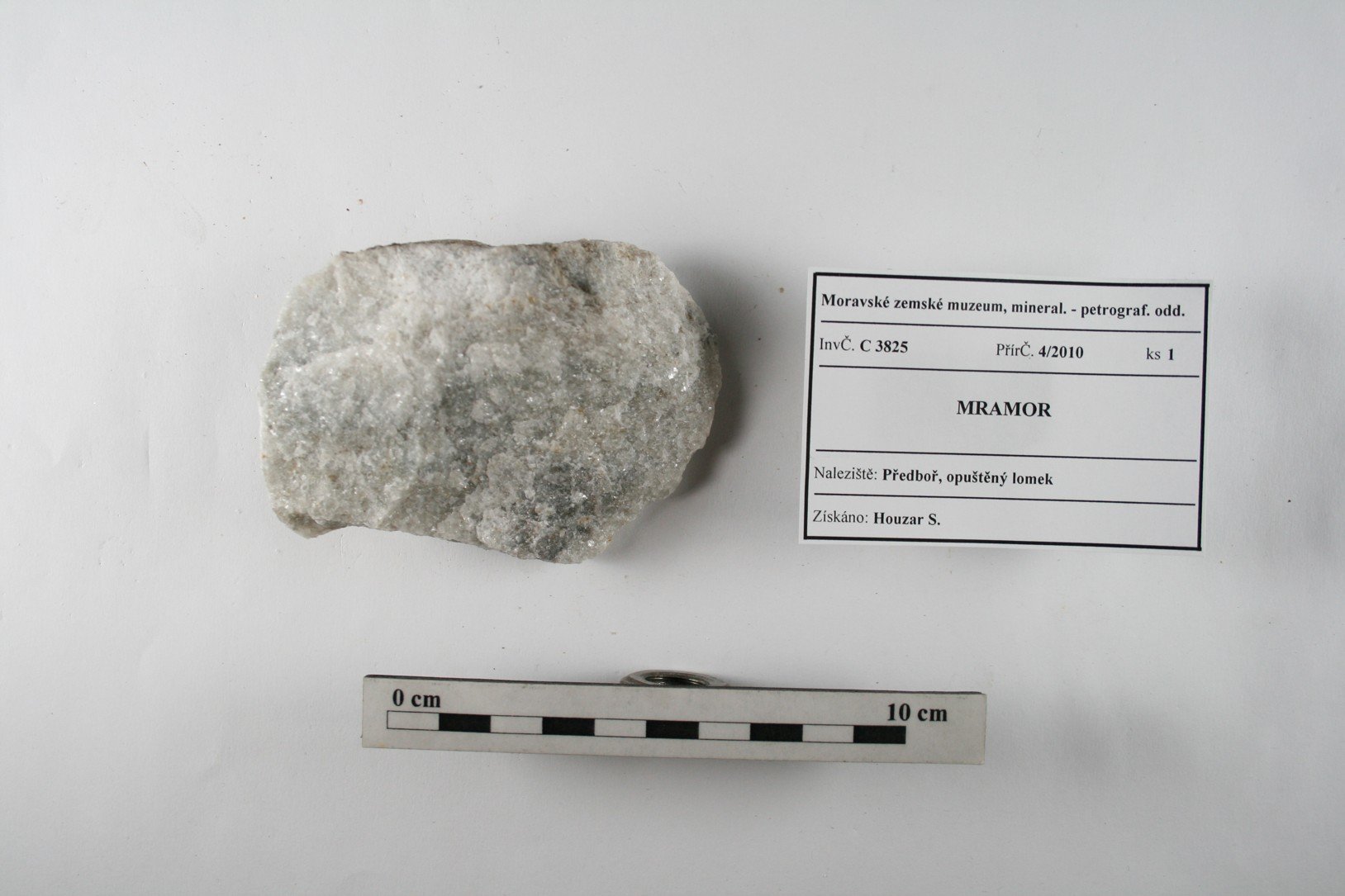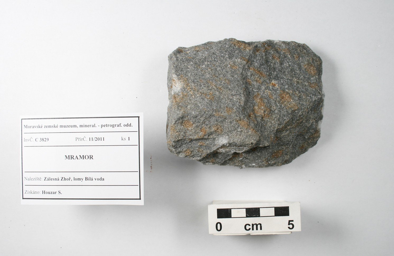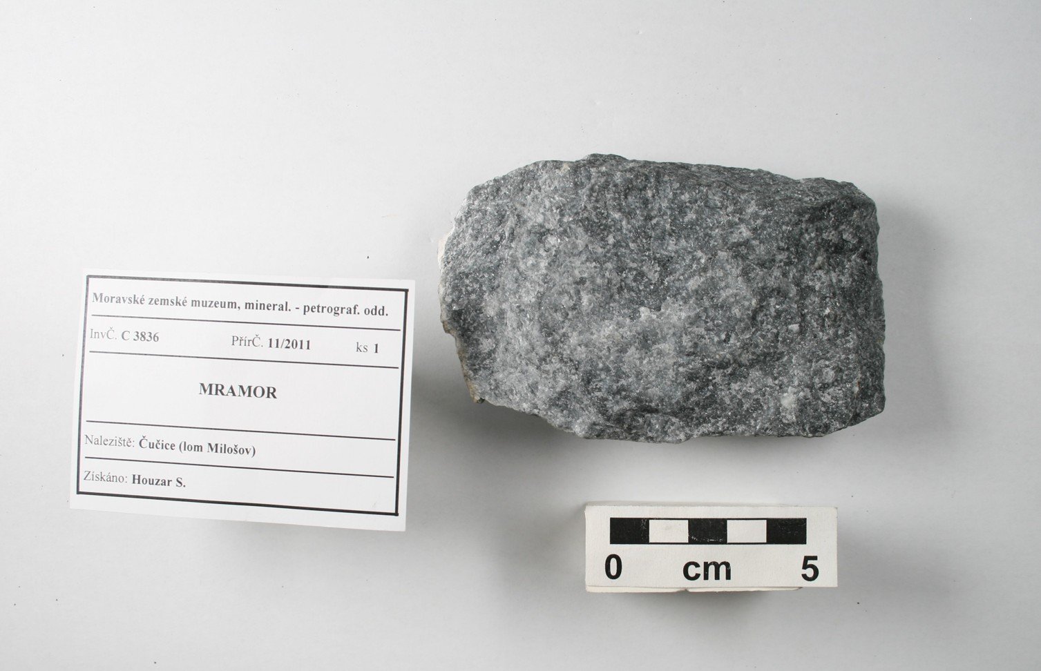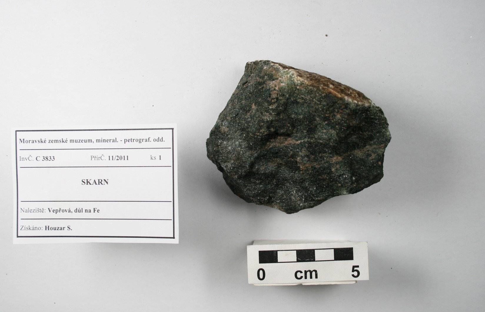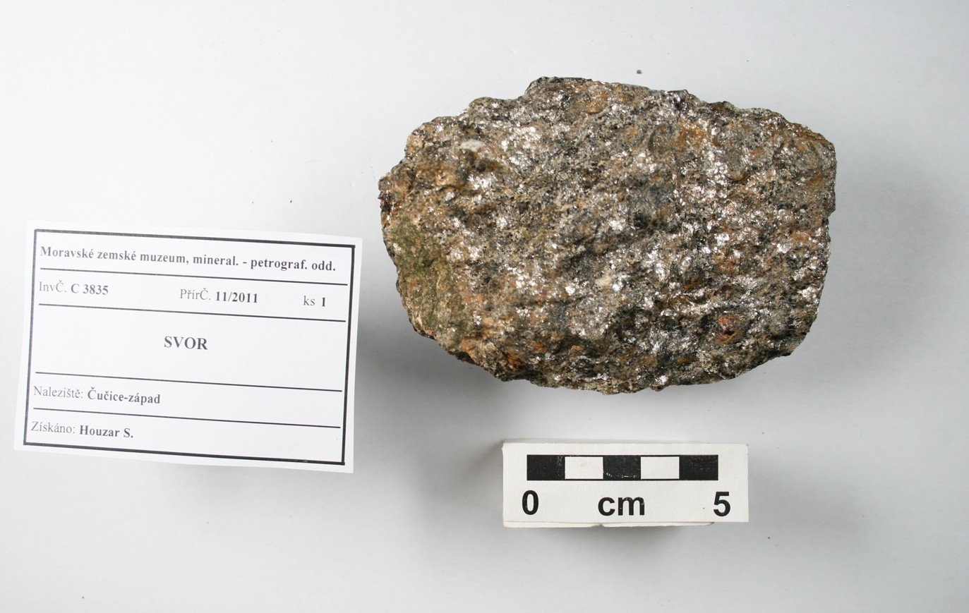 Odkaz na www stránky http://www.mzm.cz/mineralogicko-petrograficke-oddeleni/ Území C - Morava a SlezskoD - Čechy a zahraničí Období Od roku 1818 do současnosti. Od r. 1817 zahrnuty starší sbírky Mitrovského, Salma, Lichtensteina, od 20.st. vlastní akvizice, zejména z vlastních výzkumů. Předměty Podsbírka petrografie (cca 13 000 ks) obsahuje vzorky hornin z Moravy a Slezska i z jiných oblastí. Horniny jsou součástí sbírek Moravského zemského muzea od jeho založení v r. 1818, kde byly součástí geologického fondu. Zejména od sedmdesátých let 20. století se tato podsbírka postupně rozšiřuje, přičemž materiál pochází zejména z vlastních výzkumů. Vzorky hornin (formáty, nepravidelné kusy, ojediněle i leštěný materiál) reprezentují především hlavní horninové typy regionu, ojedinělé jsou specializované celky (např. soubor vzorků impaktitů z kráteru Ries nebo úplnou kolekci nedvědických mramorů). Kolekce hornin uspořádaná podle petrografického systému je samostatným podcelkem stálé expozice „Svět nerostů“, kde jsou horniny navíc součástí prezentace minerálů uspořádaných podle svého vzniku.Expozice „Svět nerostů“ je součástí stálé expozice Moravského zemského muzea v Dietrichsteinském paláci a byla otevřena v r. 1991. První část je věnována fyzikálním vlastnostem minerálů a je zakončena vitrínou s moravskými a slezskými meteority. Druhá a hlavní část expozice je založena na genetické klasifikaci minerálů (minerály magmatitů, pegmatitů, rudní mineralizace, sedimentární a metamorfované horniny) a je zaměřena na minerály Moravy a Slezska. Systematická část zahrnuje mineralogický a petrografický systém, ukázky tektitů a nových minerálů, popsaných poprvé z našeho regionu. Menšího rozsahu jsou ukázky nerostných surovin včetně drahých kamenů. Obor 2 - Petrografická Datum zápisu do CES 29.08.2002 Počet předmětů 6941