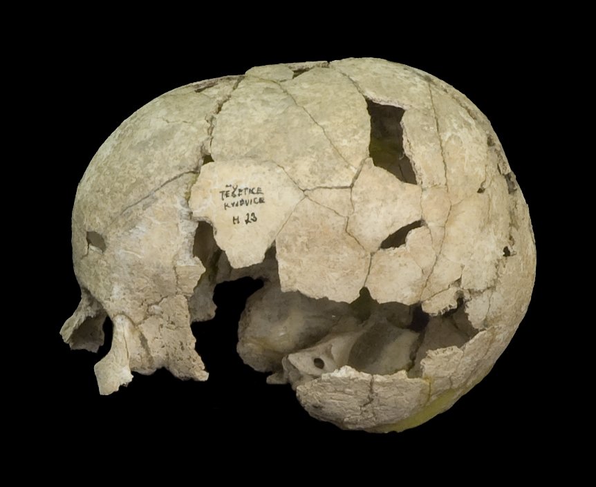 ObdobíSbírka obsahuje kosterné pozůstatky, příp. odlitky z období pleistocénu a holocénu, tj. od paleolitu až po novověk. Pleistocénní materiál, který byl získán nákupem sbírek amatérů z přelomu 19 a 20. stol., byl zcela zničen koncem II. svět. války při požáru mikulovského zámku (hromadný hrob z Předmostí, šipecká čelist). Jiný pleistocénní fond vznikl vlastními výzkumy MZM (hrob DV III), předáním z německé Techniky (hrob Brno II) či odjinud. Holocénní antrop. nálezy pocházejí z výzkumů MZM (hlavně Vedrovice, Blučina a Staré Město) nebo byly předány z výzkumů jiných institucí (Arch. ústavy AV, ÚAPP apod.).