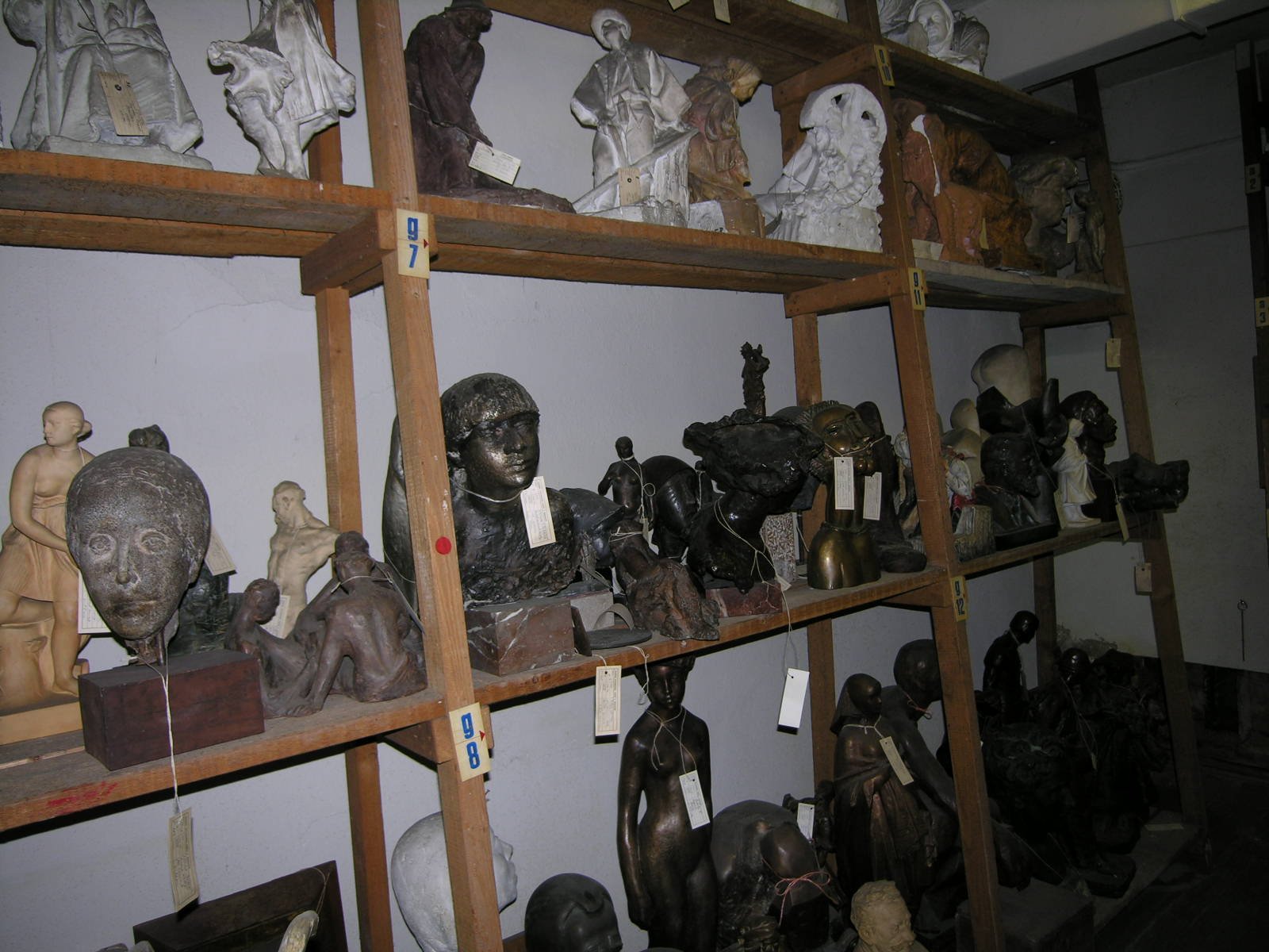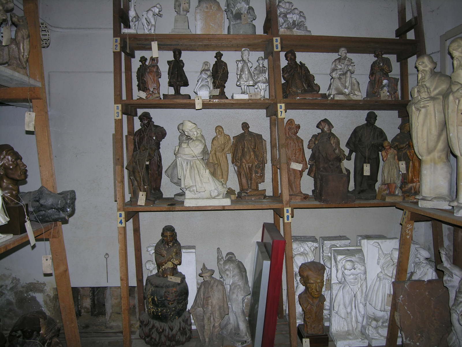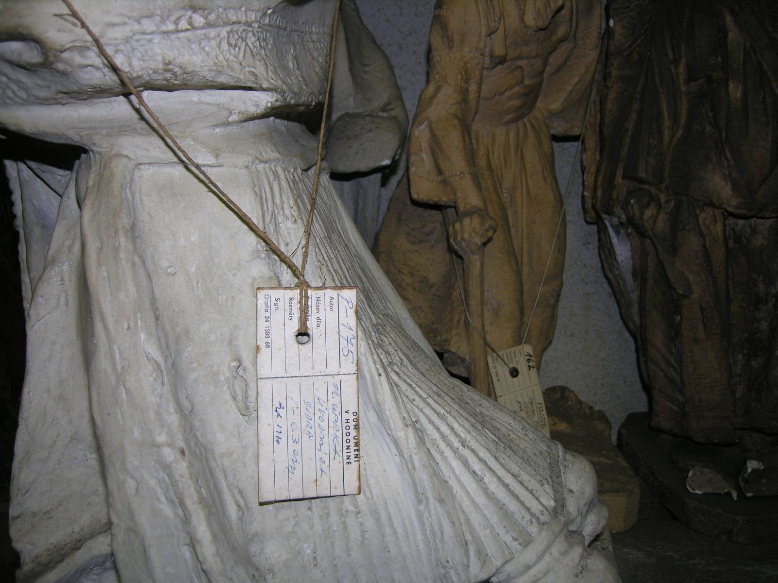 Depozitář podsbírky Plastika. Uložení sbírkových předmětů na policích. Depozitář podsbírky Plastika. Detail identifikačního štítku s údaji. Depozitář podsbírky Plastika. Uložení sbírkových předmětů na policích. Depozitář podsbírky Plastika. Detail identifikačního štítku s údaji. Depozitář podsbírky Plastika. Uložení sbírkových předmětů na policích. Depozitář podsbírky Plastika. Detail identifikačního štítku s údaji. Obrovský Jakub, Judita, bronz, v 60 cm, převedeno ze sbírky spolku SVUM, nedatováno, P266 Obrovský Jakub, Pohled na ztracený ráj, bronz, v 56 cm, převedeno ze sbírky spolku SVUM, nedatováno, P269. Obrovský Jakub, Početí s bohem, bronz, v 39 cm, odlito z P285, 2012, P599. Obrovský Jakub, Portrét slečny XY, bronz, v 46 cm, převedeno ze sbírky spolku SVUM, nedatováno, P275. Pelikán Julius, Sochař Franta Úprka, ražená oboustranná medaile, bronz, průměr 50 mm, 1932, koupeno od soukromé osoby 2003, P503. Obrovský Jakub, Vrhač disku, bronz, v 37 cm, převedeno ze sbírky spolku SVUM, nedatováno, P117. Obrovský Jakub, Dívka s míčkem, bronz, v 58 cm, převedeno ze sbírky spolku SVUM, nedatováno, P256. Obrovský Jakub, Vrhač koule, bronz, v 71 cm, 1933, převedeno ze sbírky spolku SVUM, P267. Úprka František, Sekáč, bronz, v 55 cm, nedatováno, koupě 1973, P376. Úprka František, Chůvička, mramor, v 35 cm, nedatováno, koupě 1975, P386. Jurčák Jaroslav, Odpočívající, bronz, v 21 cm, nedatováno, koupě 1977, P405. Štábla Ferdinand, Matka při náletu, pálená hlína, v 30 cm, nedatováno, koupě 1978, P408. Kovanič Václav Adolf, Paganini, olovo, v 25,5 cm, nedatováno, koupě od autora 1981, P431. Makovský Vincent, Karel Havlíček Borovský, bronz, v 43 cm, nedatováno, koupě od soukromé osoby 1982, P439. Mařatka Josef, Matka s dítětem, mramor, v 30,5 cm, nedatováno, koupě od soukromé osoby 1983, P440. Vaculka Vladislav, Hlava chlapce, bronz, v 44 cm, 1973, koupě od autora 1993, P486. Hyliš Karel, F. Chopin, bronz, v 53 cm, 1963, koupě od autora 1995, P497. Hanke Radim, Hlava - police, bronz, pískovec, v 47 cm, 2001, koupě od autora 2004, P507. Úprka František, Při deklamaci, bronz, v 35 cm, 2005, odlito z P13, P508. Úprka František, Děvče s růží, bronz, v 44,5 cm, 2006, odlito z P169, P579. Úprka František, Do úška (Smutná píseň z Podluží), sádra, v 40 cm, koupě od soukromé osoby 2008, P583. Úprka František, Pro vodu, sádra, v 31 cm, nedatováno, převedeno ze sbírky spolku SVUM, P92. Úprka František, Mateřství, sádra,  v 37 cm, nedatováno, převedeno ze sbírky spolku SVUM, P93. Úprka František, Tanec melancholický (Jánošík), sádra, v 50 cm, nedatováno, převedeno ze sbírky spolku SVUM, P94. Úprka František, Hlava strýce, sádra, v 23 cm, nedatováno, převedeno ze sbírky spolku SVUM, P105. Úprka František, Malá jízda králů, sádra, v 16 cm, nedatováno, převedeno ze sbírky spolku SVUM, P107. Úprka František, Požehnaná (Sirota), sádra, v 49 cm, nedatováno, převedeno ze sbírky spolku SVUM, P110. Úprka František, Hlava slovenky, sádra, v 23 cm, nedatováno, převedeno ze sbírky spolku SVUM, P215. Úprka František, Dožatá (Děvče s liliemi), sádra, v 46 cm, nedatováno, převedeno ze sbírky spolku SVUM, P225. Úprka František, Tanec s valaškou, sádra, v 60 cm, nedatováno, převedeno ze sbírky spolku SVUM, P227. Úprka František, Hošije, bronz, v 59 cm, nedatováno, převedeno ze sbírky spolku SVUM, P230. Obrovský Jakub, Hlava atletky, bronz, v 51 cm, nedatováno, převedeno ze sbírky spolku SVUM, P277. Obrovský Jakub, Skřivánek, sádra, v 65 cm, nedatováno,převedeno ze sbírky spolku SVUM, P284. Obrovský Jakub, Početí s bohem, sádra, v 38 cm, nedatováno, převedeno ze sbírky spolku SVUM, P285. Kovanič Václav Adolf, Leoš Janáček, bronz, průměr 26 cm, nedatováno, koupě 1963, P319. Vaculková Ida, Koník, keramika, v 55,5 cm, nedatováno, převedeno z Ministerstva školství 1966, P345. Úprka František, Slepý hudec Trn, sádra, v 48 cm, nedatováno, P351. Úprka František, Jezdec z jízdy králů, sádra, v 23 cm, nedatováno, převod z evidence PPS č. d. II/30, P358. Jurčák Jaroslav, Valy Mikulčice, bronz, průměr 20 cm, nedatováno, koupě 1972, P373. Pelikán Julius, Plaketa F Úprky, bronz, průměr 25,5 cm, nedatováno, převedeno z PPS č. d. II/31, P374. Sucharda Stanislav, Busta paní Heverochové, bronz, v 42 cm, nedatováno, koupě 1974, P382. Vaculková Ida, Klibna, keramika, v 35,5 cm, nedatováno, převedeno z PPS 1976, P400. Mařatka Josef, Torzo ženy, bronz, v 35 cm, 1977, odlito z P393, P402. Kovařík Miroslav, Apollinaire, cín, v 15 cm, nedatováno, koupě 1982, P421. Kovanič Václav Adolf, J. T. Fischer, bronz, průměr 28 cm, nedatováno, koupě od autora 1982, P432. Vlach Jiří, Lyžař, bronz, 19x17 cm, 1982, převedeno z Ministerstva kultury, P456. Zeman Bořek, Vinař, cín, v 34,5 cm, 1983, převedeno z Ministerstva kultury, P459. Kovaříková Ludmila, Žardiniéra, keramika, v 28 cm, nedatováno, koupě od autorky 1989, P484. Kovařík Miroslav, Ecce homo, cín, v 35 cm, 1983, koupě od autora 1984, P462. Groš Vladimír, Strážnické slavnosti, keramika, v 50 cm, nedatováno, koupě od autora 1988, P482. Krepčík Jaroslav, Joža Uprka, bronz, 35x28 cm, 1914, koupě od soukromé osoby 1993, P485. Oliva Otmar, Reliéfní výzdoba zvonu - Zlo, bronz, 24x28,5 cm, 1989, koupě od autora 1993, P490. Oliva Otmar, Reliéfní výzdoba zvonu - Tři muži s křížem, bronz, 25x39 cm, 1989, koupě od autora 1993, P491. Oliva Otmar, Reliéfní výzdoba zvonu - Vraždění neviňátek, bronz, 24x23,5 cm, 1989, koupě od autora 1993, P492. Vlach Jiří, Horečka, bronz, 35,5x25 cm, 1997, koupě od autora 2003, P505.