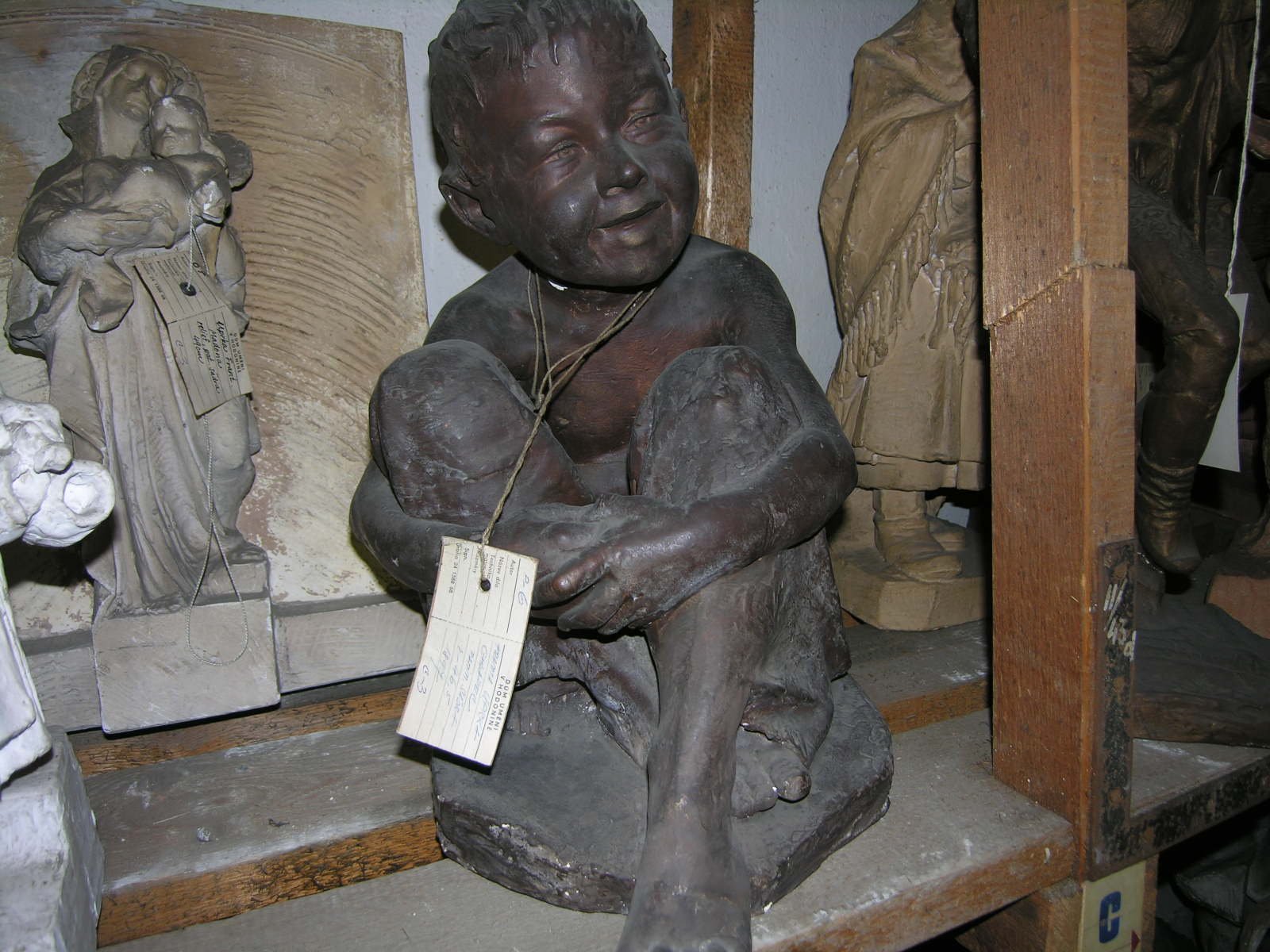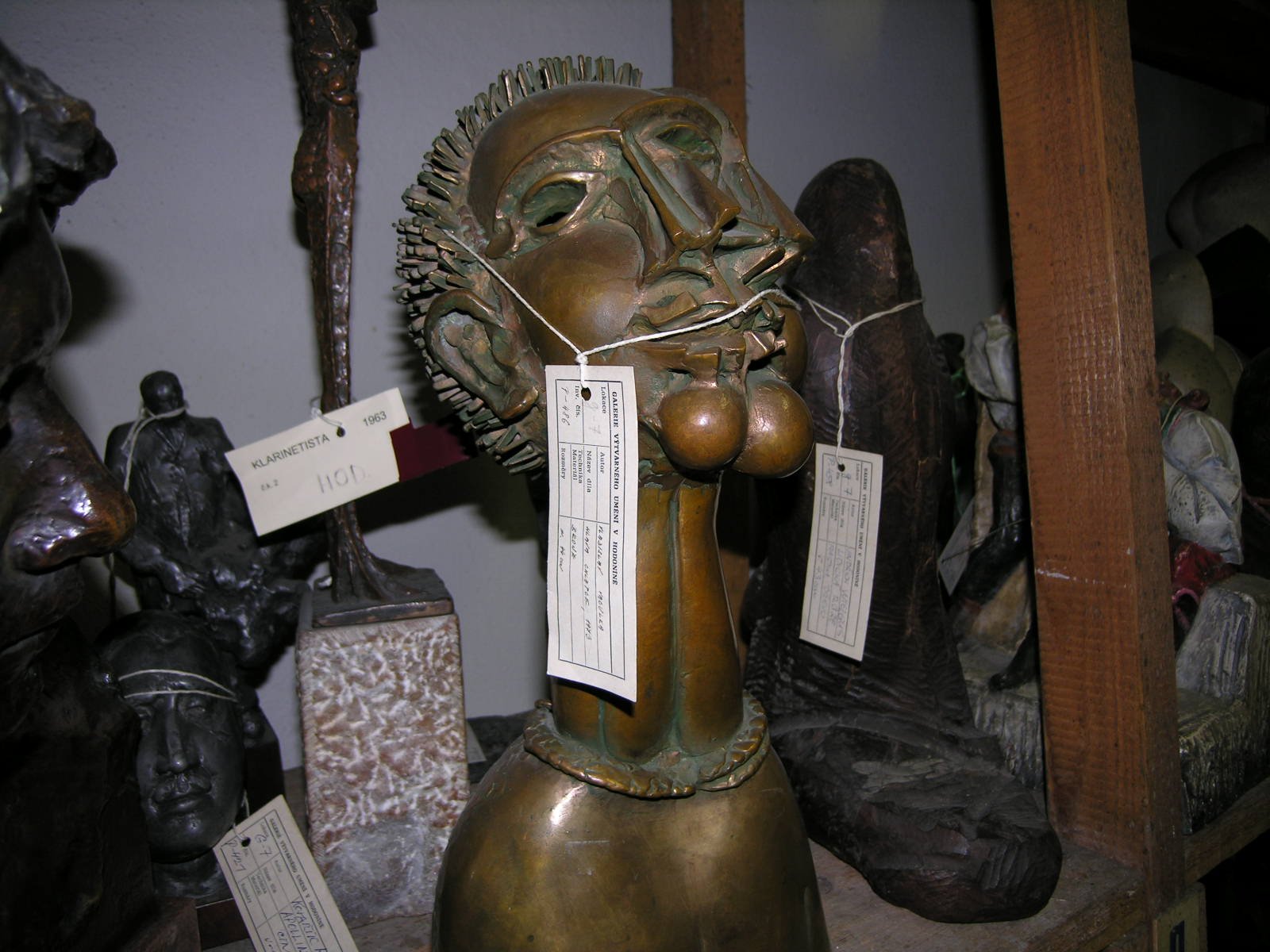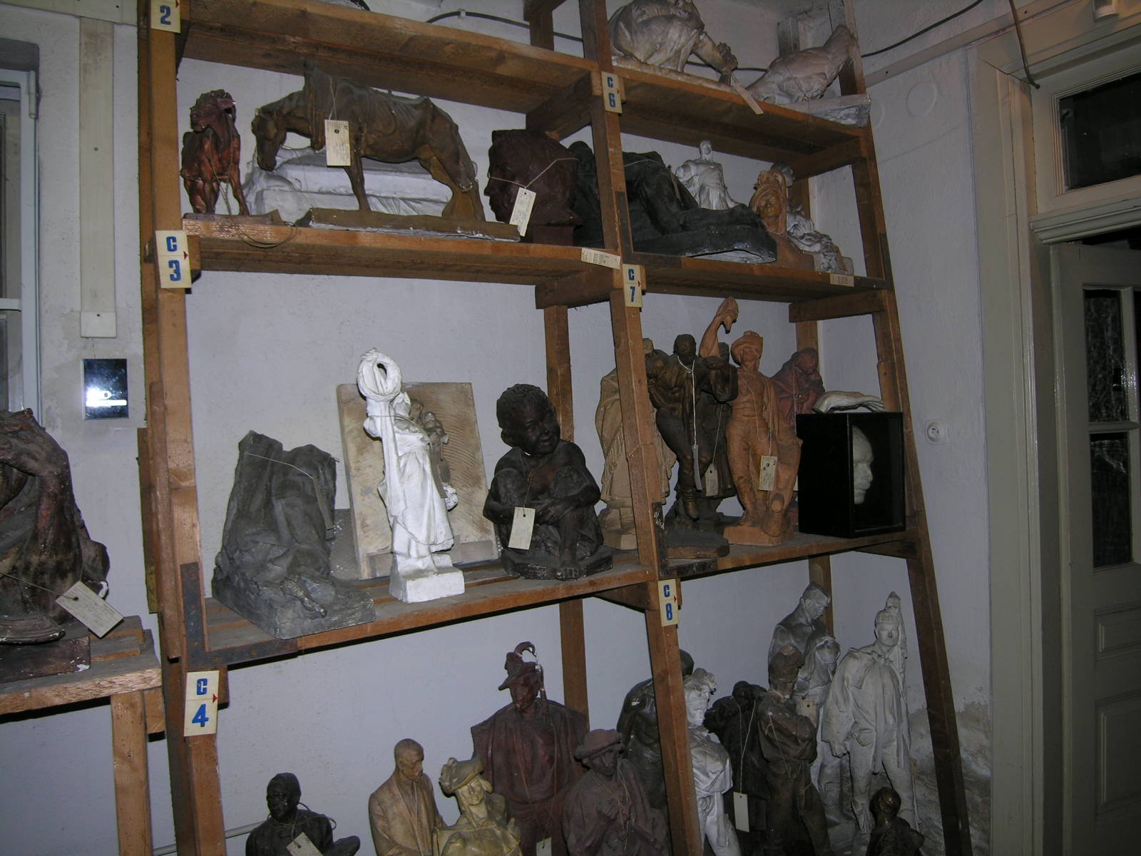 Depozitář podsbírky Plastika. Uložení sbírkových předmětů na policích. Depozitář podsbírky Plastika. Detail identifikačního štítku s údaji. Depozitář podsbírky Plastika. Uložení sbírkových předmětů na policích. Depozitář podsbírky Plastika. Detail identifikačního štítku s údaji. Depozitář podsbírky Plastika. Uložení sbírkových předmětů na policích. Depozitář podsbírky Plastika. Detail identifikačního štítku s údaji. Obrovský Jakub, Judita, bronz, v 60 cm, převedeno ze sbírky spolku SVUM, nedatováno, P266 Obrovský Jakub, Pohled na ztracený ráj, bronz, v 56 cm, převedeno ze sbírky spolku SVUM, nedatováno, P269. Obrovský Jakub, Početí s bohem, bronz, v 39 cm, odlito z P285, 2012, P599. Obrovský Jakub, Portrét slečny XY, bronz, v 46 cm, převedeno ze sbírky spolku SVUM, nedatováno, P275. Pelikán Julius, Sochař Franta Úprka, ražená oboustranná medaile, bronz, průměr 50 mm, 1932, koupeno od soukromé osoby 2003, P503. Obrovský Jakub, Vrhač disku, bronz, v 37 cm, převedeno ze sbírky spolku SVUM, nedatováno, P117. Obrovský Jakub, Dívka s míčkem, bronz, v 58 cm, převedeno ze sbírky spolku SVUM, nedatováno, P256. Obrovský Jakub, Vrhač koule, bronz, v 71 cm, 1933, převedeno ze sbírky spolku SVUM, P267. Úprka František, Sekáč, bronz, v 55 cm, nedatováno, koupě 1973, P376. Úprka František, Chůvička, mramor, v 35 cm, nedatováno, koupě 1975, P386. Jurčák Jaroslav, Odpočívající, bronz, v 21 cm, nedatováno, koupě 1977, P405. Štábla Ferdinand, Matka při náletu, pálená hlína, v 30 cm, nedatováno, koupě 1978, P408. Kovanič Václav Adolf, Paganini, olovo, v 25,5 cm, nedatováno, koupě od autora 1981, P431. Makovský Vincent, Karel Havlíček Borovský, bronz, v 43 cm, nedatováno, koupě od soukromé osoby 1982, P439. Mařatka Josef, Matka s dítětem, mramor, v 30,5 cm, nedatováno, koupě od soukromé osoby 1983, P440. Vaculka Vladislav, Hlava chlapce, bronz, v 44 cm, 1973, koupě od autora 1993, P486. Hyliš Karel, F. Chopin, bronz, v 53 cm, 1963, koupě od autora 1995, P497. Hanke Radim, Hlava - police, bronz, pískovec, v 47 cm, 2001, koupě od autora 2004, P507. Úprka František, Při deklamaci, bronz, v 35 cm, 2005, odlito z P13, P508. Úprka František, Děvče s růží, bronz, v 44,5 cm, 2006, odlito z P169, P579. Úprka František, Do úška (Smutná píseň z Podluží), sádra, v 40 cm, koupě od soukromé osoby 2008, P583. Úprka František, Pro vodu, sádra, v 31 cm, nedatováno, převedeno ze sbírky spolku SVUM, P92. Úprka František, Mateřství, sádra,  v 37 cm, nedatováno, převedeno ze sbírky spolku SVUM, P93. Úprka František, Tanec melancholický (Jánošík), sádra, v 50 cm, nedatováno, převedeno ze sbírky spolku SVUM, P94. Úprka František, Hlava strýce, sádra, v 23 cm, nedatováno, převedeno ze sbírky spolku SVUM, P105. Úprka František, Malá jízda králů, sádra, v 16 cm, nedatováno, převedeno ze sbírky spolku SVUM, P107. Úprka František, Požehnaná (Sirota), sádra, v 49 cm, nedatováno, převedeno ze sbírky spolku SVUM, P110. Úprka František, Hlava slovenky, sádra, v 23 cm, nedatováno, převedeno ze sbírky spolku SVUM, P215. Úprka František, Dožatá (Děvče s liliemi), sádra, v 46 cm, nedatováno, převedeno ze sbírky spolku SVUM, P225. Úprka František, Tanec s valaškou, sádra, v 60 cm, nedatováno, převedeno ze sbírky spolku SVUM, P227. Úprka František, Hošije, bronz, v 59 cm, nedatováno, převedeno ze sbírky spolku SVUM, P230. Obrovský Jakub, Hlava atletky, bronz, v 51 cm, nedatováno, převedeno ze sbírky spolku SVUM, P277. Obrovský Jakub, Skřivánek, sádra, v 65 cm, nedatováno,převedeno ze sbírky spolku SVUM, P284. Obrovský Jakub, Početí s bohem, sádra, v 38 cm, nedatováno, převedeno ze sbírky spolku SVUM, P285. Kovanič Václav Adolf, Leoš Janáček, bronz, průměr 26 cm, nedatováno, koupě 1963, P319. Vaculková Ida, Koník, keramika, v 55,5 cm, nedatováno, převedeno z Ministerstva školství 1966, P345. Úprka František, Slepý hudec Trn, sádra, v 48 cm, nedatováno, P351. Úprka František, Jezdec z jízdy králů, sádra, v 23 cm, nedatováno, převod z evidence PPS č. d. II/30, P358. Jurčák Jaroslav, Valy Mikulčice, bronz, průměr 20 cm, nedatováno, koupě 1972, P373. Pelikán Julius, Plaketa F Úprky, bronz, průměr 25,5 cm, nedatováno, převedeno z PPS č. d. II/31, P374. Sucharda Stanislav, Busta paní Heverochové, bronz, v 42 cm, nedatováno, koupě 1974, P382. Vaculková Ida, Klibna, keramika, v 35,5 cm, nedatováno, převedeno z PPS 1976, P400. Mařatka Josef, Torzo ženy, bronz, v 35 cm, 1977, odlito z P393, P402. Kovařík Miroslav, Apollinaire, cín, v 15 cm, nedatováno, koupě 1982, P421. Kovanič Václav Adolf, J. T. Fischer, bronz, průměr 28 cm, nedatováno, koupě od autora 1982, P432. Vlach Jiří, Lyžař, bronz, 19x17 cm, 1982, převedeno z Ministerstva kultury, P456. Zeman Bořek, Vinař, cín, v 34,5 cm, 1983, převedeno z Ministerstva kultury, P459. Kovaříková Ludmila, Žardiniéra, keramika, v 28 cm, nedatováno, koupě od autorky 1989, P484. Kovařík Miroslav, Ecce homo, cín, v 35 cm, 1983, koupě od autora 1984, P462. Groš Vladimír, Strážnické slavnosti, keramika, v 50 cm, nedatováno, koupě od autora 1988, P482. Krepčík Jaroslav, Joža Uprka, bronz, 35x28 cm, 1914, koupě od soukromé osoby 1993, P485. Oliva Otmar, Reliéfní výzdoba zvonu - Zlo, bronz, 24x28,5 cm, 1989, koupě od autora 1993, P490. Oliva Otmar, Reliéfní výzdoba zvonu - Tři muži s křížem, bronz, 25x39 cm, 1989, koupě od autora 1993, P491. Oliva Otmar, Reliéfní výzdoba zvonu - Vraždění neviňátek, bronz, 24x23,5 cm, 1989, koupě od autora 1993, P492. Vlach Jiří, Horečka, bronz, 35,5x25 cm, 1997, koupě od autora 2003, P505.