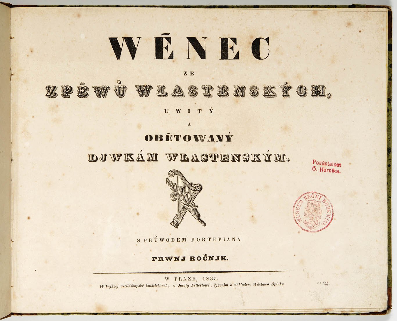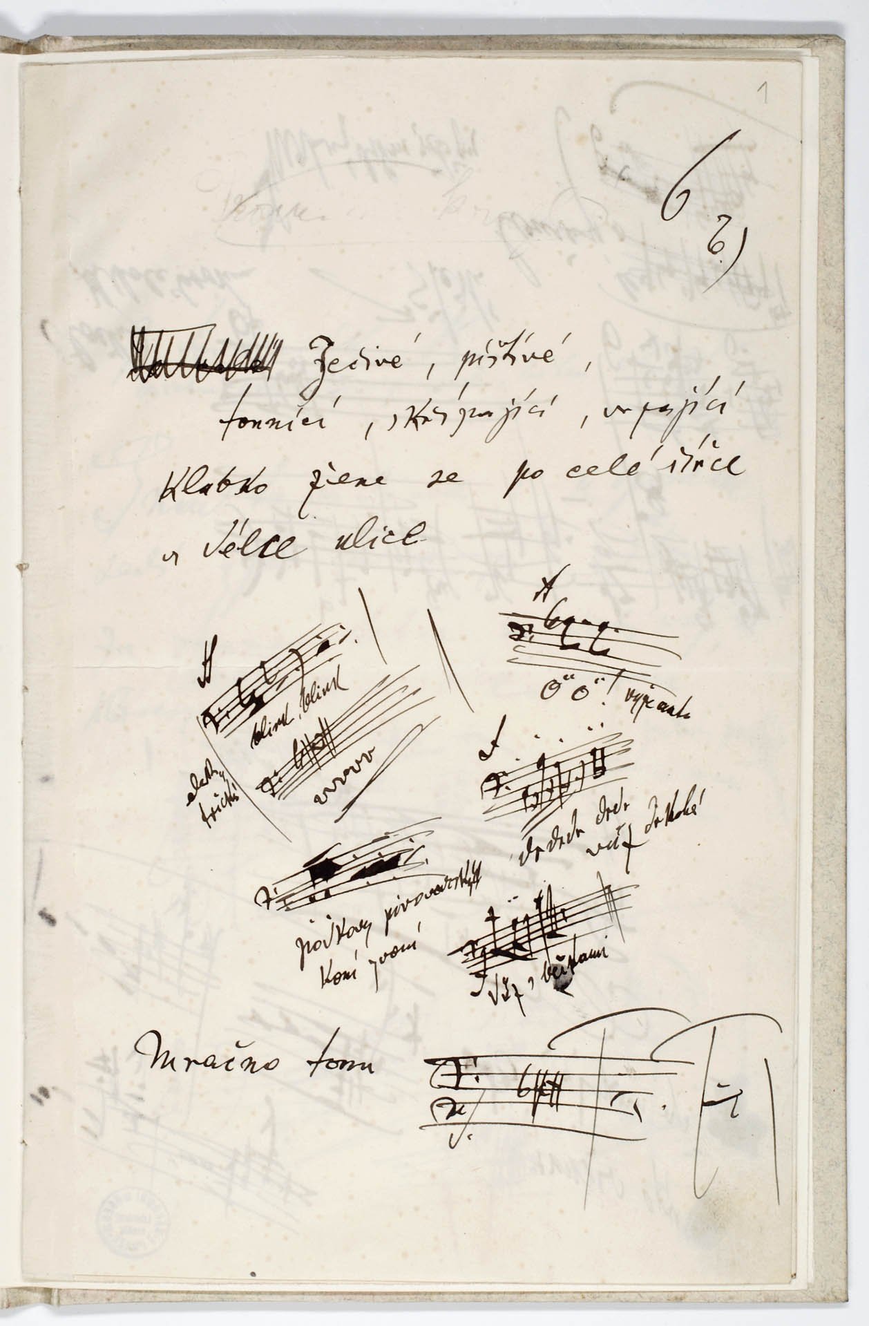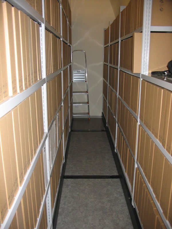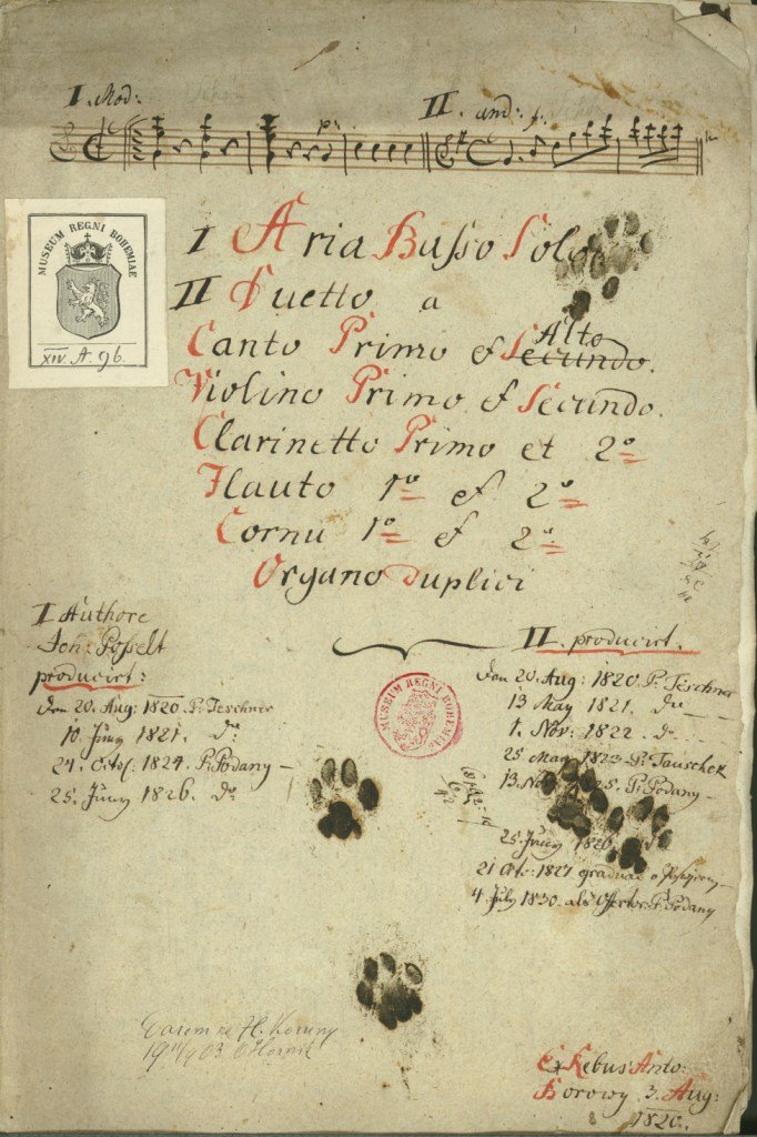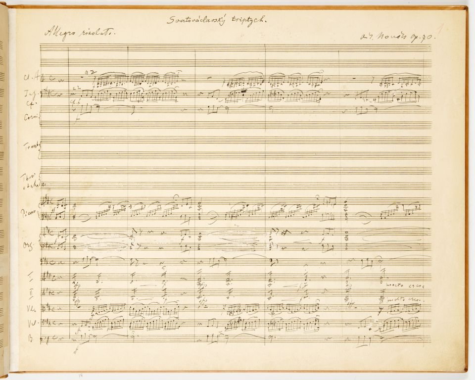 Depozitář notového archivu. Depozitář notového archivu. Bohuslav Martinů - Špalíček, balet. Autograf, partitura 1931. Josef Suk, portrétní fotografie ateliéru Langhans Praha, 1906. Fotografie skladatele Karla Bendla. Konec 19. století. Zápisník motivů Leoše Janáčka. Jaromír Vejvoda - Polka Stříbrný náramek s motivy české státní hymny Vítězslav Novák - Svatováclavský triptych op. 70 (1941), autograf partitury, orchestrální zpracování původního znění pro varhany. Josef Suk - Zrání, symfonická báseň, op. 34, partitura autografu, 1912-1917. Titulní list k tisku Sukovy symfonie Asrael op. 27, vydalo nakladelství Breitkopf und Härtel v Lipsku v roce 1907. Valčíková píseň ze filmu Noční motýl (text K.M. Wallo, hudba Roman Blahník), tisk, Praha, nakladatel R.A..Dvorský, 30. léta 20. století. Provozovací hlasy k duchovním skladbám od Johanna Posselta z kostela ze Zlaté Koruny, se záznamy o provozování v letech 1820-1830, rukopis Antnonín Borový, 1820. Vydání české národní a státní hymny Kde domov můj (hudba František Škroup, text Josef Kajetán Tyl) s poznámkami upozorňujícími na vžité chyby při interpretaci, tisk, Praha 1918. Obal k tzv. Tisk balady Lenore op. 12 pro zpěv s doprovodem pianoforte od Václava Jana Tomáška, vydáno vlastním nákladem, kolem 1805. Ludwig van Beethoven - Variations pour la Mandoline et clavecin. Autograf. Tuto skladbu napsal Beethoven pro komtesu Josefinu Clary při své návštěvě Prahy v roce 1796. Provozovací materiál k Sinfonii in G od Jana Křtitelel Vaňhala z notového archivu hrabětě Christiana Clam Gallase, rukopis, 80. léta 18. století. Sólový part fagotu z koncertu pro fagot, dvoje housle, dva klarinety, dva lesní rohy, vilolu a violoncello od Ignaze Pleyela. Provozovací hlasy, rukopis, konec 18. století. Part violoncella z koncertu C dur pro violoncello a smyčcový orchestr od Josefa Haydna, Hob. XVIII:11:II, rukopis, konec 18. století. Velmi vzácný exemplář. Leoš Janáček - Říkadla pro zpěv, klarinet a klavír, autograf partitury, 20. léta 20. století. František Škroup - Píseň Kde domov můj z frašky Fidlovačka, autograf, 1834. František Xaver Brixi - Offertorium in C, rukopis 1751, provozovací maeriál - hlas Canto. Jakub Jan Ryba - Chválozpěv při vánoční slavnosti Krista Pána, autograf z roku 1788, provozovací hlasy. Písničky Jaroslava Ježka z filmu Svět patří nám z roku 1937 od Jan Wericha a Jiřího Voskovce .- foxtrot,Stonožka a pochod Svět patří nám. Ve svém nakladatelství vydal R.A. Dvorský, [1937-1938]. Věnec ze zpěvů vlastenských - sbírka písní na české texty s doprovodem klavíru, redigoval František Škroup, ze sbírky Ondřeje Horníka. Tisk, Praha 1835. Kutnohorský sborník, rukopis, konec 16. století. Libreto  k prvnímu vídeňskému provedení Mozartovy opery Don Giovanni v roce 1788. Tisk Vídeň 1788. Karel Otáhal, kresba Paula Hindemitha při koncertu Pražského jara, s autografním notovým incipitem a autogramem, 1961. Fotografie skladatele Vítězslava Nováka s dedikací nkadateli F.A. Urbánkovi roku 1942. Fotografický ateliér Skuteč [?] 1942. Svatá Cecílie hraje na harfu, kolorovaná mědirytina W. Bonda podle kresby  J. Russella, Londýn, 1795. Hieronymus Francken II (dílna), Společnost při tanci, olej na dřevěné desce, Antwerpy, 1608-1610 Portrét skladatele, klavíristy a pedagoga Václava Jana Tomáška, kresba tužkou (Barbara Kraft), 1803. Stavovské divadlo, kolorovaný lept Leopolda Peuckerta, kolem roku 1793. Domnělý portrét skladatele a kantora Jakuba Jana Ryby. Fotografie podle kresby, konec 19. století. Fotografie písničkáře a skladatele Karla Hašlera s dedikací a s notovým incipitem písničky,Praha 8.6.1917 ateliér František Drtikol. Portrét Wolfganga Amadea Mozarta, kolorovaná rytina J. J. Neidla podle Leonarda Posche, kolemr roku 1800. Josef Bohuslav Foerster v pracovně ve své vile v Praze - Strašnicích. Fotografie Kadeřábek Praha, konec 40. let 20. století. Hugo Boettinger, studie Karla Hoffmanna pro portrét Českého kvarteta, kresba, křída, 1907. České kvarteto v prvním složení (K. Hoffmann, J. Suk, O. Berger, O. Nedbal), fotografie Jan Mulač, Praha, 1892-1893. Musicae Bohemicae anthologia - rozsáhlý soubor gramofonových desek, který zachycuje dějiny české hudby od středověkých hudebních památek do 19. století. Vydaly Gramofonové závody v roce 1948. Typická podoba úpravy obalu a viněty gramofonové desky od britské firmy His Master´s Voice, která byla založena v roce 1908 a patřila mezi nejvýznamnější vydavatele zvukových nosičů. Fonografické válečky - nejstarší nosiče zaznamenívající zvuk. Fonograf - zařízení, na kterém bylo možno zvuk nahrát i reprodukovat si nechal v roce 1877 patentovat Th. A. Edison. Pohlednice Rudolfa Frimla z New Yorku Augustinu Bergerovi, 1904. Dopis Leopolda Koželuha z 28.3.1782 neurčenému adresátovi. Dopis Hectora Berlioze z Výmaru ze dne 14.2.1856  adresovaný českému pěvci Josephu Tichatskovi. Attestbuch - reference o koncertu citeristy Niedermayera v roce 1853 v Hannoveru. Johannes Cochlaeus - Tetrachordum musice, tisk Norimberk 1520, hudebněteoretický spis ze 16. století z knihovny Ondřeje Horníka. Typická katalogizační karta z 60.let 20. století k notovému rukopisu z 2. poloviny 18. století. Ervín Schulhoff - Písně a tance z Těšínska, tisk Panton, Praha1960. Titulní list k tisku Sukovy hudby k Zeyerově pohádce Radúz a Mahulena (op. 14), v úpravě pro housle a klavír na 4 ruce vydal v Praze Mojmír Urbánek. Jaroslav Ježek, portrétní fotografie, reprodukce Esta Praha, 30. léta 20. století Korespondenční lístek od rakouského skladatele Antona Weberna, představitele 2. vídeňské školy, adresovaný skladateli Aloisi Hábovi, propagátorovi čtvrttónové hudby, [1935?]. Nejstarší dochovaná c