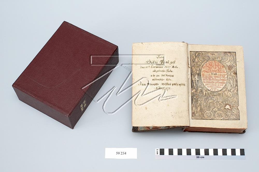PředmětyPodsbírka oddělení dějin literatury obsahuje písemnosti a tisky, fotografie, videozáznamy, zvuková média a předměty z oboru výtvarného umění vztahující se k literatuře.Paleotypy : Bible česká, Norimberk 1540 Postyla, Prostějov 1546Nejstarší Kralická bible z r. 1579, rozsáhlý fond obsahující tiskařský materiál z kralické tiskárny (převážně litery).