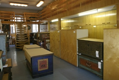 | Předměty | Je rozdělena do osmi základních fondů. Fond textilu obsahuje doklady lidového oděvu, převážně ze Slezska a severní Moravy, např. kroje, krojové součástky a oděvní doplňky. Fond lidového umění zahrnuje kolekce obrázků na skle, maleb, plastik, betlémů, betlémových prvků a ostatní předměty dekorativní povahy. Ve fondu pracovního nářadí a výrobků je zastoupeno pracovní nářadí různých odvětví výroby zemědělské, domácí a řemeslné. Fond lidového nábytku zahrnuje doklady (truhly, skříně, stoly, lavice, aj.), které se po stránce výrobní hlásí převážně do kategorie řemeslných truhlářských výrobků. Fond keramika obsahuje nádoby z hrnčiny, kameniny, fajánse, z hlediska sortimentu nádoby k přípravě pokrmů, na přechovávání zásob, nádoby jídelní a jiné keramické výrobky. Ve fondu varia jsou zařazeny modely, doklady o životě dětí, hračky, míry a váhy, svítidla, hodiny a výrobky ze současnosti inspirované tradicí. Fond grafiky obsahuje veškerý dvojrozměrný materiál, jako jsou sbírkové fotografie, tisky, rytiny a další grafické techniky, originální kresby, rukopisné knihy a listy, modlitební knihy, kramářské písně. Fond badatelský archív soustřeďuje doklady vědeckovýzkumných a sbírkotvorných aktivit osobností působících v regionu, např. K. Černohorského, V. Večerkové, J. Králové aj.