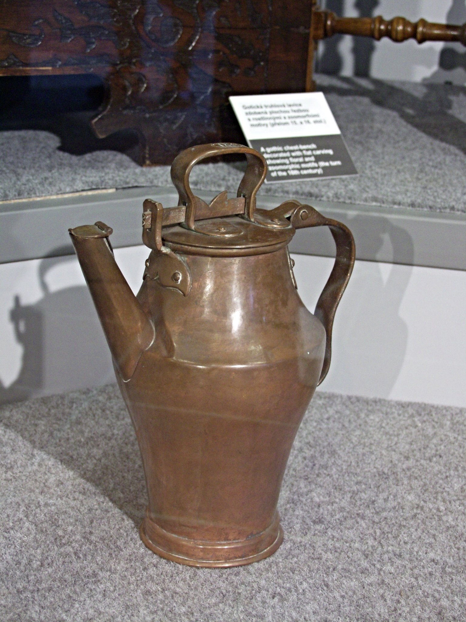 židle - ze světlého dřeva, tzv. Windsor Chair, Anglie, pozdní 18. stol. osvětlovací těleso Světlonoš - polychromované dřevo s náboženskými výjevy, 2. pol. 18. stol. trůn - z tmavého dřeva, bohatě vyřezávaný, 2. pol. 15. stol. kabinet - z tmavého dřeva, vykládaný slonovinou se dvěma kovanými držadly, renesance, 16. - 17. stol. kredenc - z tmavého dřeva, dvoudveřový, renesance, kolem 1600 příborník - ze světlého dřeva, dvoudveřový, patrně 17. stol. truhla - reliéfně řezaná ze světlého dřeva, renesance, 16. stol. skříňka - jednodveřová, na čtyřnohém podstavci, z tmavého dřeva, renesance, 16. stol. obraz - Antonín Slavíček (1870-1910): Zákoutí v sadě, olej na plátně, sig. A. Slavíček, 90. léta 19. stol. obraz - Rosa di Tivoli (1655-1706, též Philipp Peter Roos): Pastýřská scéna, olej na plátně, nesignováno, 17. stol. obraz - Václav Rabas (1885-1954): Chleba, olej na plátně, sig. Rabas obraz - Václav Hollar (1607-1677): Praga, rytina, 17. stol. obraz - Jakub Obrovský (1882-1949): Rodina, olej na plátně, sig. J. Obrovský, 20. - 30. léta 20. stol. plastika - odlitek hlavy gotické Madony z Lomničky plastika - ženský sochařský potrét s porušeným věnováním: …u Benešovi k 40. narozeninám věnuje úřednictvo vyslane… lampa stolní - s papírovým širmem, elektrická, 1. pol. 20. stol. svícen - mosazný, osmiramenný, 2. pol. 17. stol. talíř - kameninový glazovaný, s tištěným obrázkem romantické zříceniny, vyrobeno ve Staré Roli za A. Novotného 1823-1884 džbán - majolikový s uchem, zdobený krajinným motivem se stromy a architekturou, italská majolika, patrně 16. stol. nástřešní cihla - tzv. hřebenáč s keramickou soškou jezdce na koni, barevně glazovaná, období dynastie Ming, 14. - 17. stol. souprava - konvice a dóza, porcelánová, zdobená rostlinným dekorem, Míšeň, kolem 1750 konvice - s jedním uchem, z měděného plechu, Čechy, 18. stol. symbolický klíč od městských bran - mosazný, na měděném štítku je nápis Cleveland 1796, 1. pol. 20. stol. čutora - fajánsová, zdobená rostlinným motivem, patrně 19. stol. uložení podsbírky ve vile manželů Benešových uložení podsbírky ve vile manželů Benešových uložení podsbírky v Památníku dr. Edvarda Beneše, prezidenta republiky křestní mísa - mosazná, zdobená motivem Adama a Evy, patrně 16. stol. ÚzemíČechy, jižní, Táborsko, Soběslavsko Obdobíod 16. století PředmětySbírka obsahuje kosti a kostěné artefakty z archeologických výzkumů. Obor24 - Další Datum zápisu do CES20.08.2002 Počet předmětů1121