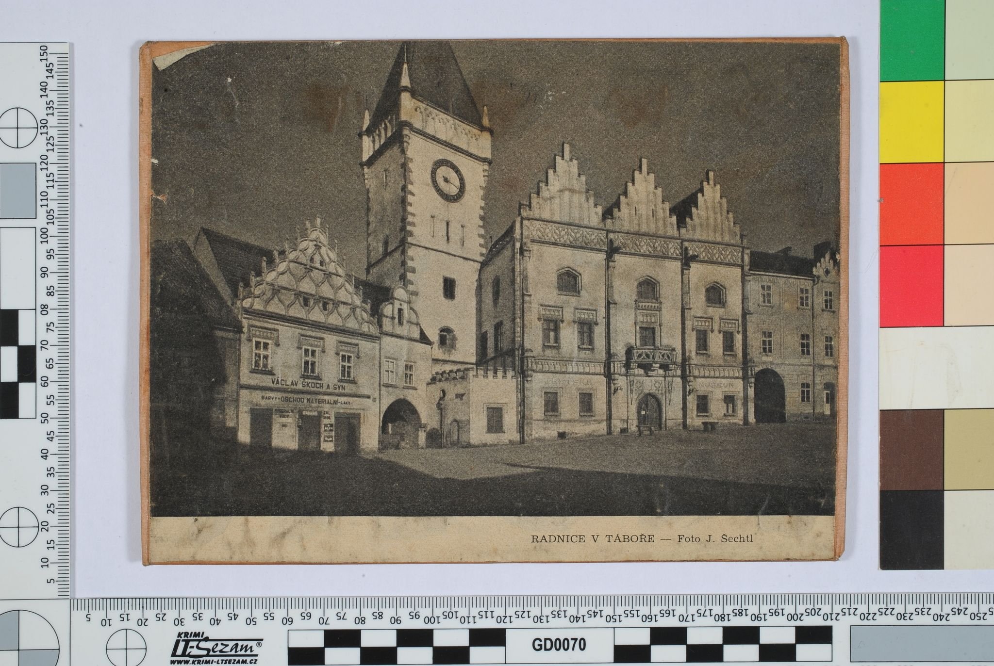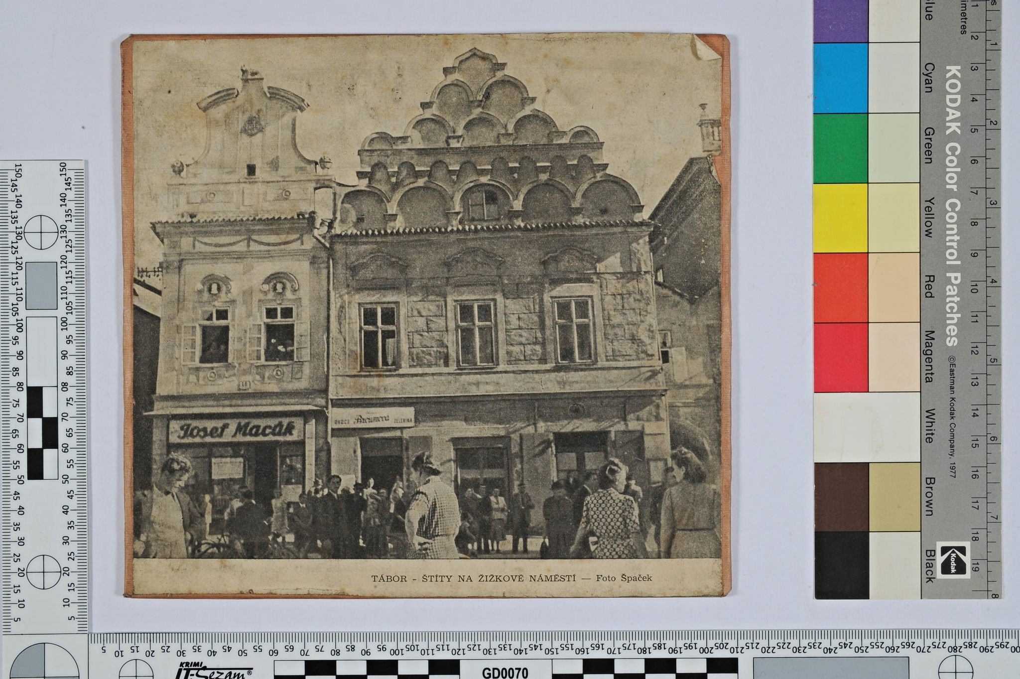 zinkový štoček - Kostelec na Jistebnicku: kamenný oltář (foto Šechtl) zinkový štoček - Tábor: pohled na rohový dům v Hradební ulici od Parkán zinkový štoček - čtyři řádky notového a textového záznamu chorálu zinkový štoček - Tábor: pohled na Starou radnici a Škochův dům na Žižkově náměstí zinkový štoček - Tábor: pohled na štíty domů v jižní části Žižkova náměstí zinkový štoček - poprsí spisovatele Jaroslava Marii (vlastním jménem JUDr. Jaroslav Mayer) zinkový štoček - Lužnické údolí u Tábora: pohled na Lužnici, na protějším břehu se nachází dřevěné chatky ocelová raznice - dvoudílná raznice pro slepotisk s monogramem a rozvilinami ocelová raznice - dvoudílná raznice pro slepotisk s monogramem a rozvilinami zinkový štoček na překližce - Tábor: plán města z roku 1935 s pojmenováním ulic uložení podsbírky v depozitáři uložení podsbírky v depozitáři zinkový štoček - Bechyně: pohled z Lužnického údolí na zámek (foto Špaček) zinkový štoček - Milevsko: pohled na kostel sv. Jiří s románskou věží zinkový štoček - Tábor: pohled na Staré město od hráze Jordánu zinkový štoček - reprodukce kresby ak. mal. Moravce (otištěn v publikaci dr. Kroupy) zinkový štoček - Tábor: pohled z hráze Jordánu směrem ke sladovně zinkový štoček - Tábor: půdorysný plánek zaniklých domů v okolí augustiniánského kláštera na dnešním náměstí Mikuláše z Husi zinkový štoček - Tábor: půdorysný plánek Špitálského náměstí zinkový štoček - Tábor: pohled na Starou radnici, Škochův dům a Žižkův pomník na Žižkově náměstí zinkový štoček - obraz Richarda Laudy Matka (motiv z Jistebnicka) zinkový štoček - Padařov: pomník zakladatele zemědělského hnutí Alfonse Šťastného od J. V. Duška zinkový štoček - Tábor: pohled na pomník Mistra Jana Husa na Husově náměstí zinkový štoček - Lužnické údolí u Tábora: balvany vyčnívající z řeky zinkový štoček - obálka publikace s textem zinkový štoček ve tvaru štítu - s nápisem zinkový štoček - svazek květin s trikolorou (z publikace Čítanka budování socialistického Táborska) zinkový štoček - svazek květin s trikolorou (z publikace Čítanka budování socialistického Táborska) uložení podsbírky v depozitáři