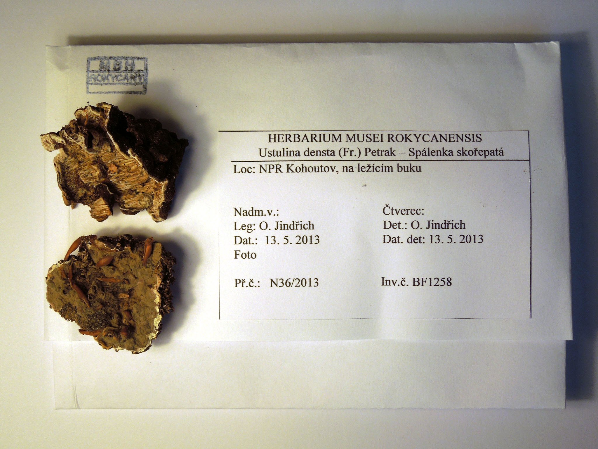 BF121   N1/2003  Boletus edulis Fr., Rokycansko, PP Kařezské rybníky, 450 m n.m., 27. 7. 2002, leg et det. Jindřich, dia NN761. BF26   N20/1995  Clavulina cristata (Holskj. ex Fr.) Schroeter, Svojkovice, ve smrčině na J úpatí, X. 1995, leg. et det. Šandová, rev. Kotlaba 1995. BF32  N20/1995  Kuehneromyces mutabilis (Schff. : Fr.)Sing. et Smith, Svojkovice, na V svahu M. Vydřiduchu, X. 1995, leg. Šandová, det. Kotlaba. BF376  N64/2004 Lactarius campestris (Bull.) Fr., Brdy, pod duby u Valdeka, 13. 6. 2004, leg. et det. Jindřich, dia NN1765.  Evidenční karta k exikátu hub BF39 BF39  N22/1995 Cortinarius armillatus Fr., Rokycany, u cesty na úbočí Žďáru, 22. 9. 1994, leg. et det. Šandová, rev. Kotlaba 1995. BF74  N34/2001  Melampsora tremulae Tal, Mirošov, VII. 1906, leg. et det. Horák. BF86  N78/2001 Lactarius helvus Fries., Rokycany-kotel, fotokolor Bárta (ručně kolorované foto 18 x 24cm, zasklené), st. č. Fo5/4. BF89  N81/2001 Lepiota rhacodes Vit., Cháchov, fotokolor Bárta (ručně kolorované foto 18 x 24cm, zasklené), st. č. Fo5/28. BF77  N37/2001 Eriophyes brevirostris, Klabava - an Erle, sine dat, leg. et det. Horák. BF94  N86/2001 Amanita phalloides Fries., Rokycany, Klabavská stráň, fotokolor Bárta (ručně kolorované foto 18 x 24cm, zasklené), st. č. Fo5/17 BF101    N93/2001 Rozites caperata (Pers. ex Fr.),   fotokolor Bárta (ručně kolorované foto 18 x 24cm, zasklené), st. č. Fo5/19 N21/2012 BF1218 Boletus radicans, Hořovice, zámecký park, leg. M. Šochová 24.9. 201, det. O. Jindřich 24.9. 2012 N36/2013 BF1261 Gloeoporus pannocinctus=Cerioporiopsis pannocincta, NPR Kohoutov, na  hodně zeltelém buku, velké bílé plochy, leg. O. Jindřich 13. 5. 2013, det. J. Kout 13. 5. 2013. N36/2013 BF1258 Ustulina densta, NPR Kohoutov, na ležícím buku, leg et det O. Jindřich, 13. 5. 2013. N36/2013 BF1293 Lepista nuda, Osek u Hořovic, Vystrkov, na zemi v trávě v zahradě u čp. 136, leg et det  O. Jindřich, 20. 10. 2012. N36/2013 BF1254 Lactarius subdulcis, Hořovice (okres Beroun), zámecký park, na zemi pod bukem, leg et det O. Jindřich 10. 6. 2013 N38/2013 BF1376 Gyromitra esculenta, Rokycansko, vrch Kotel JZ od Rokycan, leg J.R. Seidl 2. 10. 2010, det  M. Šandová,  3. 10. 2010. N36/2013 BF1296 Pholiota flammans, Tlustice u Hořovic, les Štylec, na pařezu borovice, leg et det O. Jindřich, 12. 10. 2012. N36/2013 BF1374 Lactarius camphoratus, Osek, okr. Beroun, Dlouhá leč, na zemi pod duby, les mezi obcemi Osek, Újezd  (okr. Beroun) a Kařízek (okr. Rokycany), leg et det O. Jindřich, 16. 9. 2013. N36/2013 BF1237 Phellinus contiguus, Praha - Velká Chuchle, Chuchelský háj, na zemi ležící větev dubu, leg et det O. Jindřich 29. 6. 2013. N36/2013 BF1283 Pseudohydnum gelatinosum, Hořovice, lesopark Dražovka, část lesa mezi Velkým rybníkem a sídlištěm Karla Sazimy, na pařezu jehličnanu, leg et det O. Jindřich 17. 11. 2012. 032 resize Uložení krabic se sbírkami v regálech v depozitáři N21/2012 BF1226 Russula risigalina var. acetolens, Borovany, klášterní park u J zdi parku, leg. O. Jindřich 18.9. 2012, det. O. Jindřich 18. 9. 2012, foto NN4419/1-2. N21/2012 BF1234 Lactarius subdulcis, CHKO Křivoklátsko, NPR Kohoutov, na zemi v bučině, leg. O. Jindřich 23.9.2012, det. O. Jindřich 23.9. 2012. N21/2012 BF1148 Boletus  appendiculatus, Zahořany, na lesní cestě pod vrchem Lísek (okr.Beroun), leg et det  I. Stehlíková  24.7. 2012, foto NN4349. 027 resize Uložení položek hub v krabicích 029 resize Uložení krabic s položkami hub v regálech N21/2012 BF1170  Galerina marginata, Poříčko – osada u Sázavy, 2 km po proudu od Českého Šternberku, na částečně zetlelém kmeni smrku, leg et det O. Jindřich, 17.11. 2011, foto: NN4366.