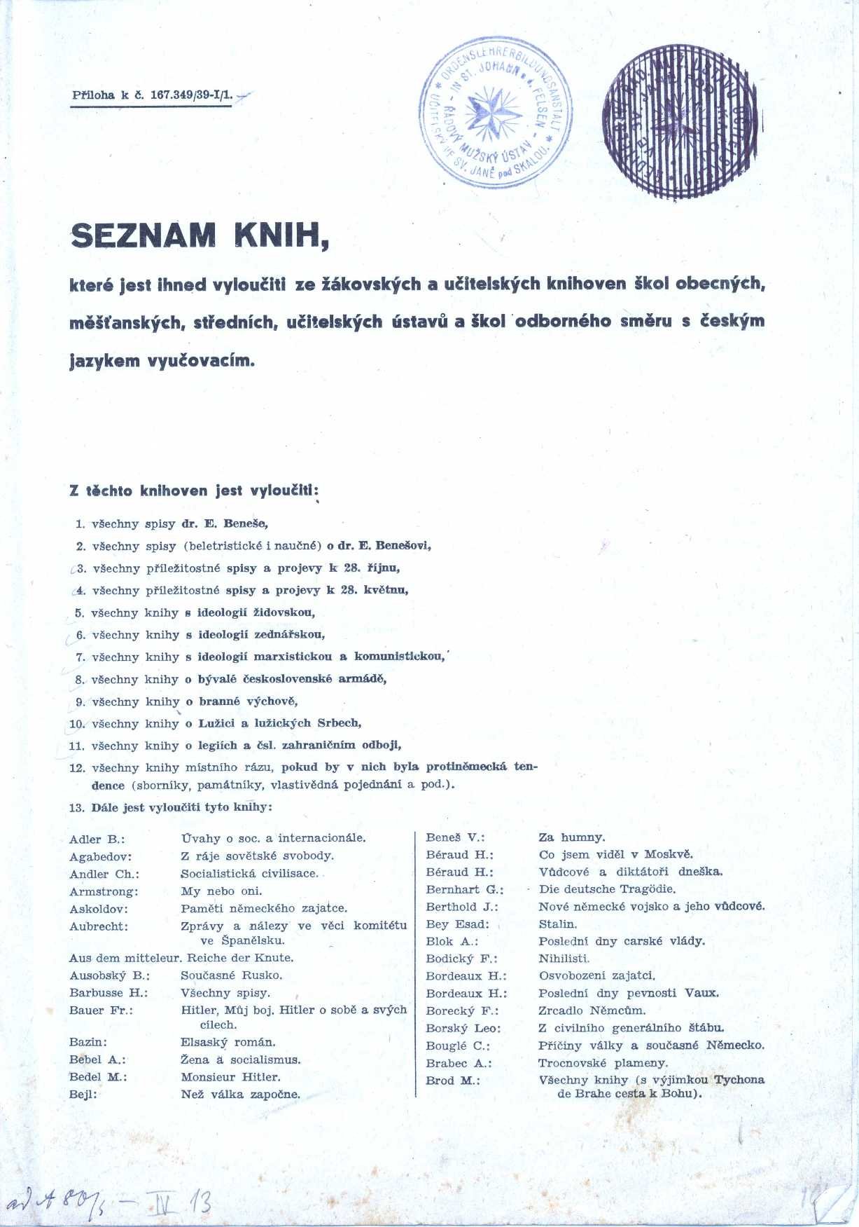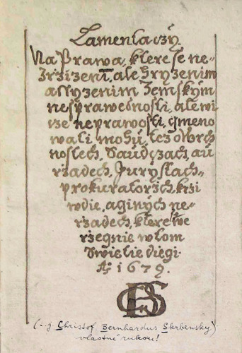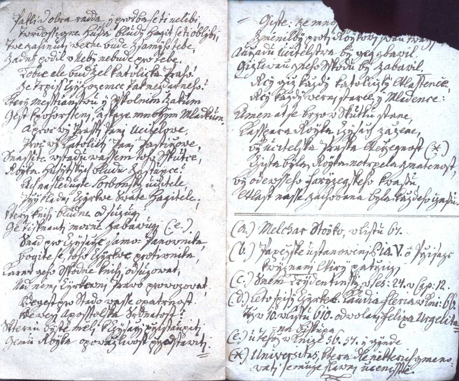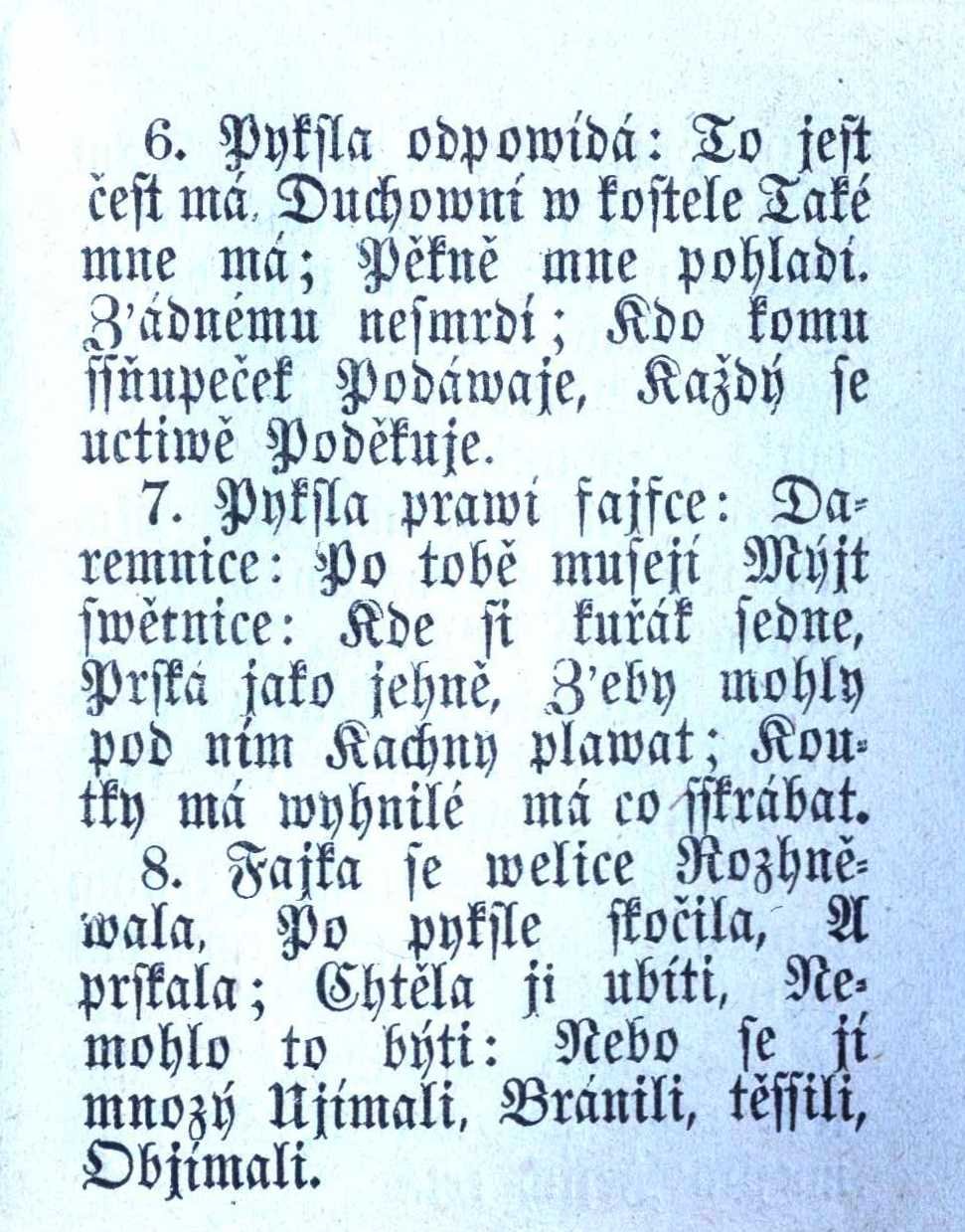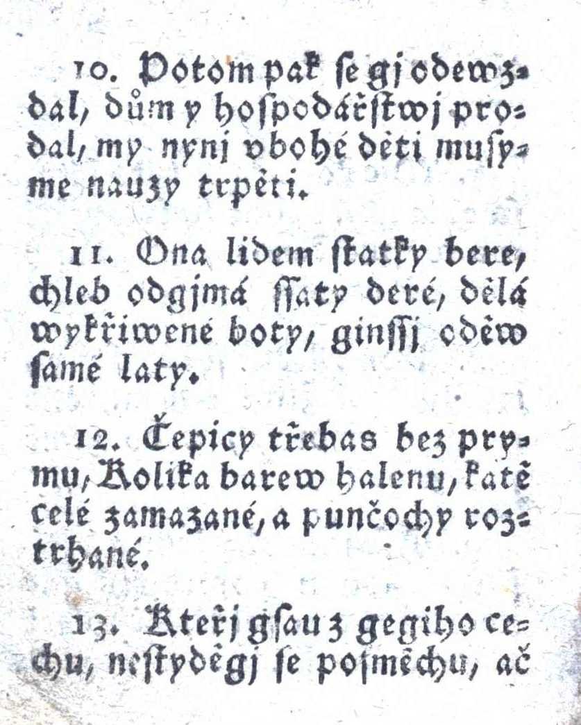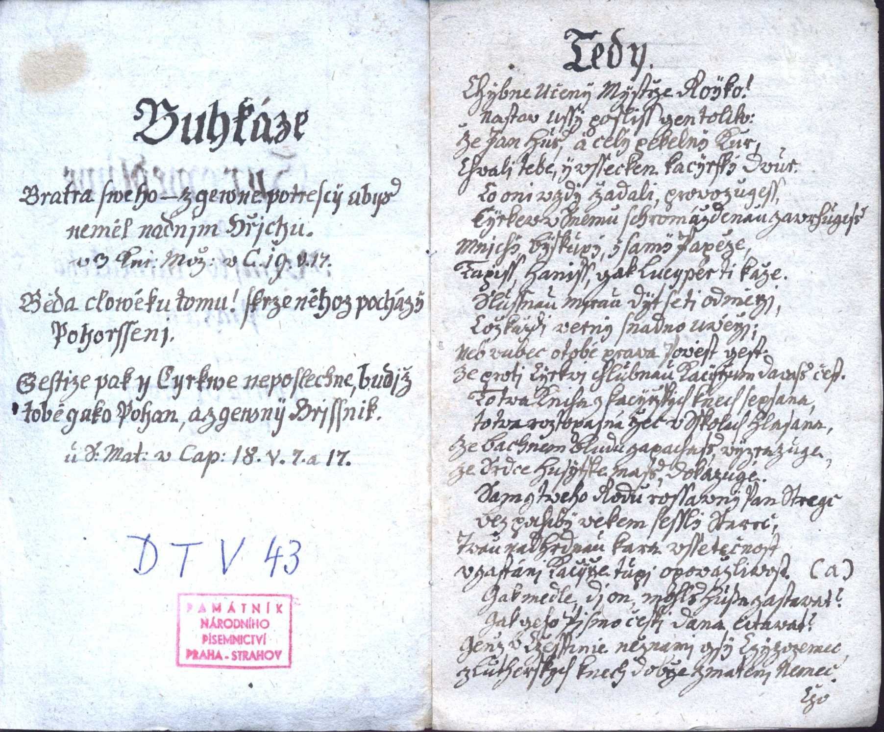 Evidenční záznam kramářského tisku Depozitář podsbírky písemností a tisků  Mejstřík, Martin : Štít Marie Panny aneb Katolické modlitby, 1791, pag. I. Sign. RKP I 108 Jöcher, Christian Gottlieb : Compendiöses Gelehrten-Lexicon... . - [Lipsko] : Johann Friedrich Gleditsch - syn [i.e. Johann Gottlieb Gleditsch], 1726. - Titulní strana. - Sign. S C 28 Jöcher, Christian Gottlieb : Compendiöses Gelehrten-Lexicon... . - [Lipsko] : Johann Friedrich Gleditsch - syn [i.e. Johann Gottlieb Gleditsch], 1726. - Nesign. mědirytinový frontispis. - Sign. S C 2 Depozitář podsbírky písemností a tisků Kristián z Koldína, Pavel : Práva a zřízení zemská Království českého v krátkou summu uvedená. - Praha : Jiří Nigrín, 1583. Titulní list (l. [1]a). Srov. Knihopis, č. 4.574. Sign. S II c 3. Jöcher : Gelehrten-Lexicon ... 1. - Lipsko : Gleditsch - dědicové, 1750. - Mědirytinový frontispis Johanna Christiana Gottfrieda Fritzsche podle předlohy Eliase Gottlieba Hausmanna. - Sign. S C 29 Skrbenský z Hříště, Kryštof Bernard : Lamentací na práva..., 1679, fol. [2]r (resp. pag. III). Sign. RKP I 4 Erronei ac Heretici Dogmatis ... Articuli. - Praha : Mikuláš Konáč z Hodištkova, [1520-1528]. Titulní list (l. [1]a (sign A1a)). Srov. BCBT 16. stol., Ar, č. 2-6. Sign. S XII f 6. Píseň nová o užitku nepokojné kořalky vnově na světlo vydaná. - [S.l.] : [s.t.n.], [1850], l. [1]a. Sign. T 31-36 Píseň nová o užitku nepokojné kořalky vnově na světlo vydaná. - [S.l.] : [s.t.n.], [1850], l. [1]b. Sign. T 31-36 Píseň nová o užitku nepokojné kořalky vnově na světlo vydaná. - [S.l.] : [s.t.n.], [1850], l. [3]a. Sign. T 31-36 Nová píseň všem kuřákům a šňupákům obětovaná. - Uherská Skalice : Josef Škarnicl - dědicové, [s.a.], l. [1]a. Sign. T 302 Dopis Athanasia a Sancto Josepho [Eliáše Sandricha] Janu Markvartovi Kocovi z Dobrše obsahující genealogické údaje k rodu Koců, 1768, 10. června. Adresa (in rubro). Sign. RKP II 80 Nová píseň všem kuřákům a šňupákům obětovaná. - Uherská Skalice : Josef Škarnicl - dědicové, [s.a.], l. [3]a. Sign. T 302 Píseň nová o užitku nepokojné kořalky vnově na světlo vydaná. - [S.l.] : [s.t.n.], [1850], l. [2]b. Sign. T 31-36 Píseň nová o užitku nepokojné kořalky vnově na světlo vydaná. - [S.l.] : [s.t.n.], [1850], l. [3]b. Sign. T 31-36 Zahradníček, František: Nová píseň k výstraze všem pijákům kořalky. - Praha : Jan Spurný, 1859, l. [1]a. Sign. T 33-34 Zahradníček, František: Nová píseň k výstraze všem pijákům kořalky. - Praha : Jan Spurný, 1859, l. [1]b. Sign. T 33-34 Zahradníček, František: Nová píseň k výstraze všem pijákům kořalky. - Praha : Jan Spurný, 1859, l. [2]a. Sign. T 33-34 Zahradníček, František: Nová píseň k výstraze všem pijákům kořalky. - Praha : Jan Spurný, 1859, l. [2]b. Sign. T 33-34 Píseň nová o užitku nepokojné kořalky vnově na světlo vydaná. - [S.l.] : [s.t.n.], [1850], l. [2]a. Sign. T 31-36 Píseň nová o užitku nepokojné kořalky vnově na světlo vydaná. - [S.l.] : [s.t.n.], [1850], l. [4]a (l. [4]b vacat). Sign. T 31-36 Nová píseň všem kuřákům a šňupákům obětovaná. - Uherská Skalice : Josef Škarnicl - dědicové, [s.a.], l. [1]b. Sign. T 302 Nová píseň všem kuřákům a šňupákům obětovaná. - Uherská Skalice : Josef Škarnicl - dědicové, [s.a.], l. [2]a. Sign. T 302 Nová píseň všem kuřákům a šňupákům obětovaná. - Uherská Skalice : Josef Škarnicl - dědicové, [s.a.], l. [2]b. Sign. T 302 Nová píseň všem kuřákům a šňupákům obětovaná. - Uherská Skalice : Josef Škarnicl - dědicové, [s.a.], l. [3]b. Sign. T 302 Nová píseň všem kuřákům a šňupákům obětovaná. - Uherská Skalice : Josef Škarnicl - dědicové, [s.a.], l. [4]a. Sign. T 302 Nová píseň všem kuřákům a šňupákům obětovaná. - Uherská Skalice : Josef Škarnicl - dědicové, [s.a.], l. [4]b. Sign. T 302 Spravedlivé od římsko-katolického Pražana učiněné Mistra Kašpara Royko stíhání, 1785, fol. [1]v-[2]r. - Rýmovaný pamflet proti osvícenskému církevnímu historiku Kašparu Roykovi. Sign. RKP I 364 Spravedlivé od římsko-katolického Pražana učiněné Mistra Kašpara Royko stíhání, 1785, fol. [1]r-[4]v. - Rýmovaný pamflet proti osvícenskému církevnímu historiku Kašparu Roykovi. Sign. RKP I 364 Spravedlivé od římsko-katolického Pražana učiněné Mistra Kašpara Royko stíhání, 1785, fol. [3]v-[4]r. - Rýmovaný pamflet proti osvícenskému církevnímu historiku Kašparu Roykovi. Sign. RKP I 364 Dopis Athanasia a Sancto Josepho [Eliáše Sandricha] Janu Markvartovi Kocovi z Dobrše obsahující genealogické údaje k rodu Koců, 1768, 10. června. Sign. RKP II 80 Dopis Athanasia a Sancto Josepho [Eliáše Sandricha] Janu Markvartovi Kocovi z Dobrše obsahující genealogické údaje k rodu Koců, 1768, 10. června. Sign. RKP II 80 Spravedlivé od římsko-katolického Pražana učiněné Mistra Kašpara Royko stíhání, 1785, fol. [2]v-[3]r. - Rýmovaný pamflet proti osvícenskému církevnímu historiku Kašparu Roykovi. Sign. RKP I 364 Jöcher, Christian Gottlieb : Allgemeines Gelehrten-Lexicon ... 1., A-C. - Lipsko : Johann Friedrich Gleditsch - dědicové, 1750. - Titulní strana. - Sign. S C 29/1 Katalog profesorské knihovny učitelského ústavu ve Sv. Janu pod Skalou. - Přiložený protektorátní seznam zakázaných knih, jež mají být z knihovny vyřazeny, 1940, l. [1]a. - Sign. RKP IV 13 Katalog profesorské knihovny učitelského ústavu ve Sv. Janu pod Skalou. - Přiložený protektorátní seznam zakázaných knih, jež mají být z knihovny vyřazeny, 1940, l. [1]b. - Sign. RKP IV 13 Katalog profesorské knihovny učitelského ústavu ve Sv. Janu pod Skalou. - Přiložený protektorátní seznam zakázaných knih, jež mají být z knihovny vyřazeny, 1940, l. [2]a. - Sign. 
